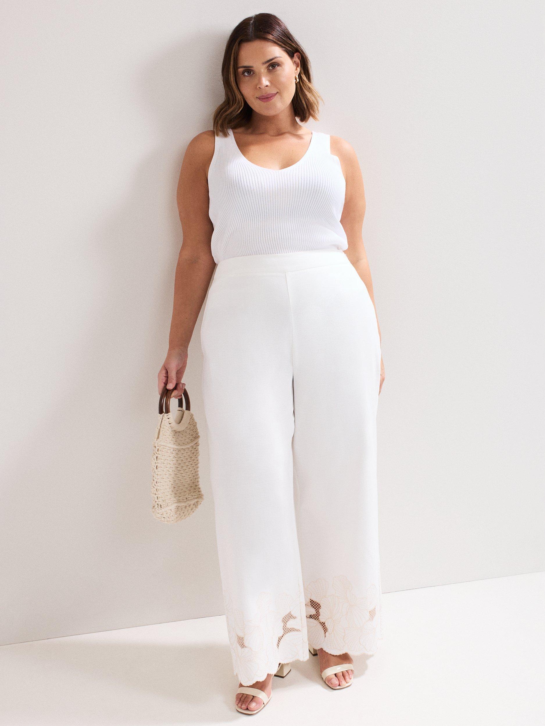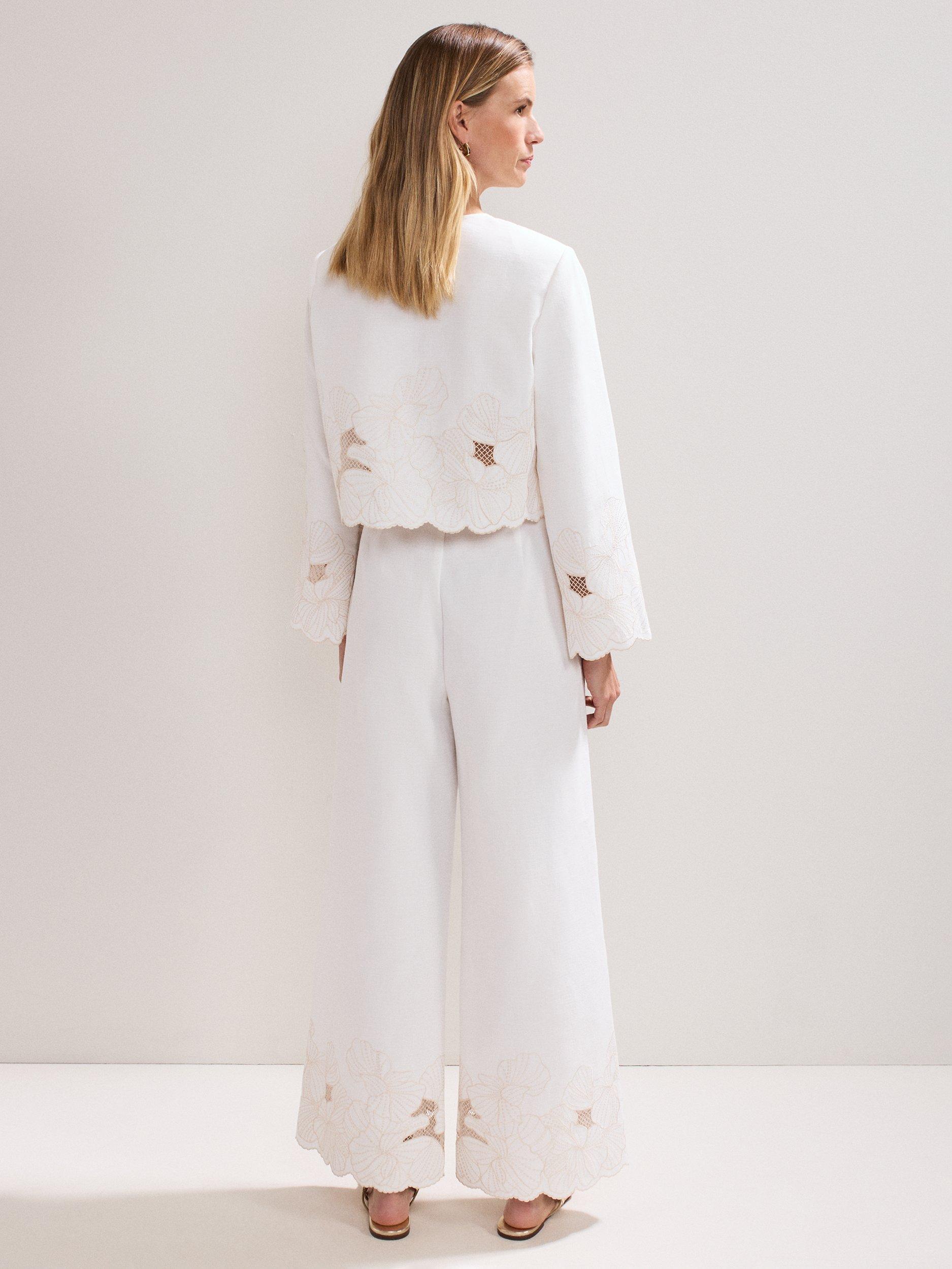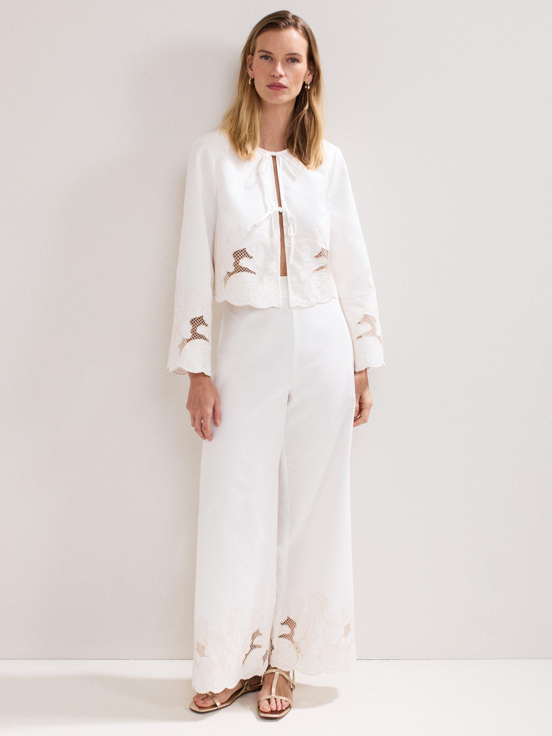 Crafted with 100% cotton for a lightweight feel, these trousers will become a staple in your wardrobe. Finished with intricate embroidered detailing at the hem for a contemporary edge, the wide leg silhouette makes for a stylish day or night look.