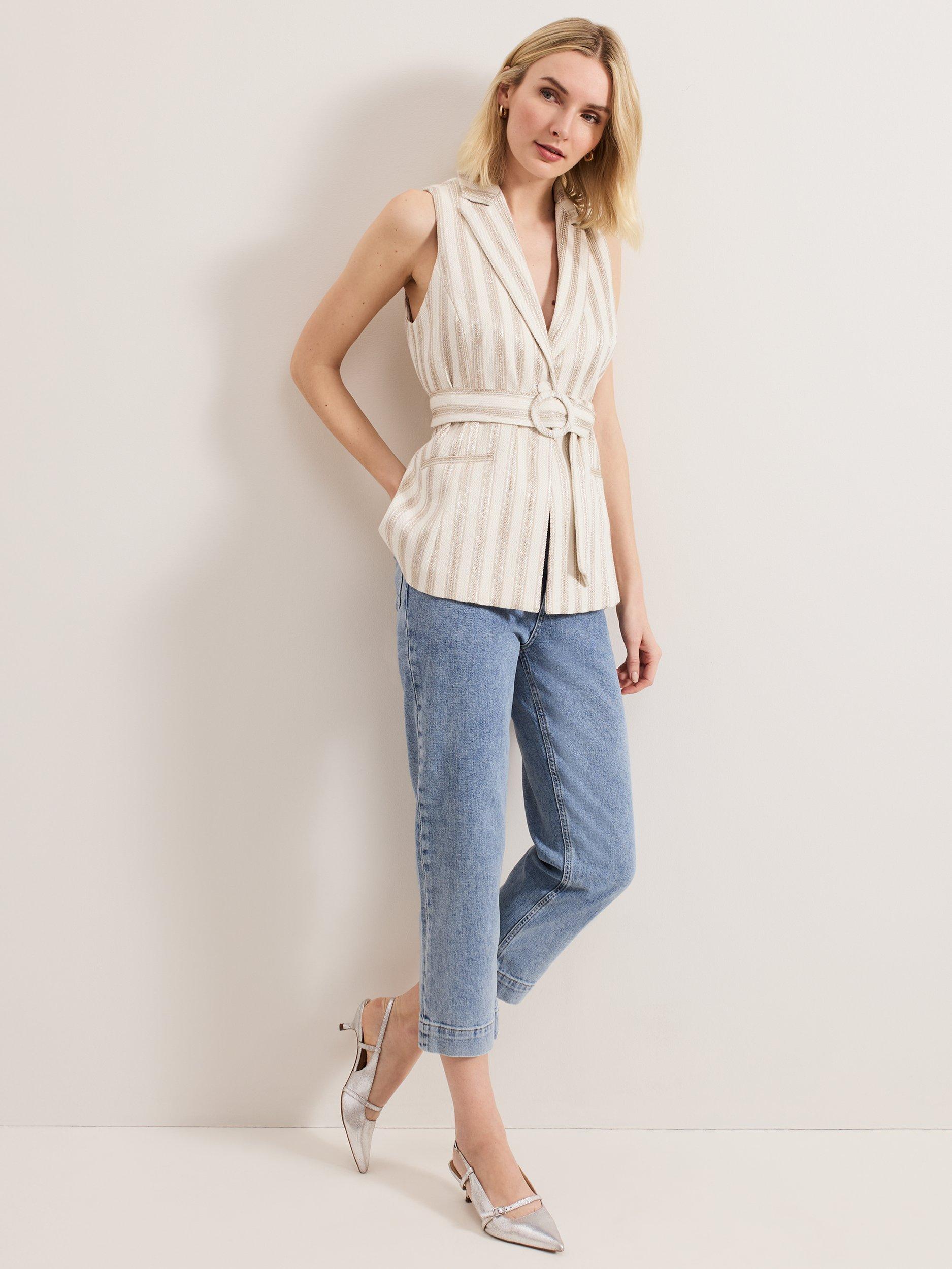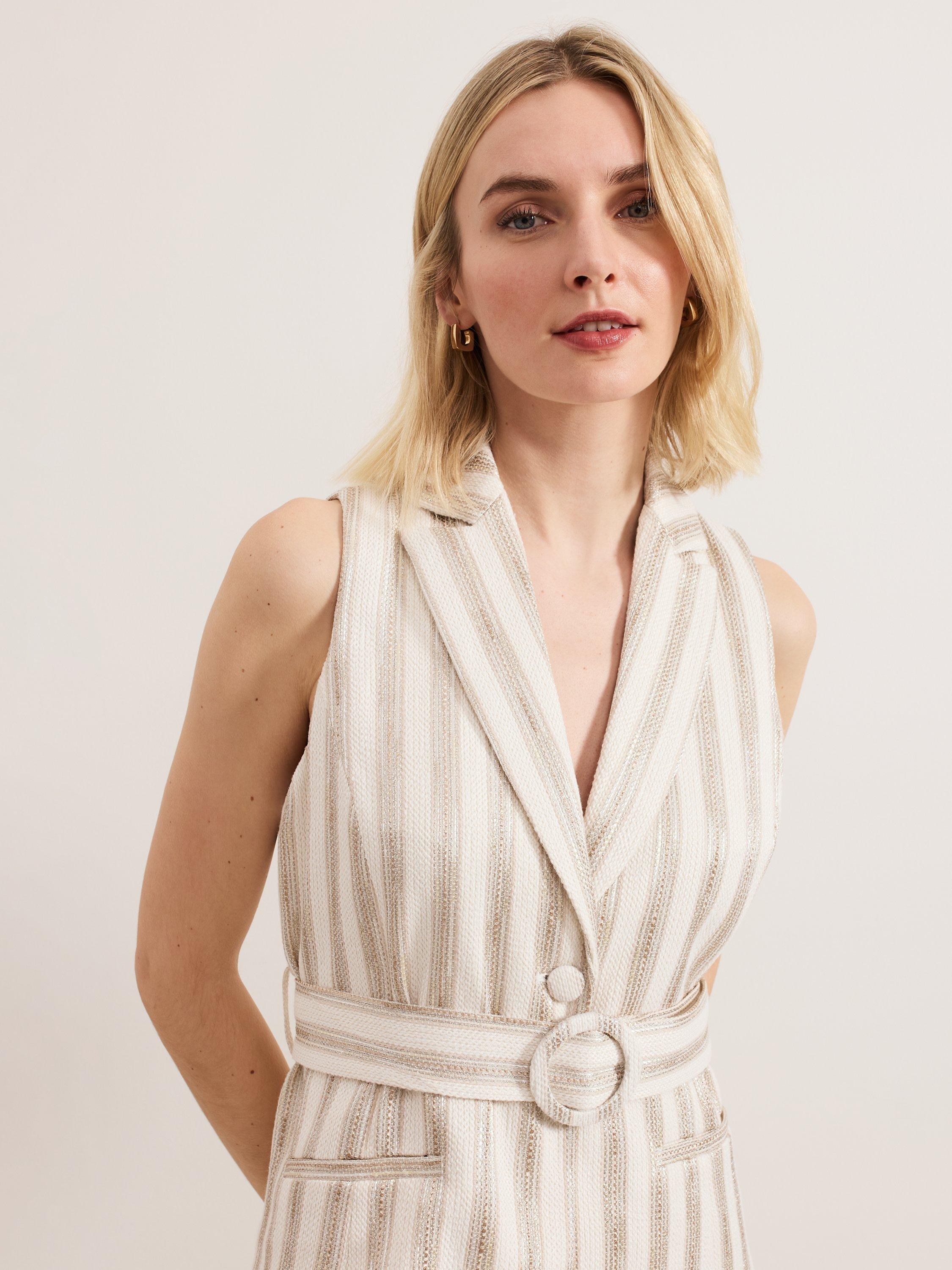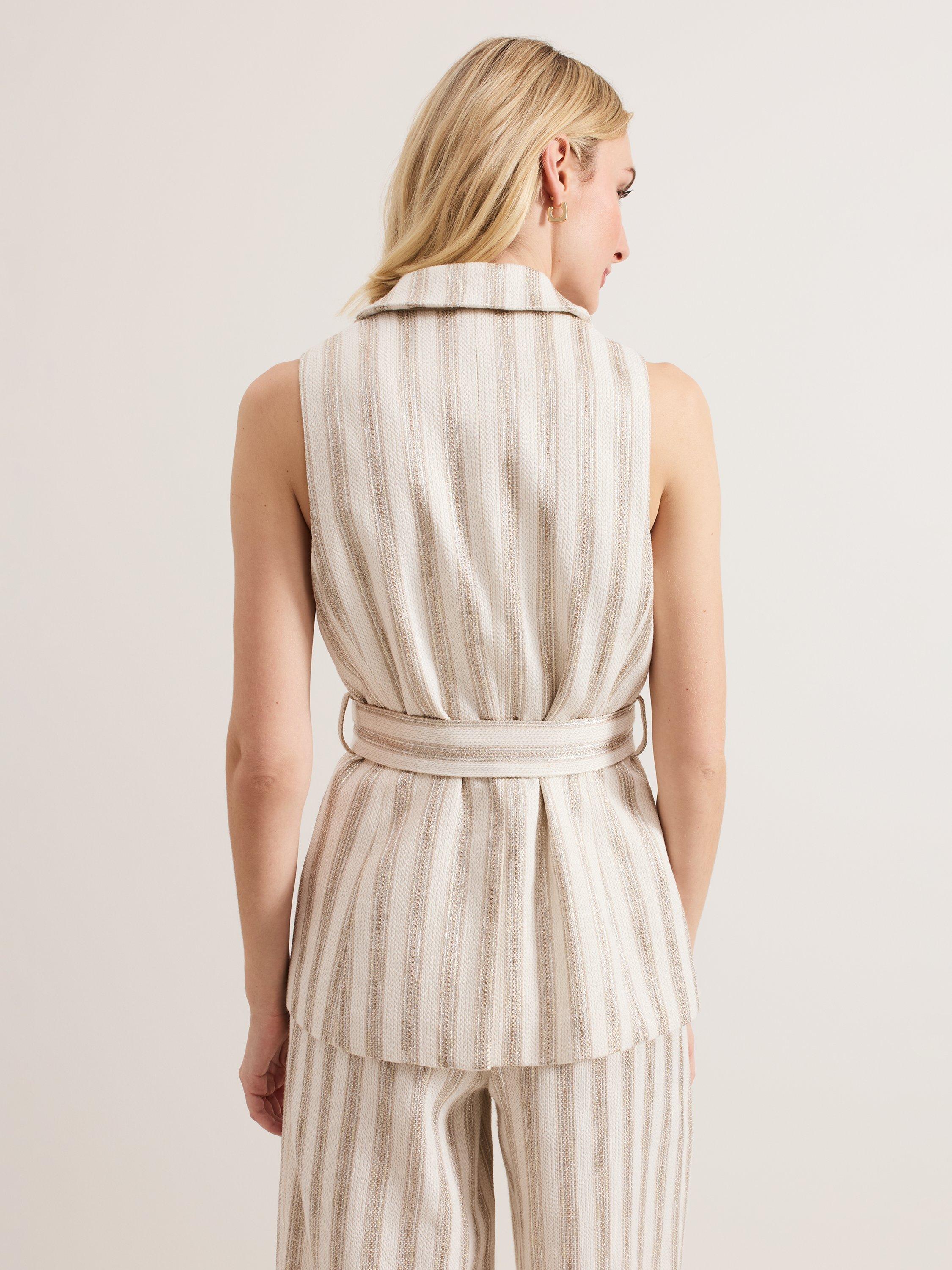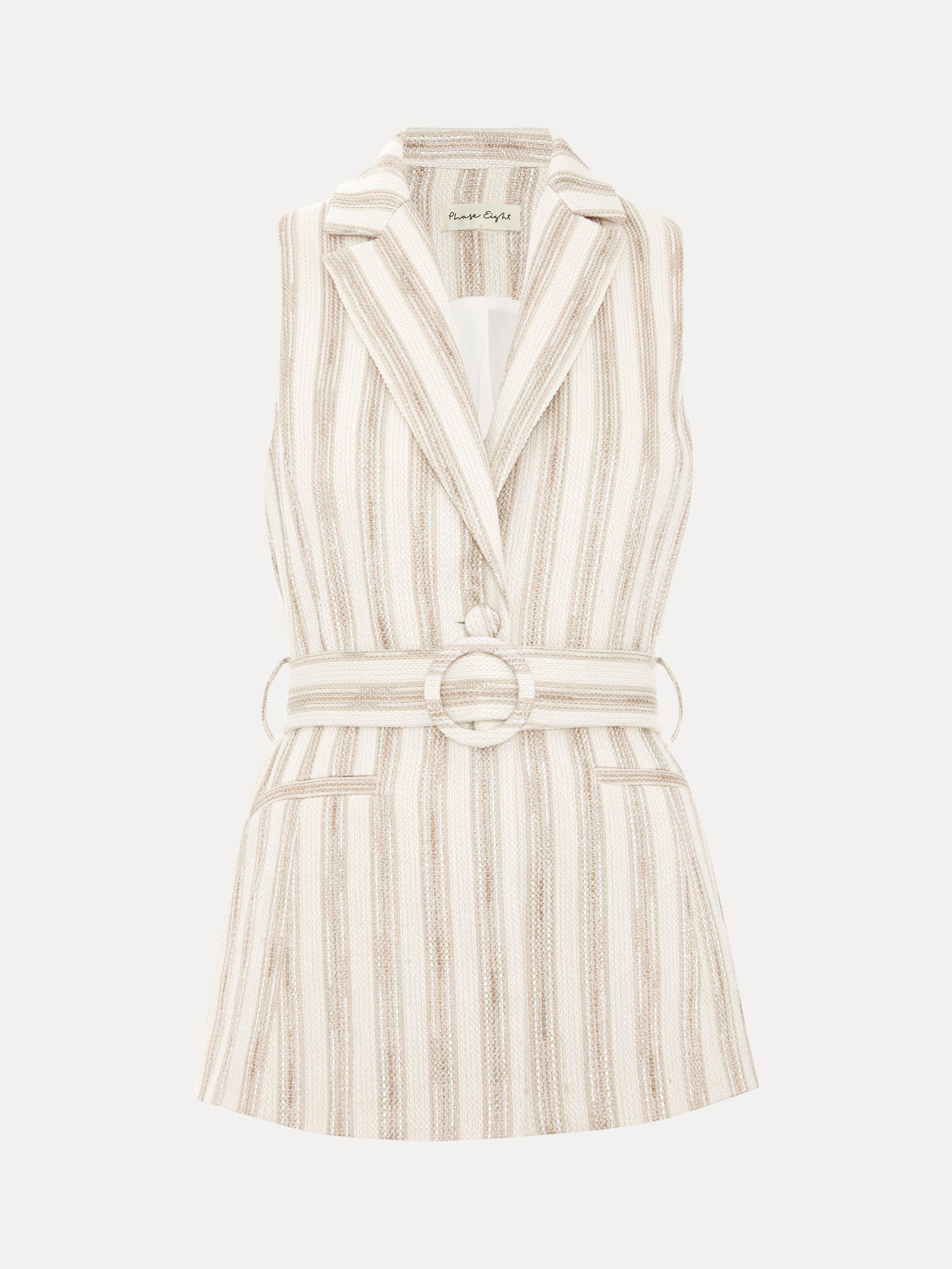 The Tabitha waistcoat is the perfect modern style for warmer days. Contrast thread detailing adds a touch of glamour whilst the matching belt adds structure to the silhouette.