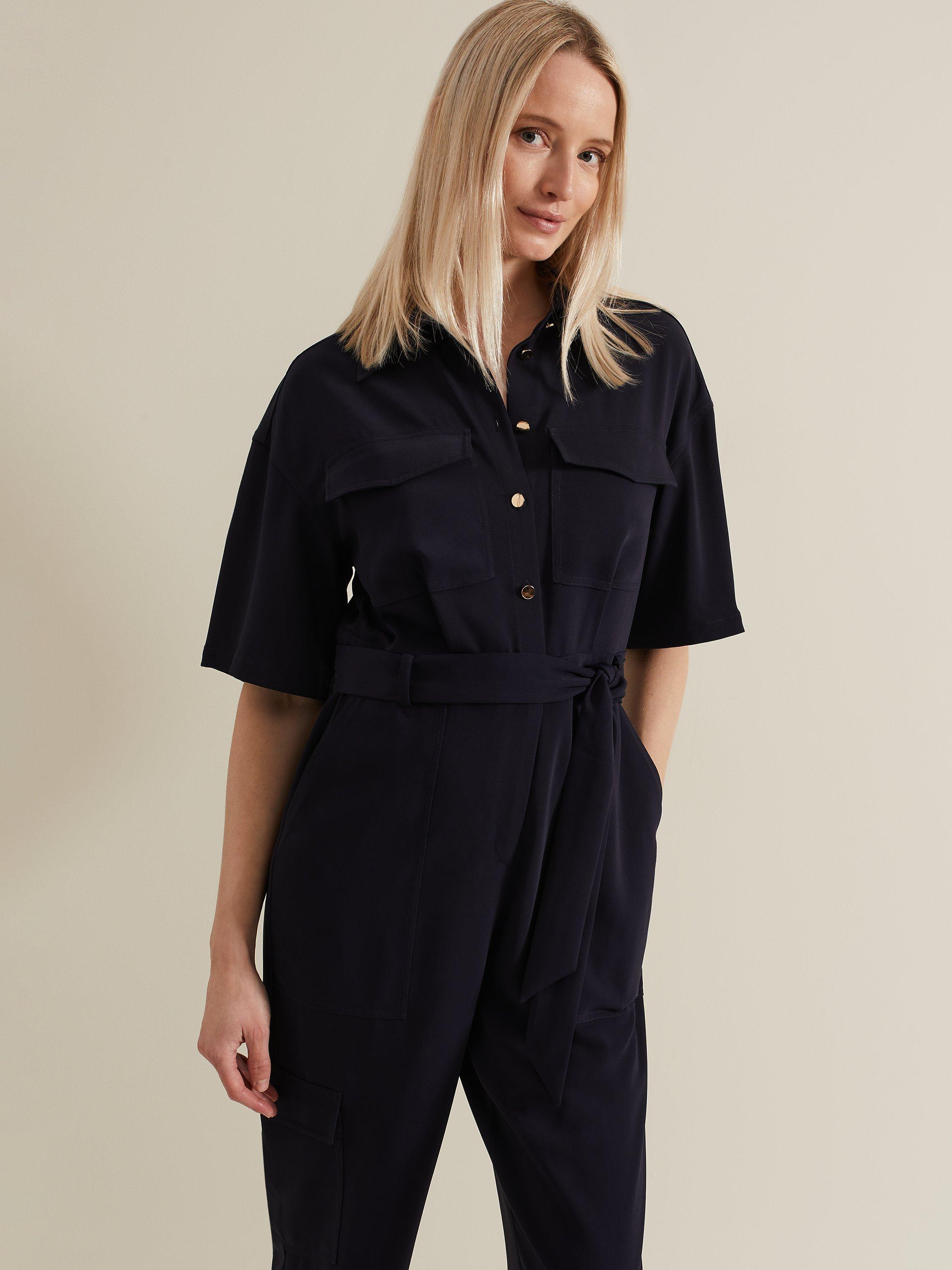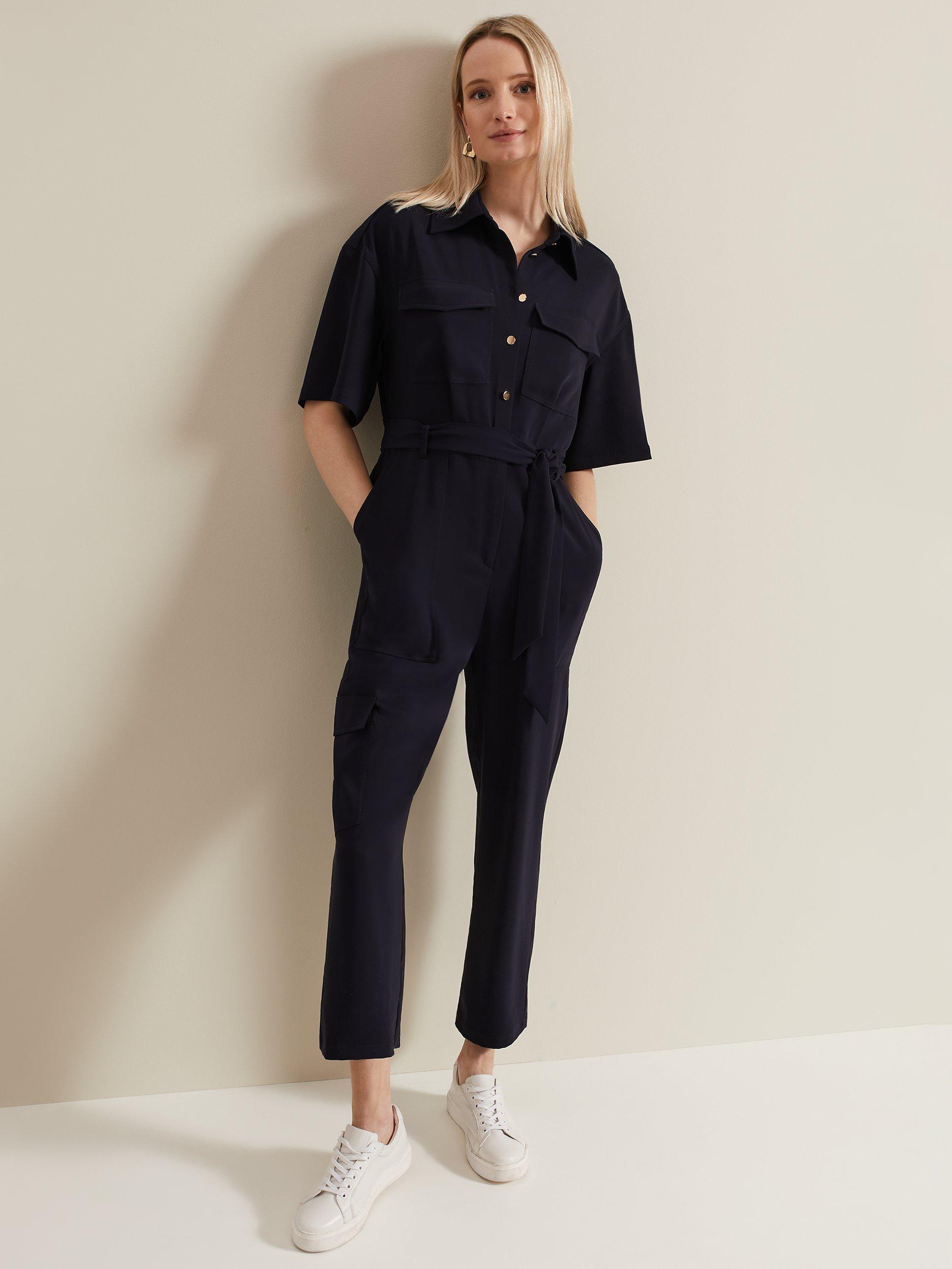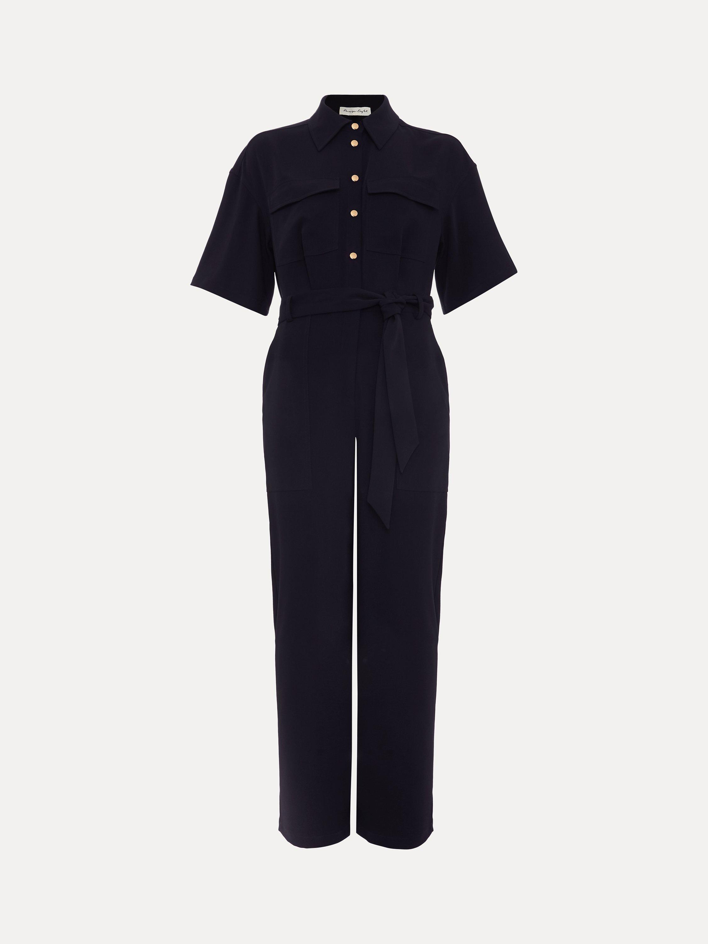 Framed with a sharp collar neckline and short sleeves, this jumpsuit by Phase Eight comes in a utility-inspired silhouette with a matching belt.