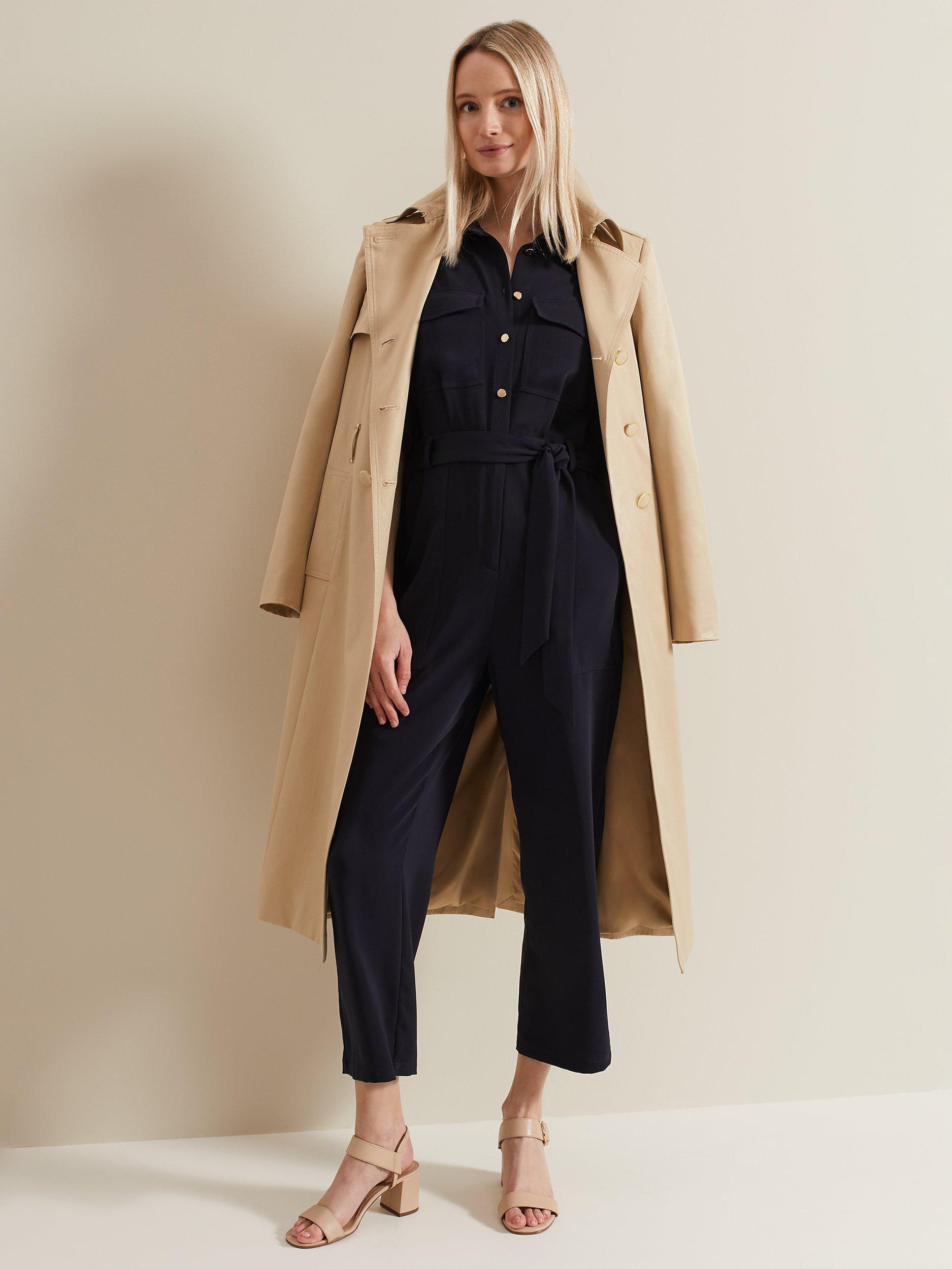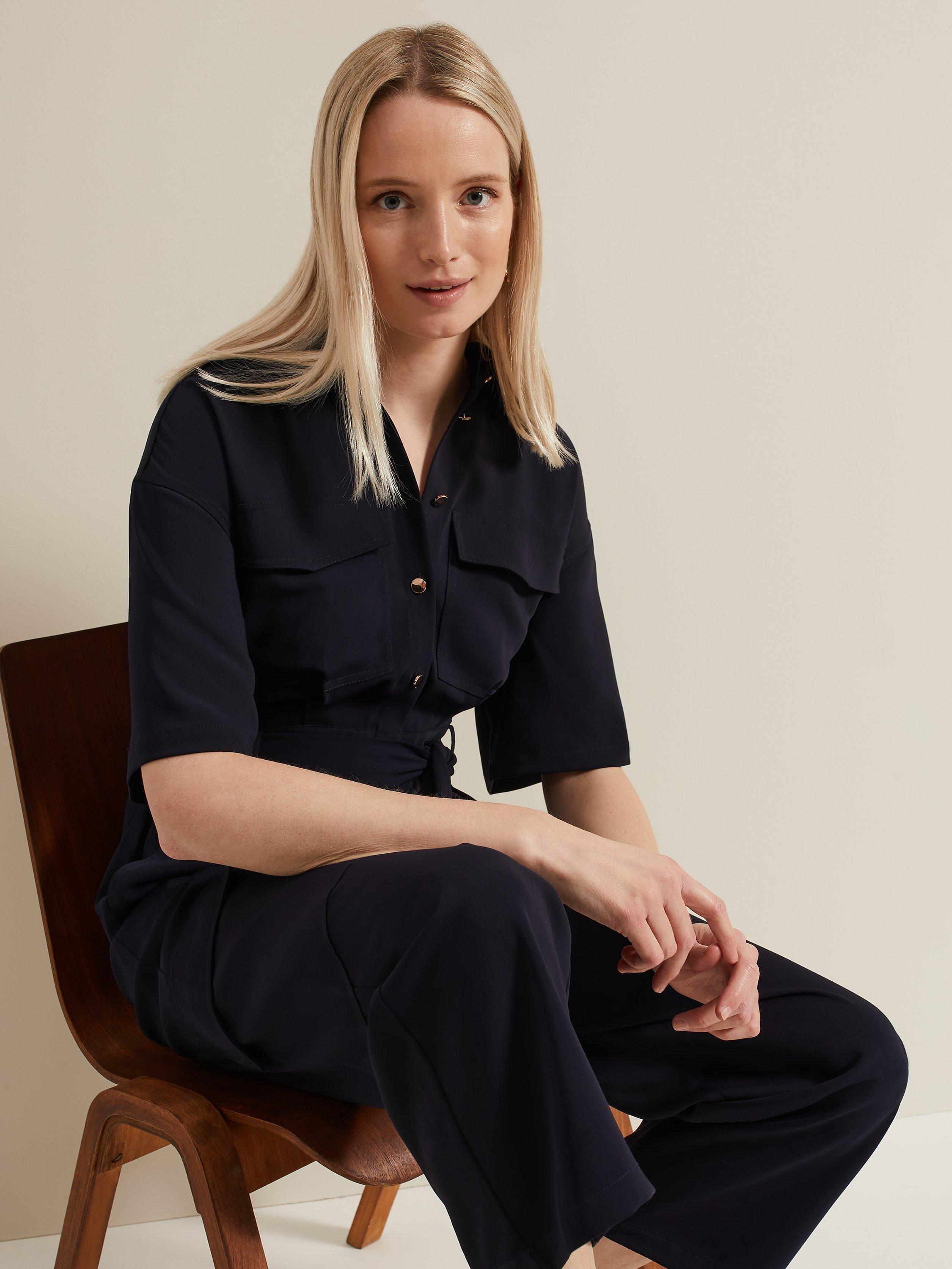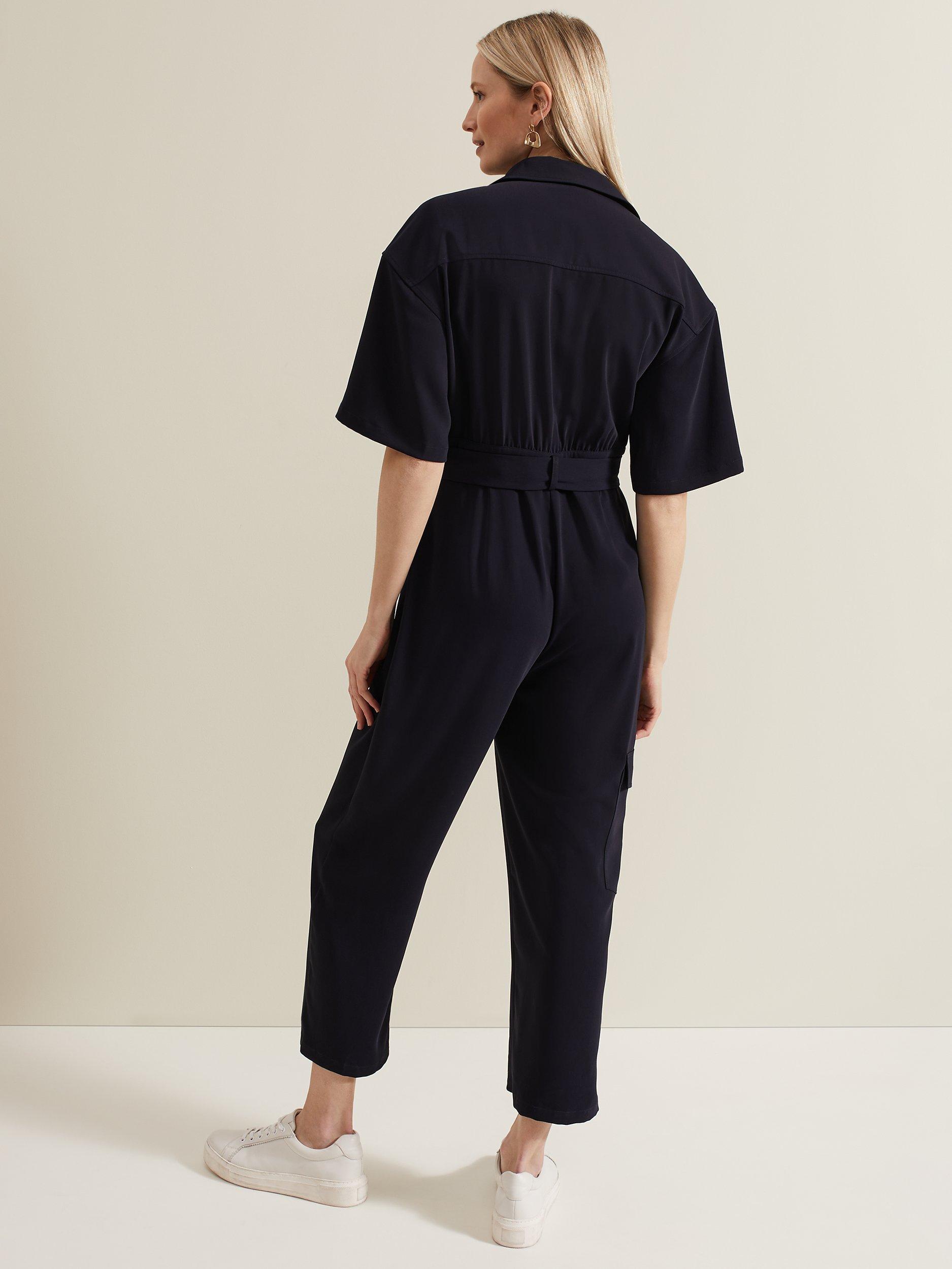 Framed with a sharp collar neckline and short sleeves, this jumpsuit by Phase Eight comes in a utility-inspired silhouette with a matching belt.