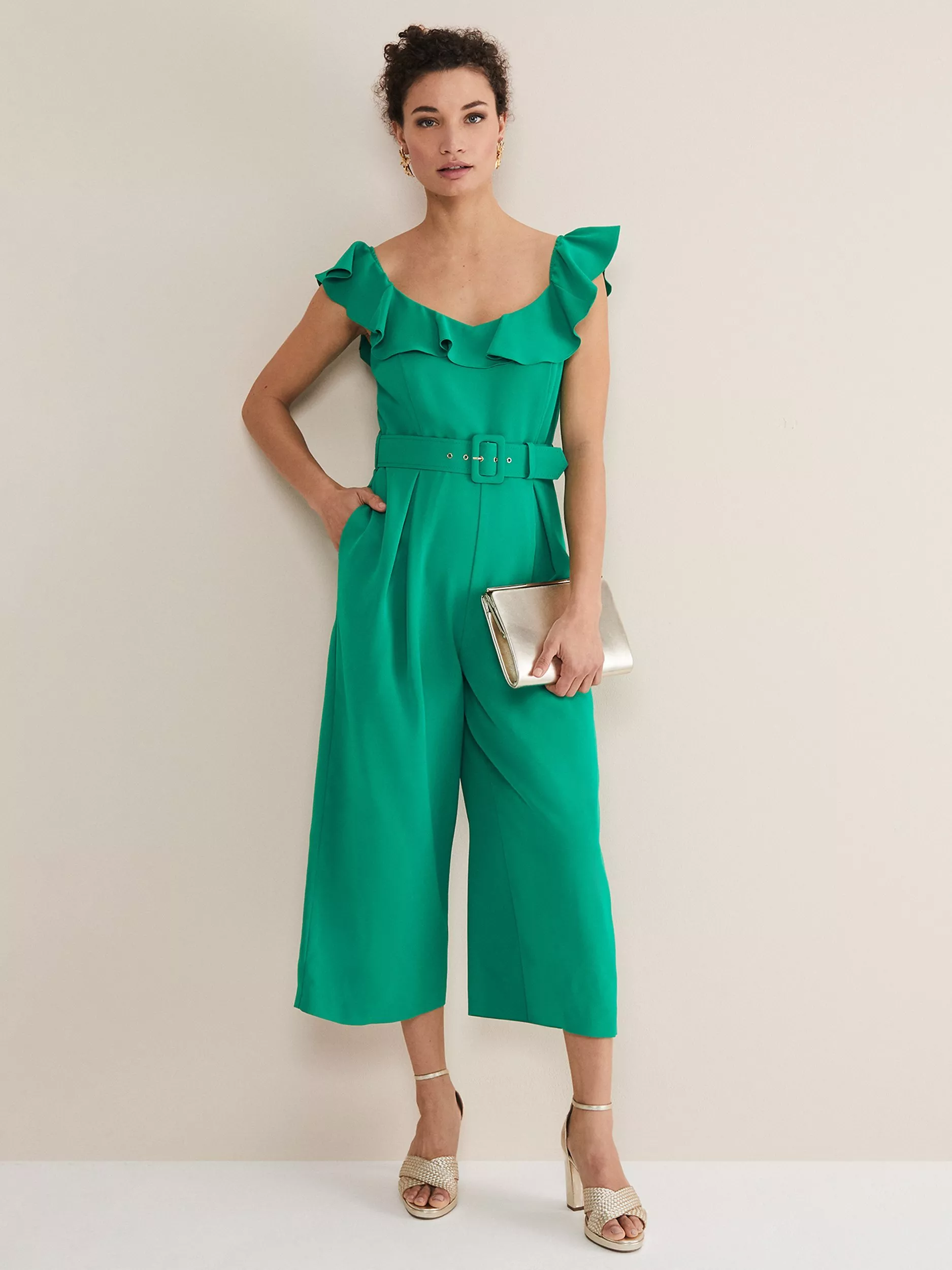 Framed with a sweetheart neckline and a ruffle trim, this sleeveless jumpsuit by Phase Eight falls to a flattering wide leg silhouette and is made from a lightweight yet durable fabric.