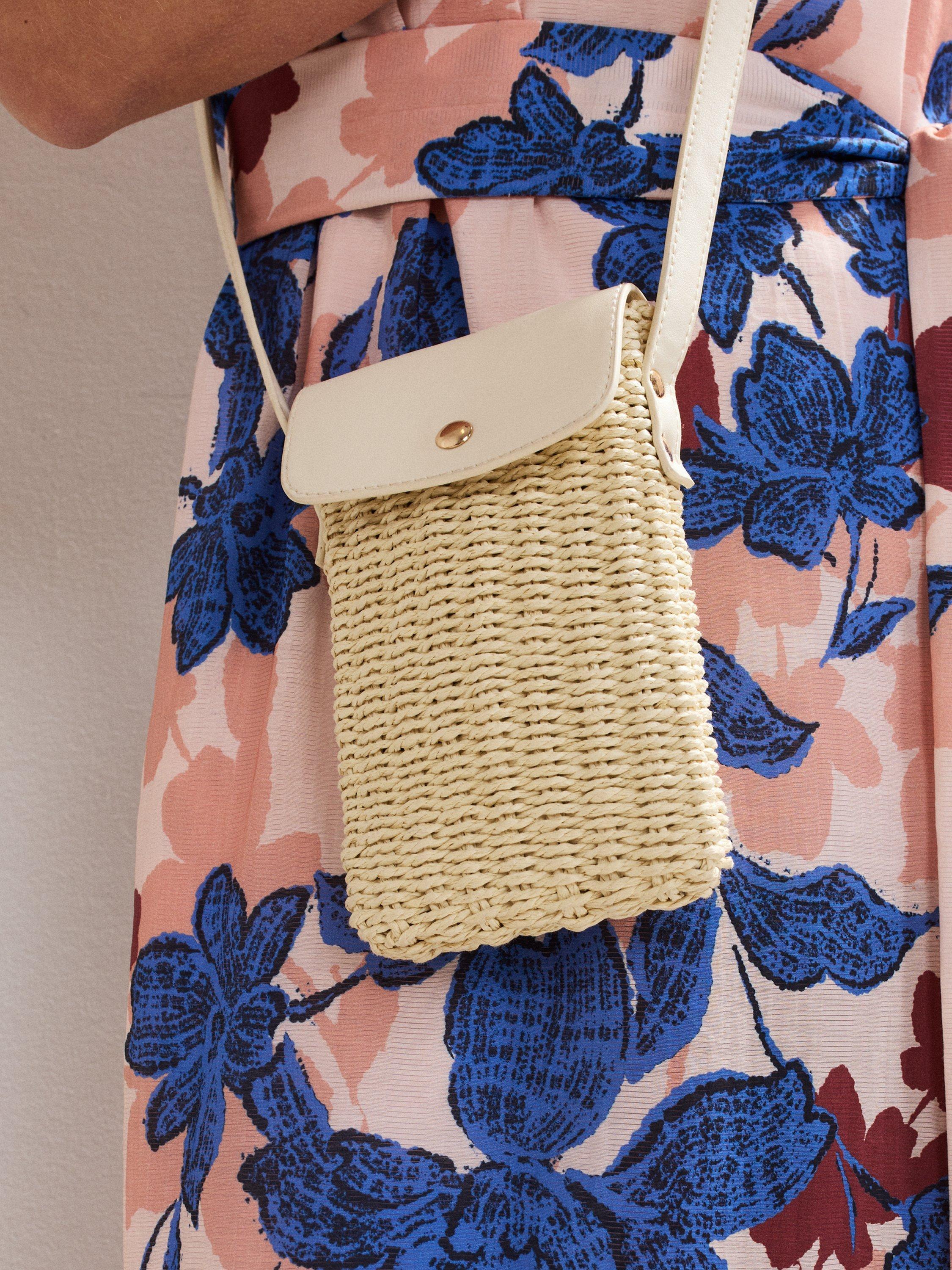 Carry your phone in style this season with the textured raffia holder from Phase Eight. Finished with an adjustable crossbody strap and magnetic closure, this contemporary accessory looks on-trend with both day and night outfits.