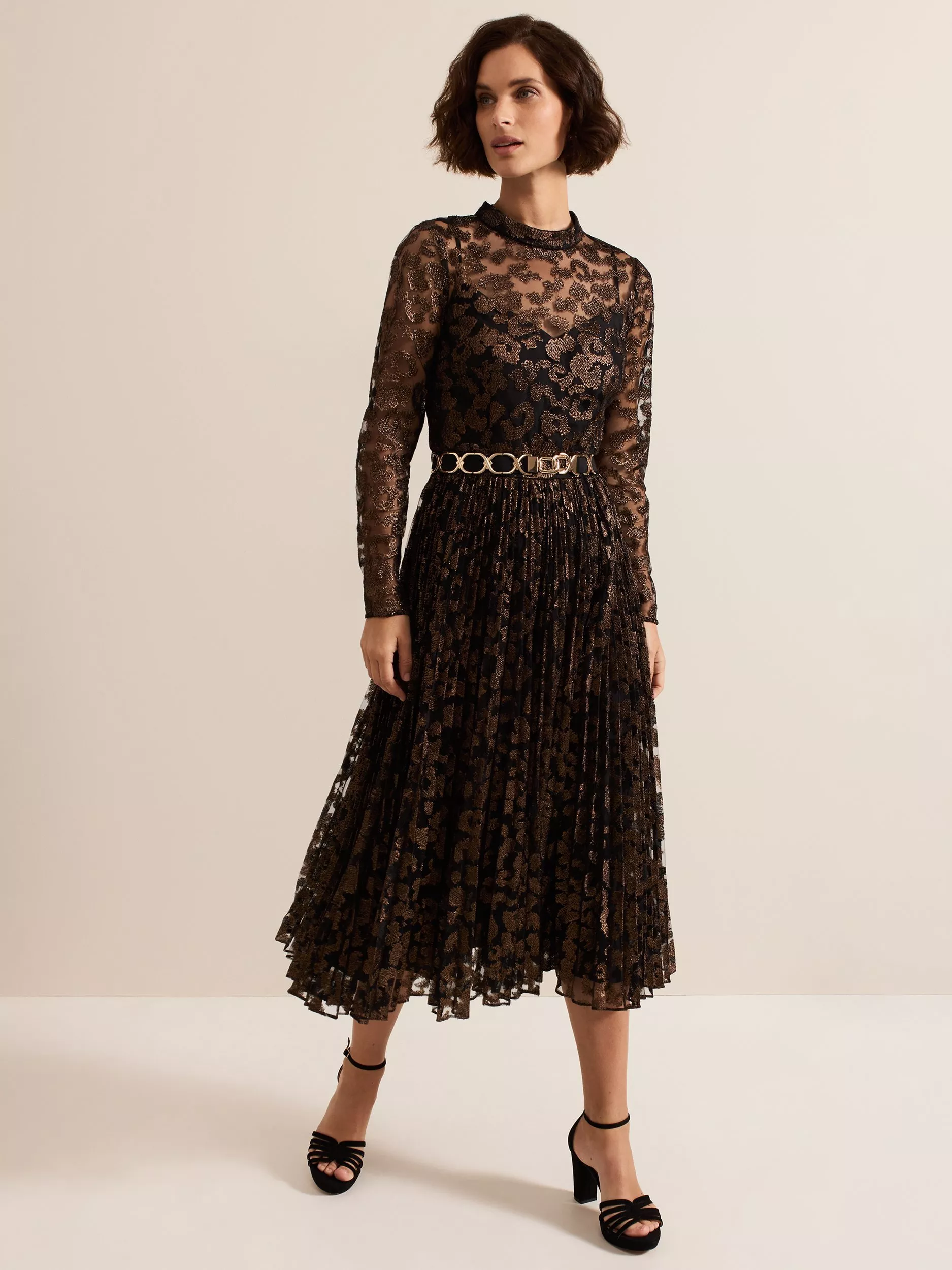 Phase EightTheodora Leopard Print Pleated Midi Dress, Black/Bronze