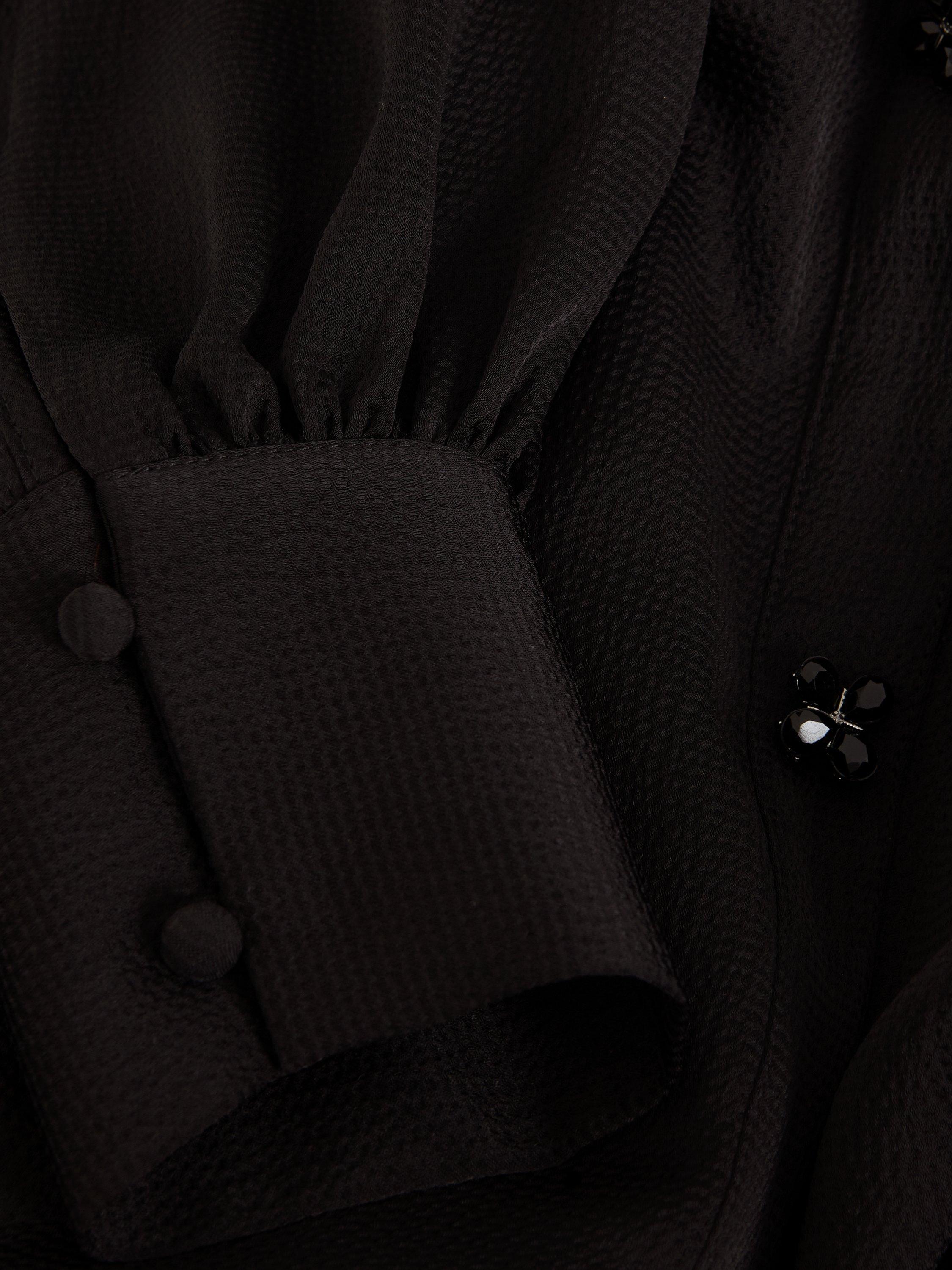 Add the perfect work-to-weekend mini dress to your wardrobe with the Tila dress from Phase Eight. Featuring long blouson sleeves and a collared neckline, the textured material and black gemstone buttons elevate the classic style.