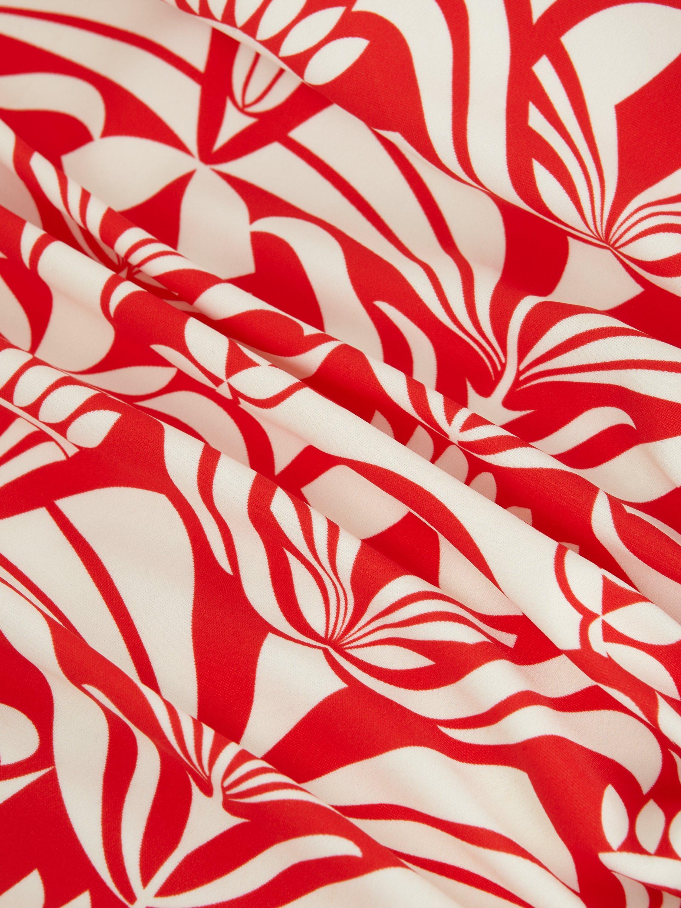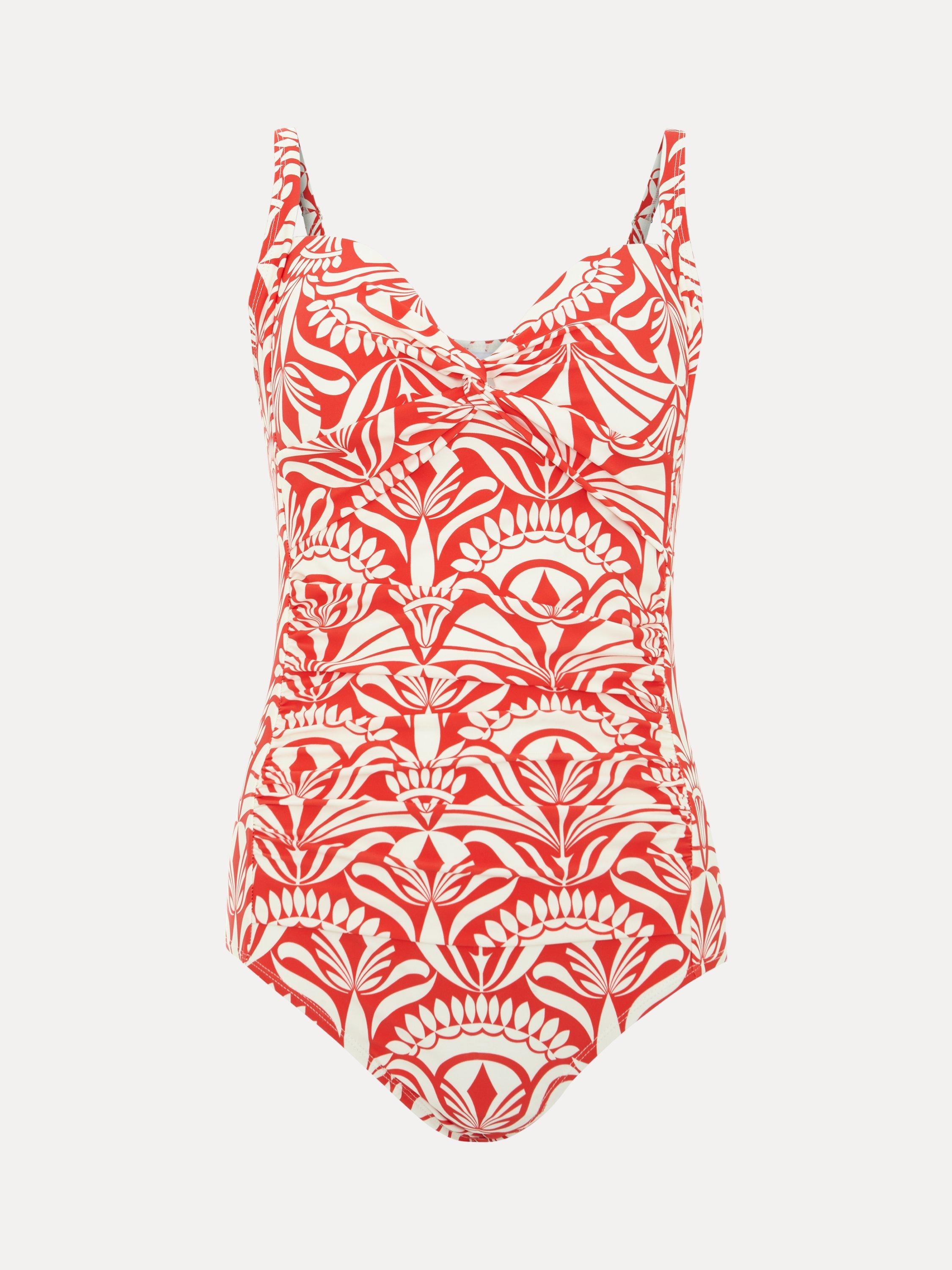 In an abstract tile print for a contemporary edge, this swimsuit features a feminine sweetheart neckline and subtle ruching on the bodice for a comfortable and flattering fit. Simply pair with your favourite sandals for a standout poolside look.