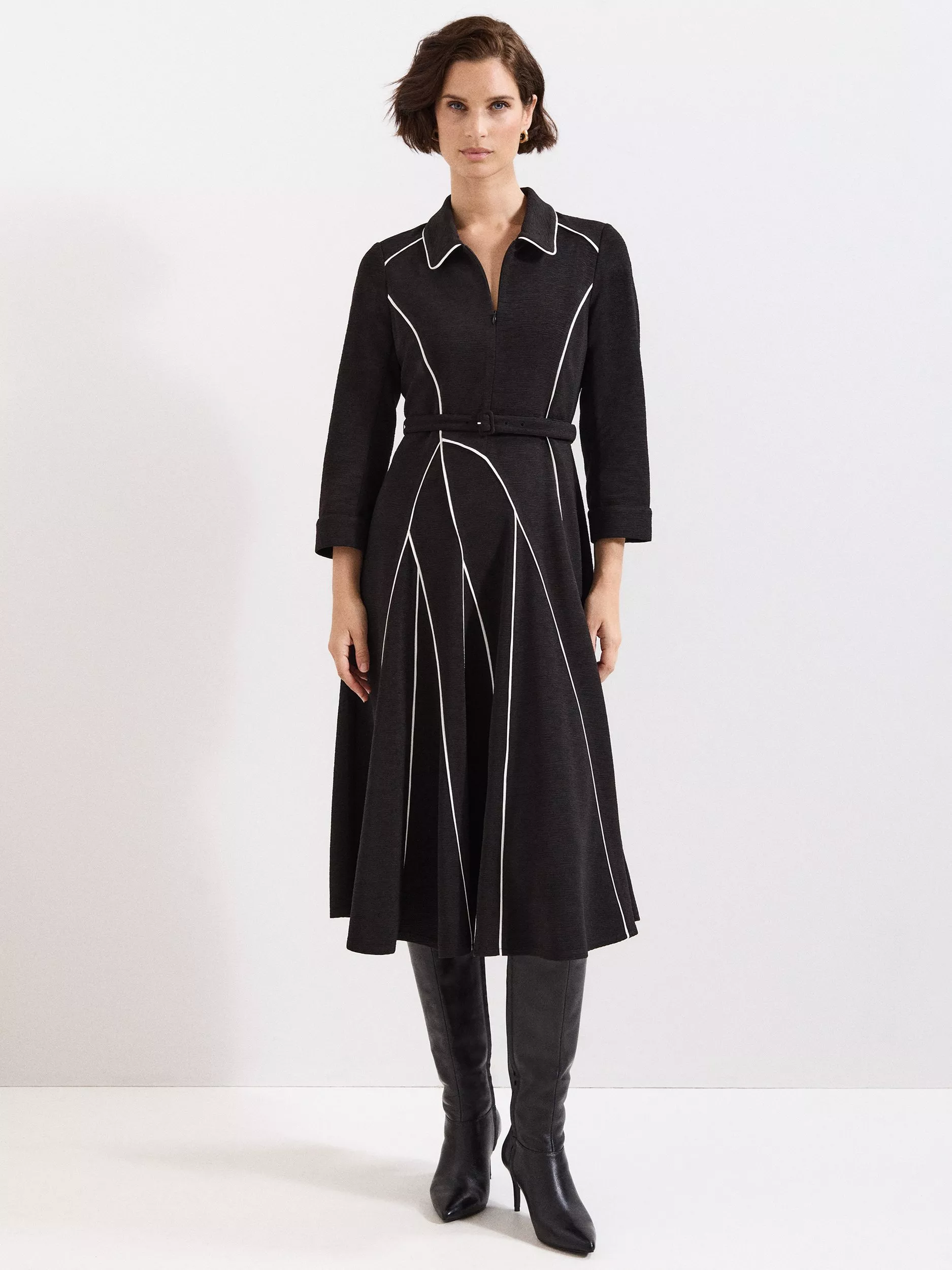 Elegance and simplicity come together with this shirt midi dress. The fit and flare silhouette allows the dress to highlight your figure but feel relaxed enough for wear-all-day appeal. Updated with piped detailing for a contemporary edge.