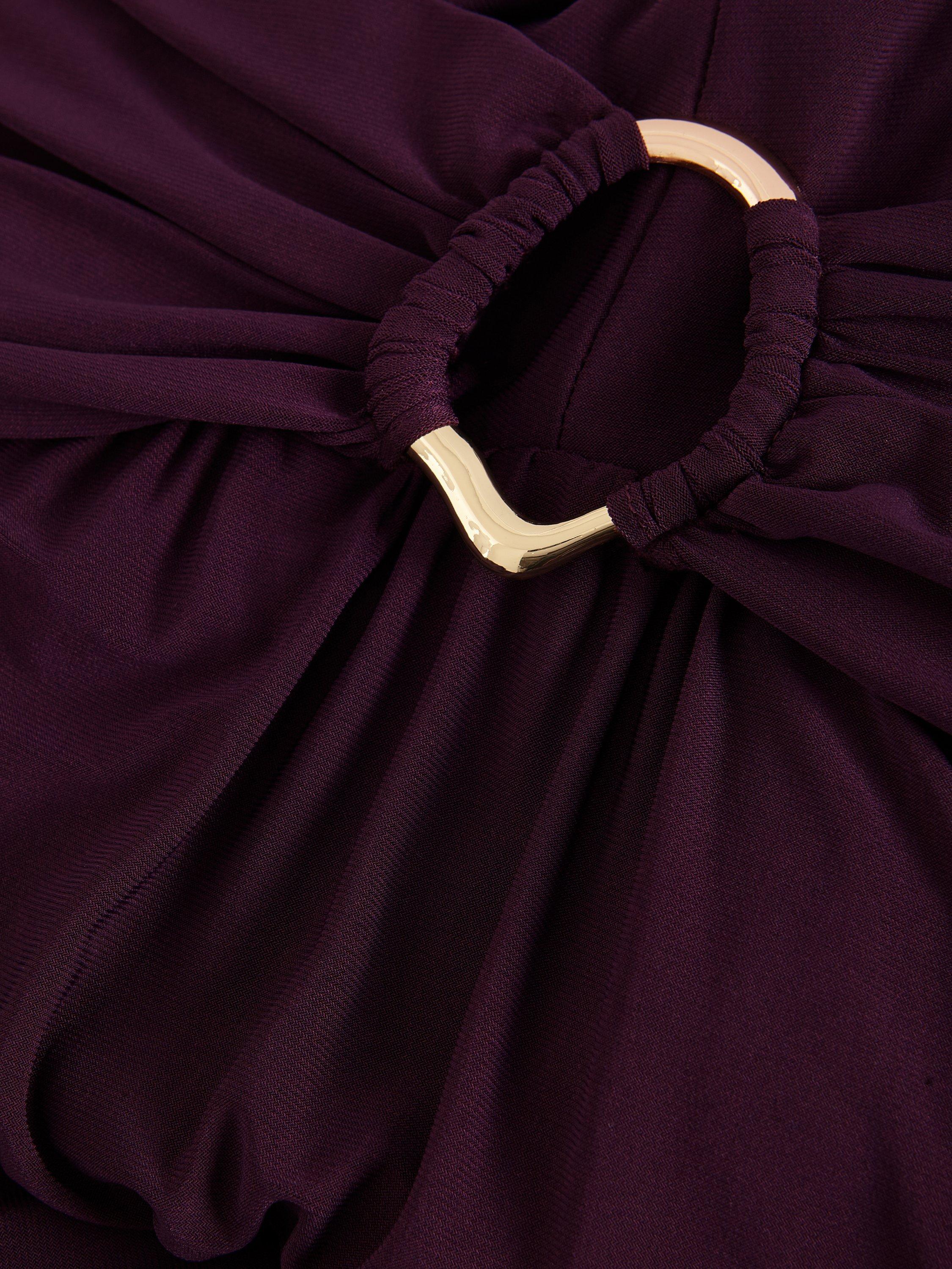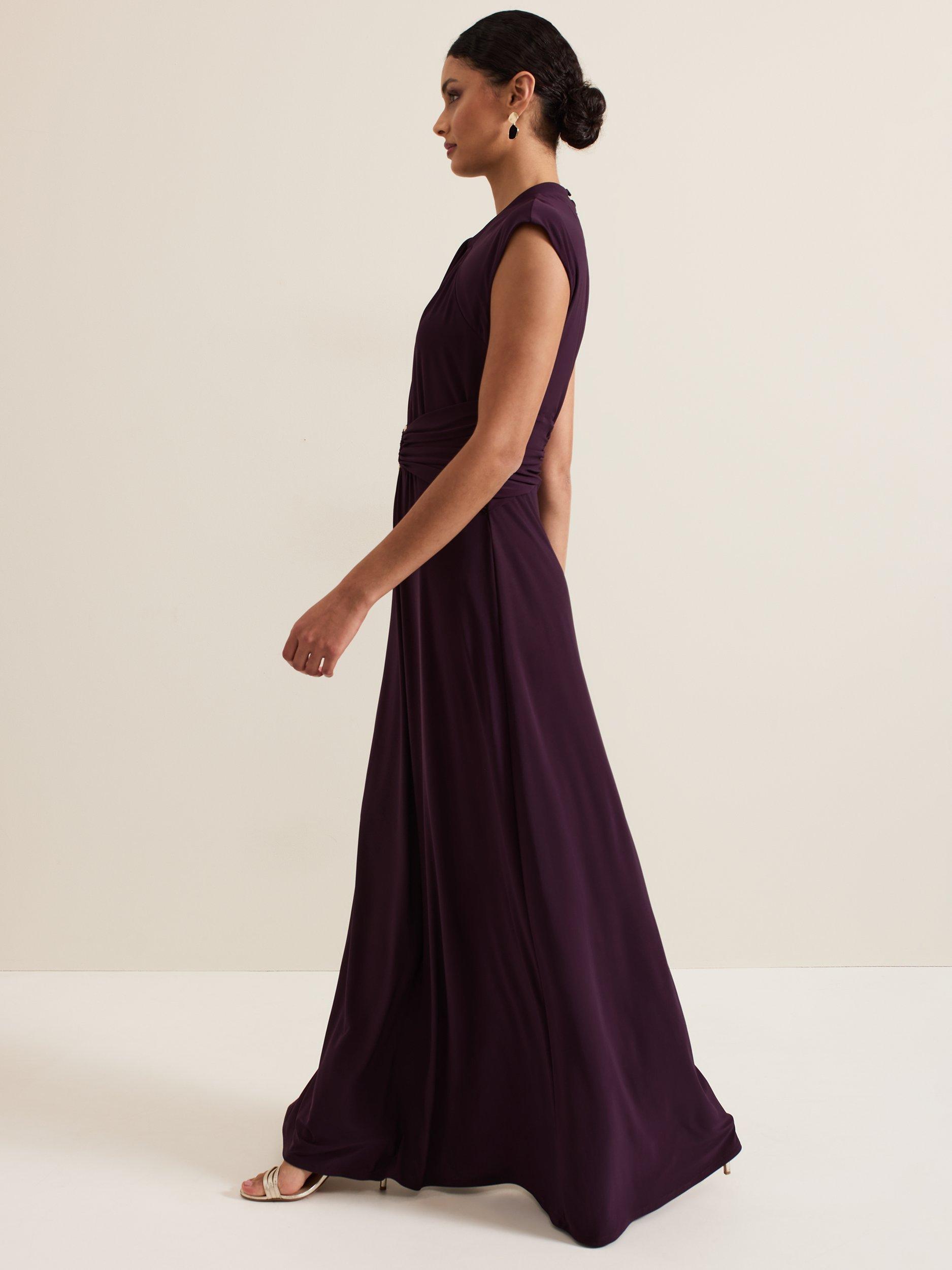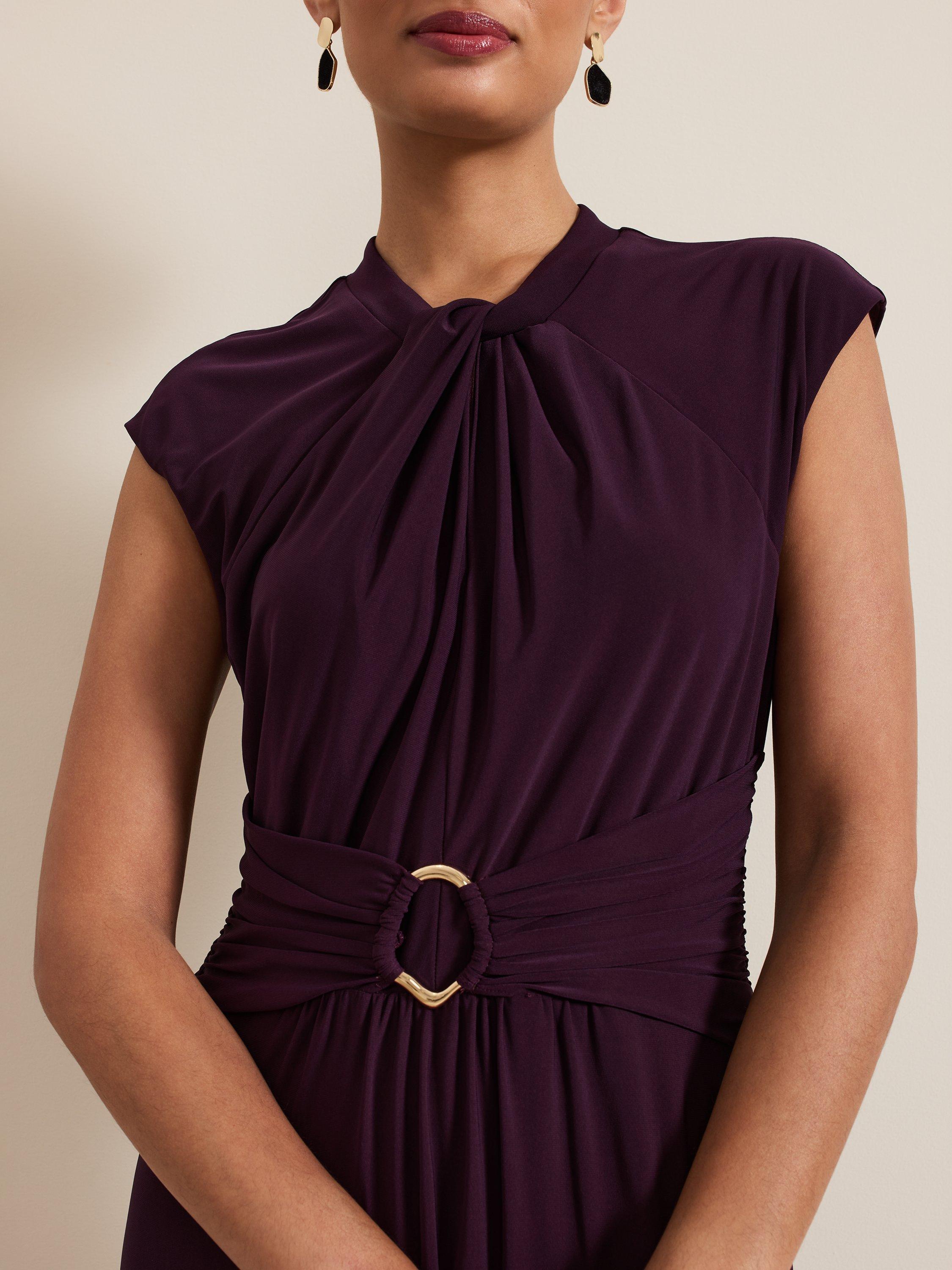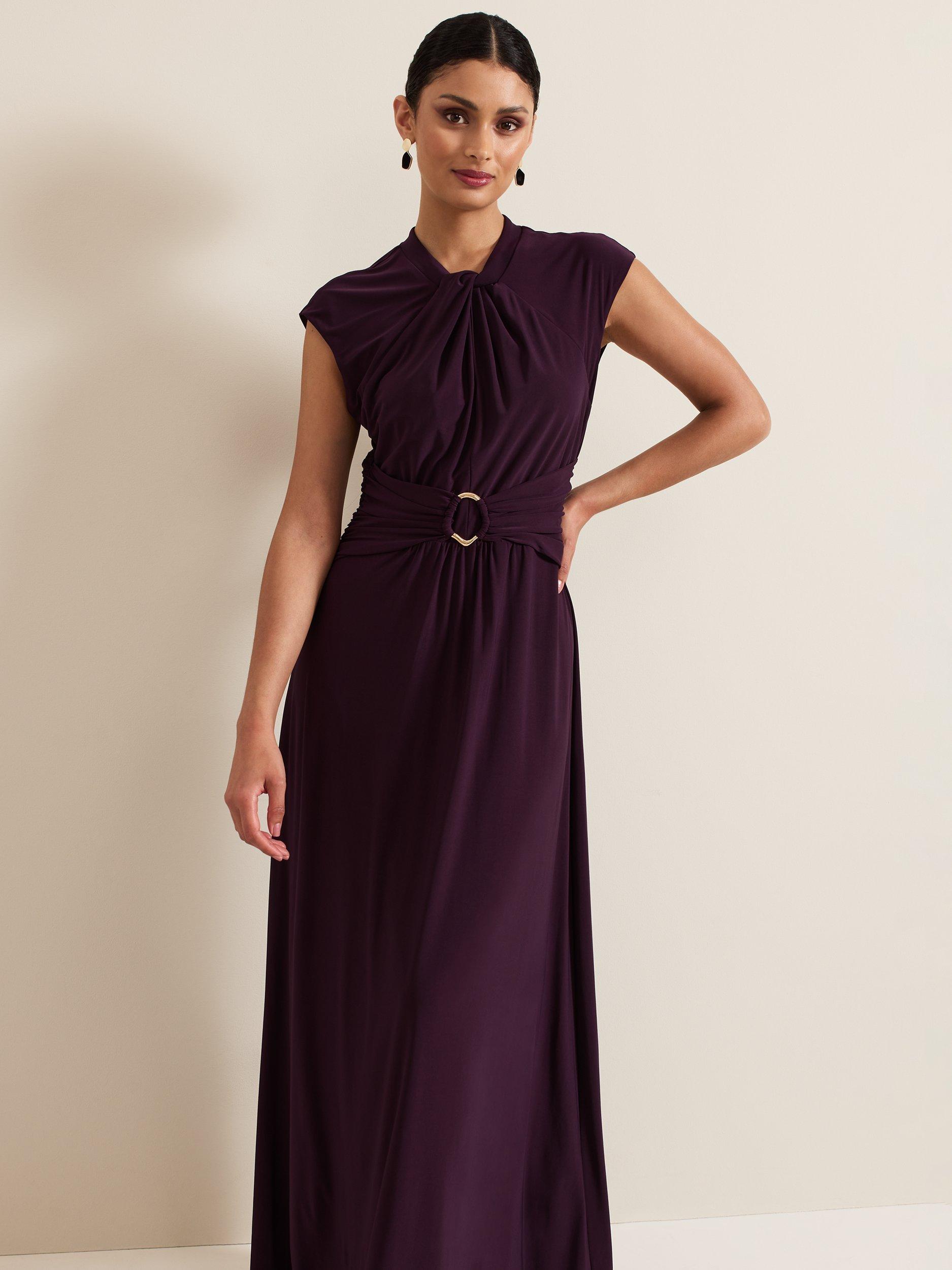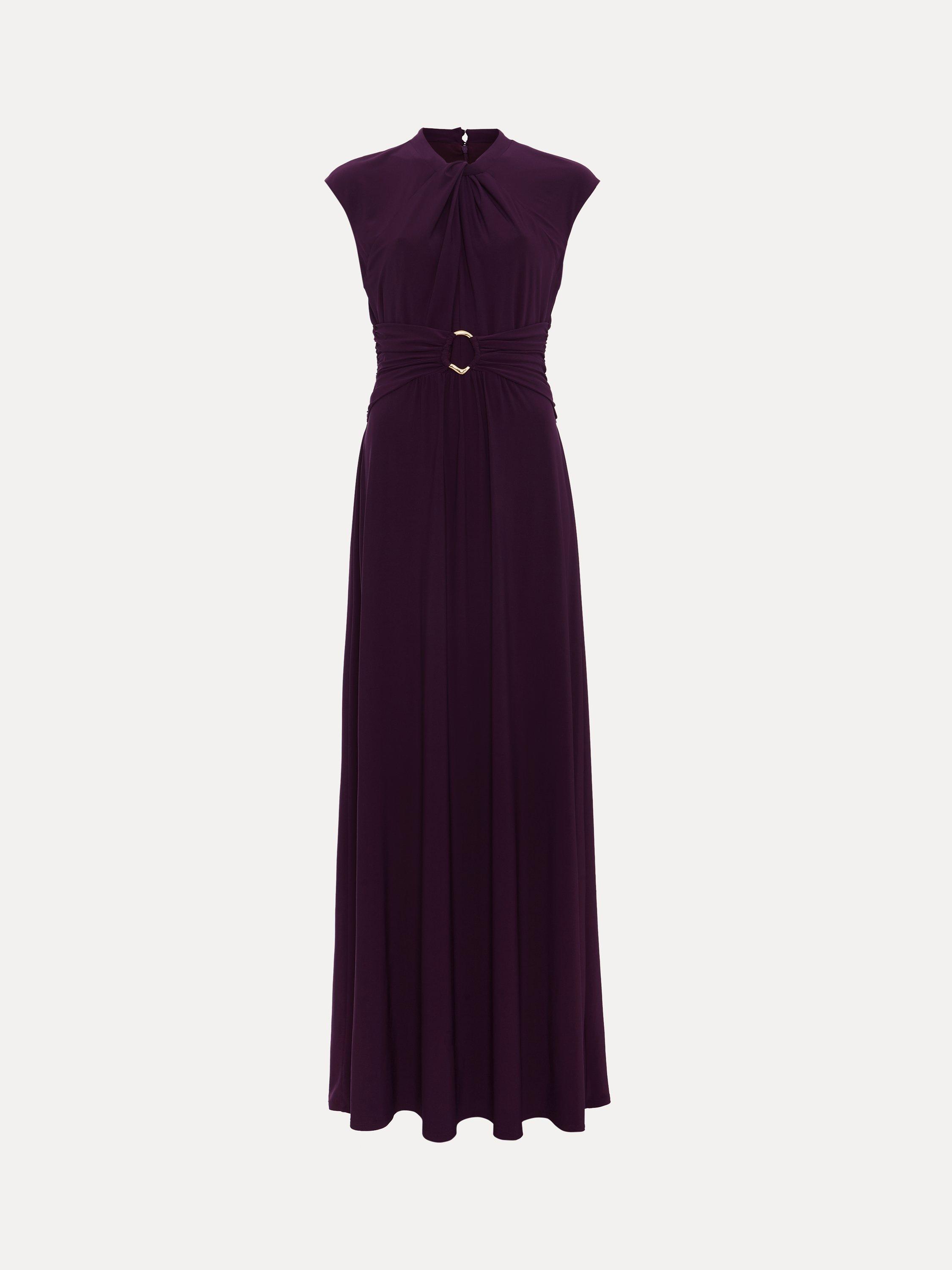 Designed in a deep hue, our Tolly dress is cut to a sleeveless silhouette and is crafted from a soft jersey material that skims the body, falling naturally to a maxi length. Featuring an elegant twist neck with soft draping our dress has a wide ruched belt with a statement gold buckle to create a cinched feminine style.
