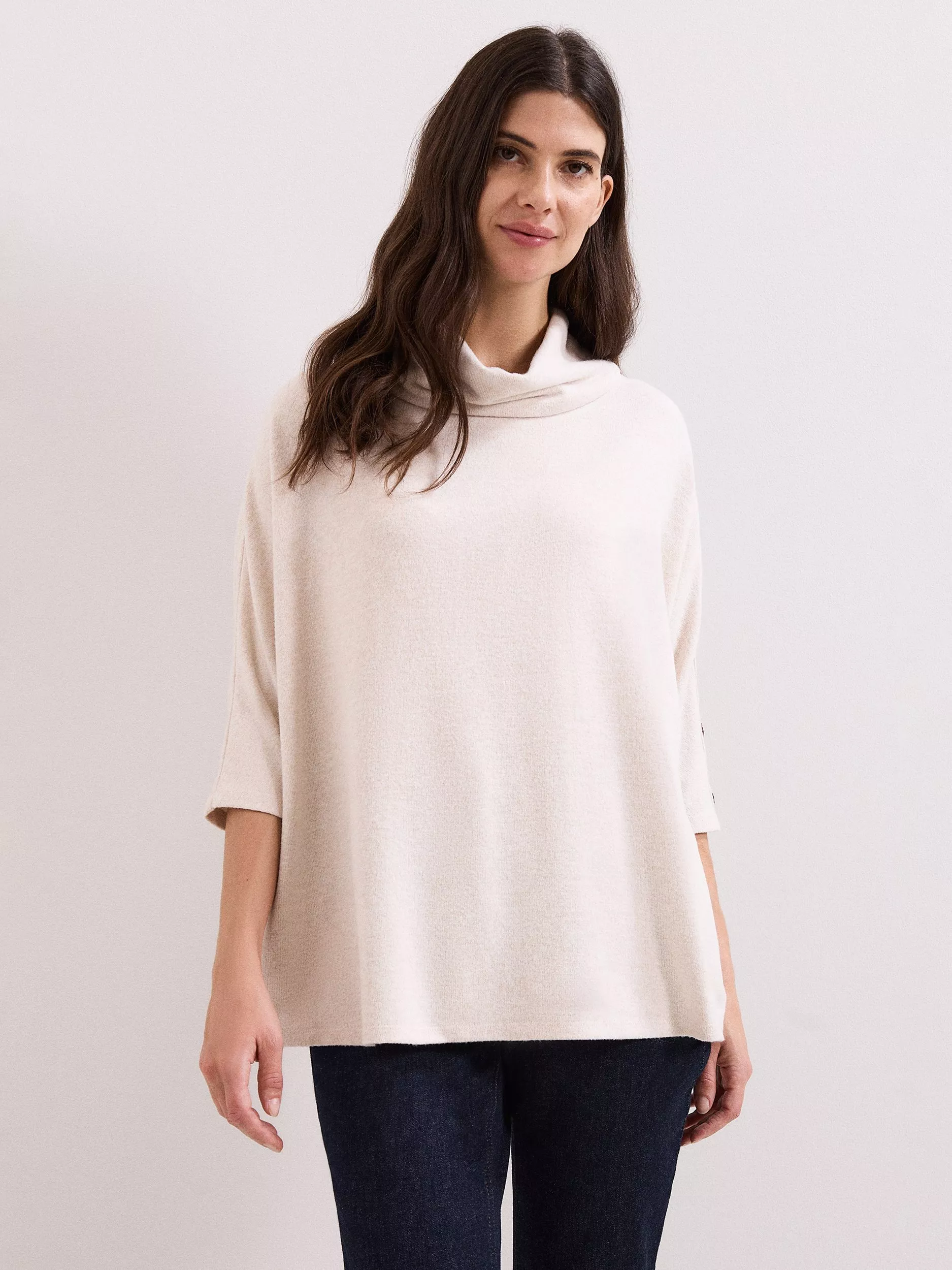 A snuggle top from Phase Eight. With a cowl neck and three-quarter length button sleeves, the plain colour means it goes with everything.