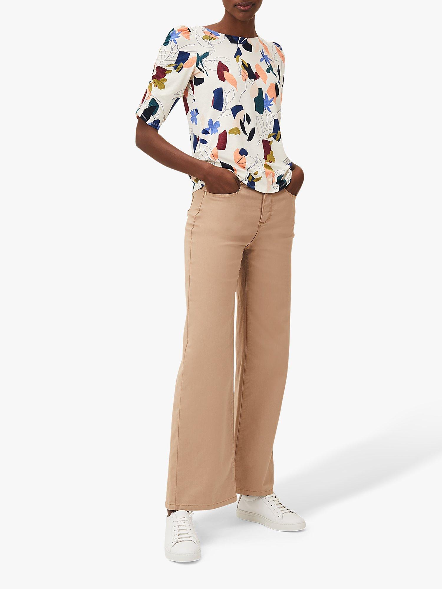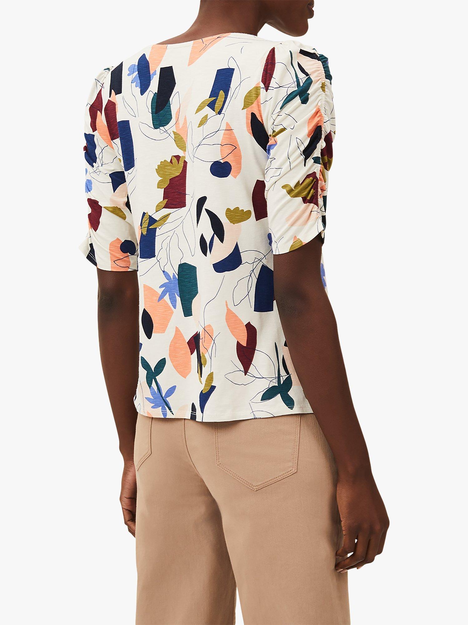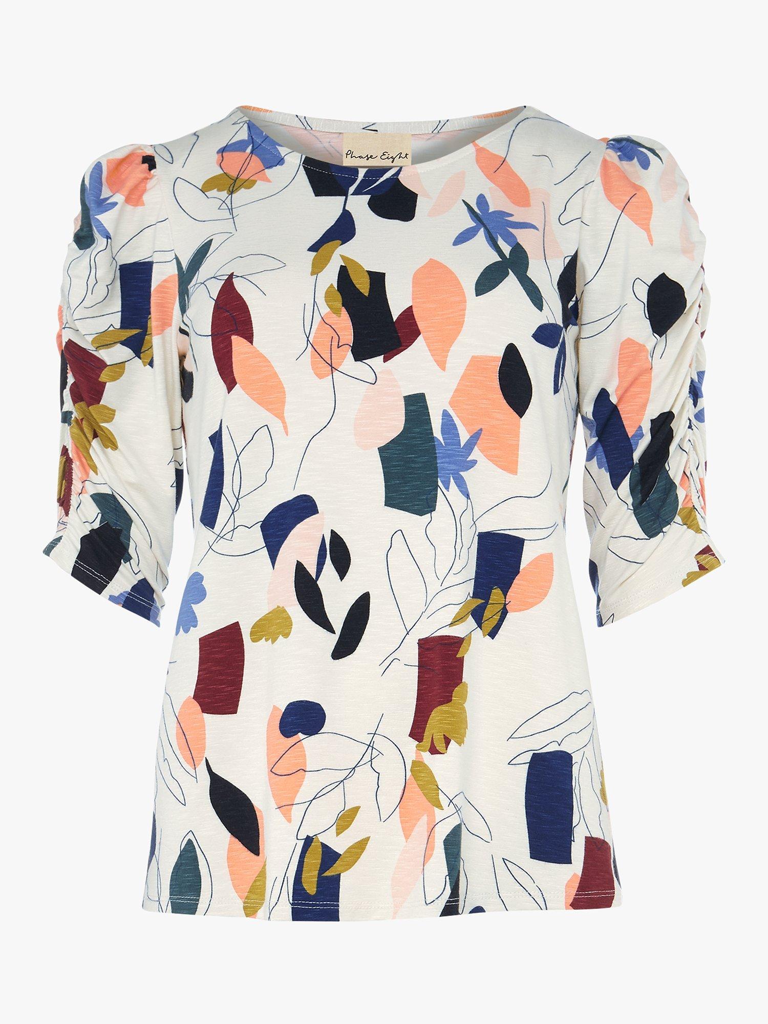 The Phase Eight Torrie top has a modern floral-inspired abstract print, short ruched sleeves and a round neckline. Perfect for dressing down on weekends, style yours with jeans and flats.