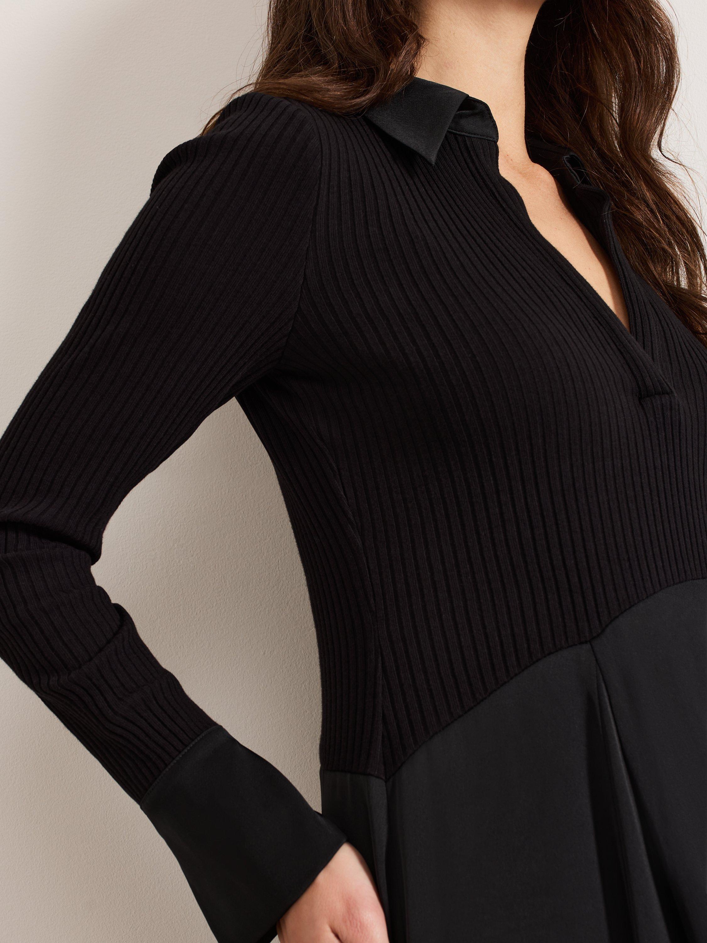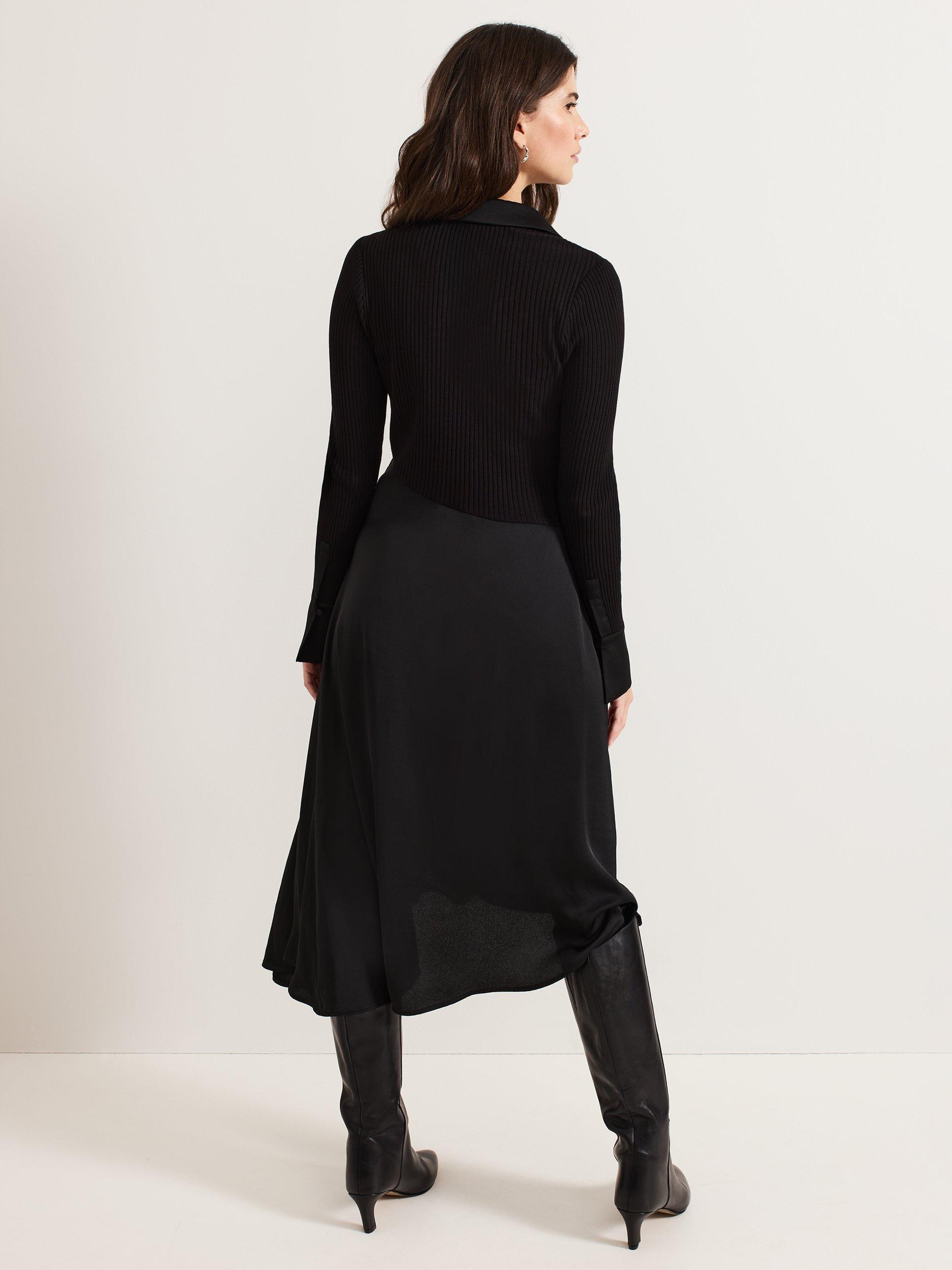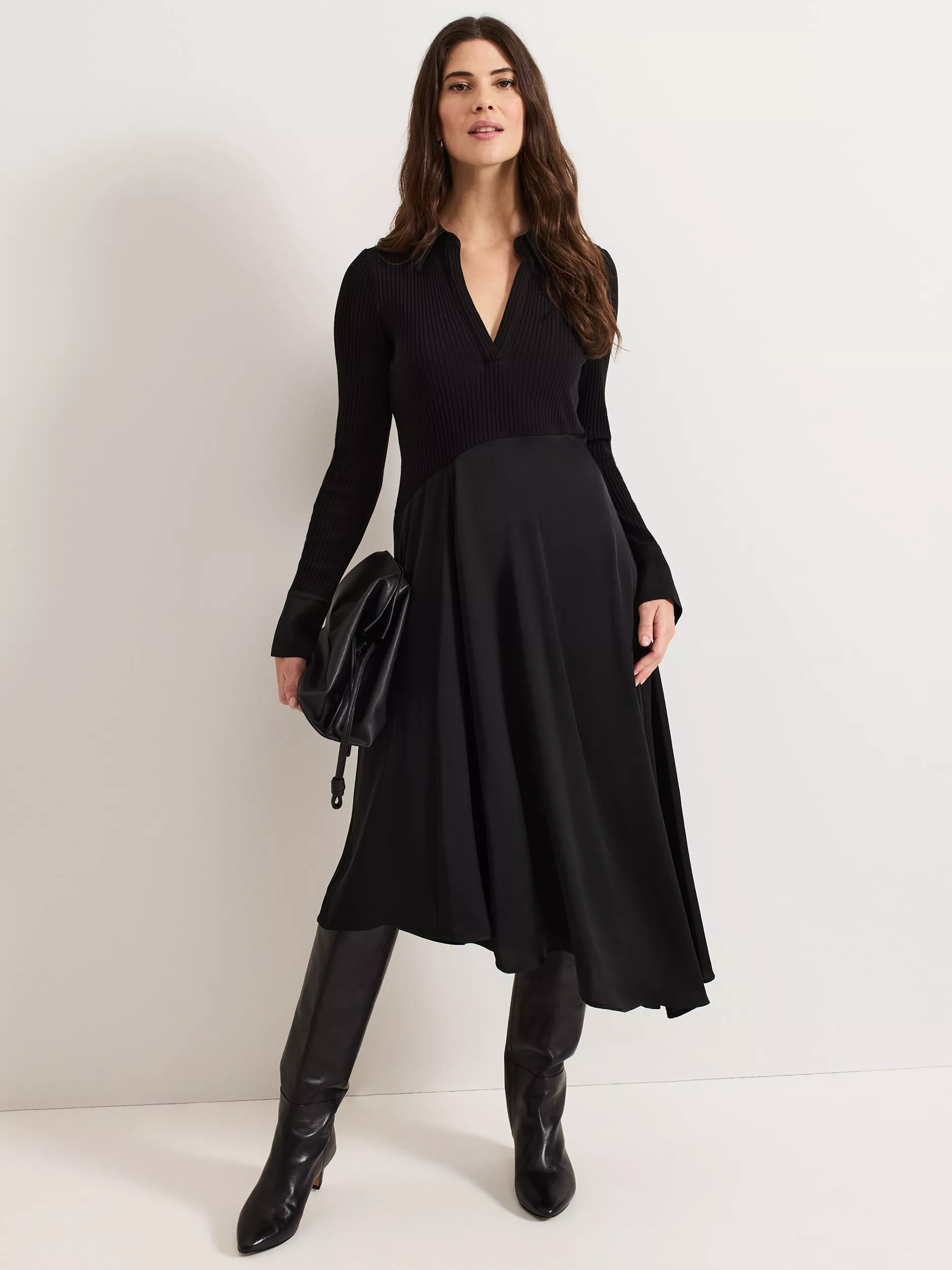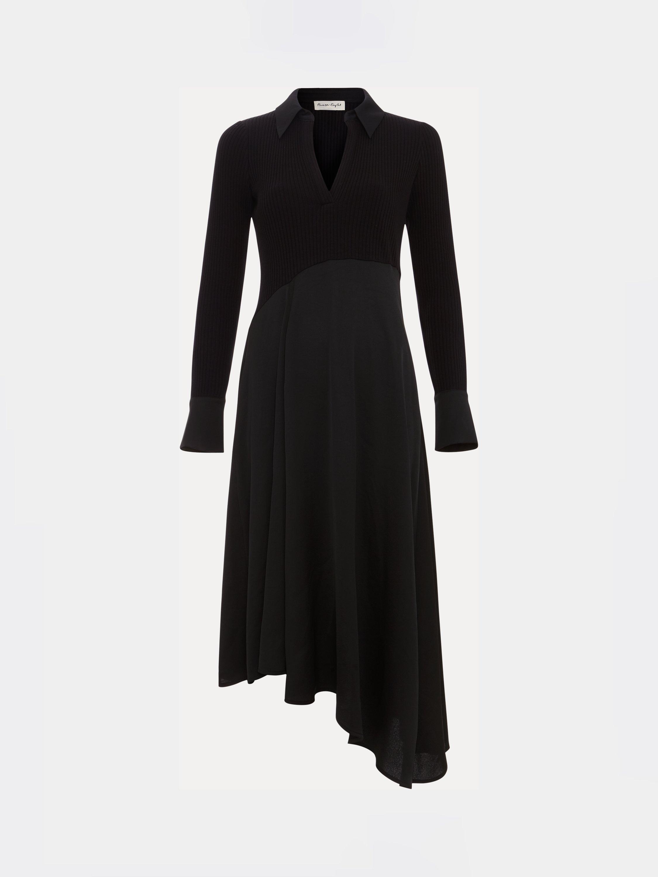 Fitted through the body and falling to a flared asymmetric hem, this mid-length dress from Phase Eight is crafted from a blend of fabrics. Effortlessly flattering thanks to a fuss-free v-neckline and long sleeves, it is minimally detailed for endless wearability.