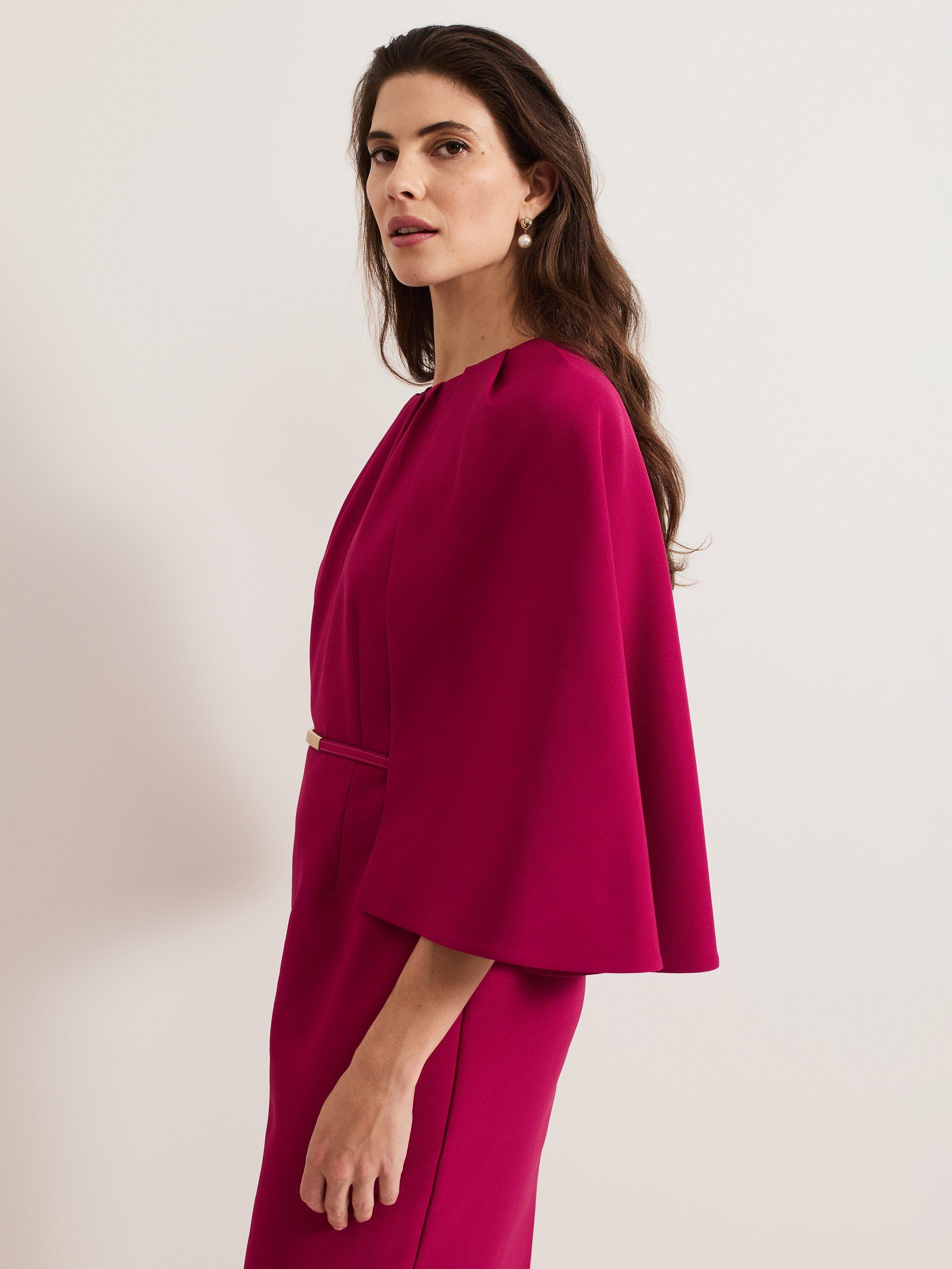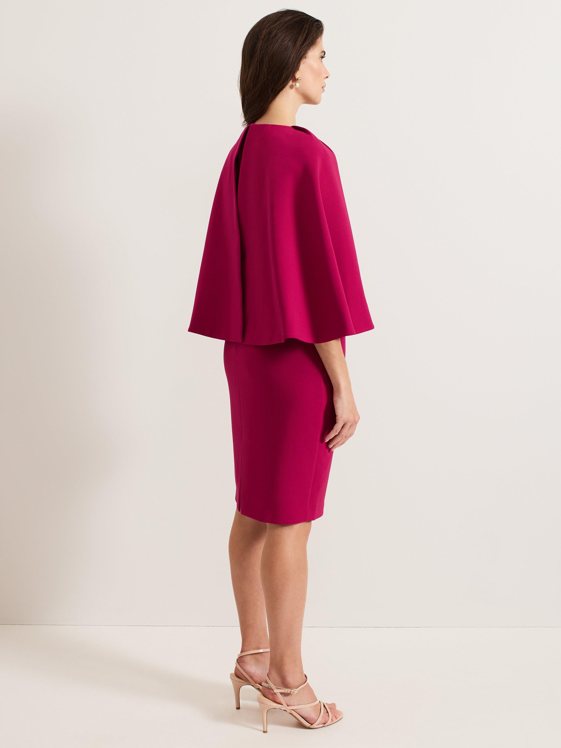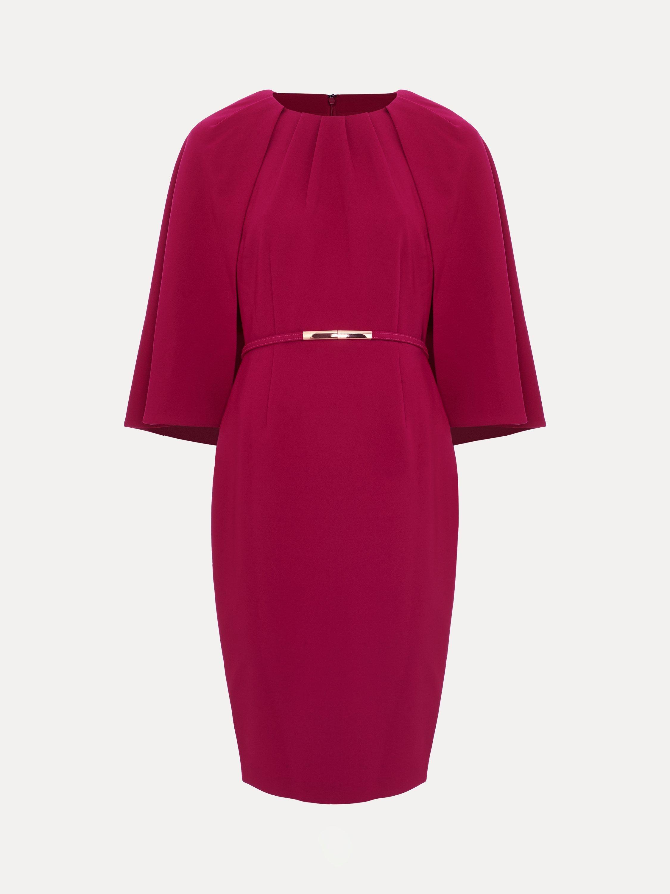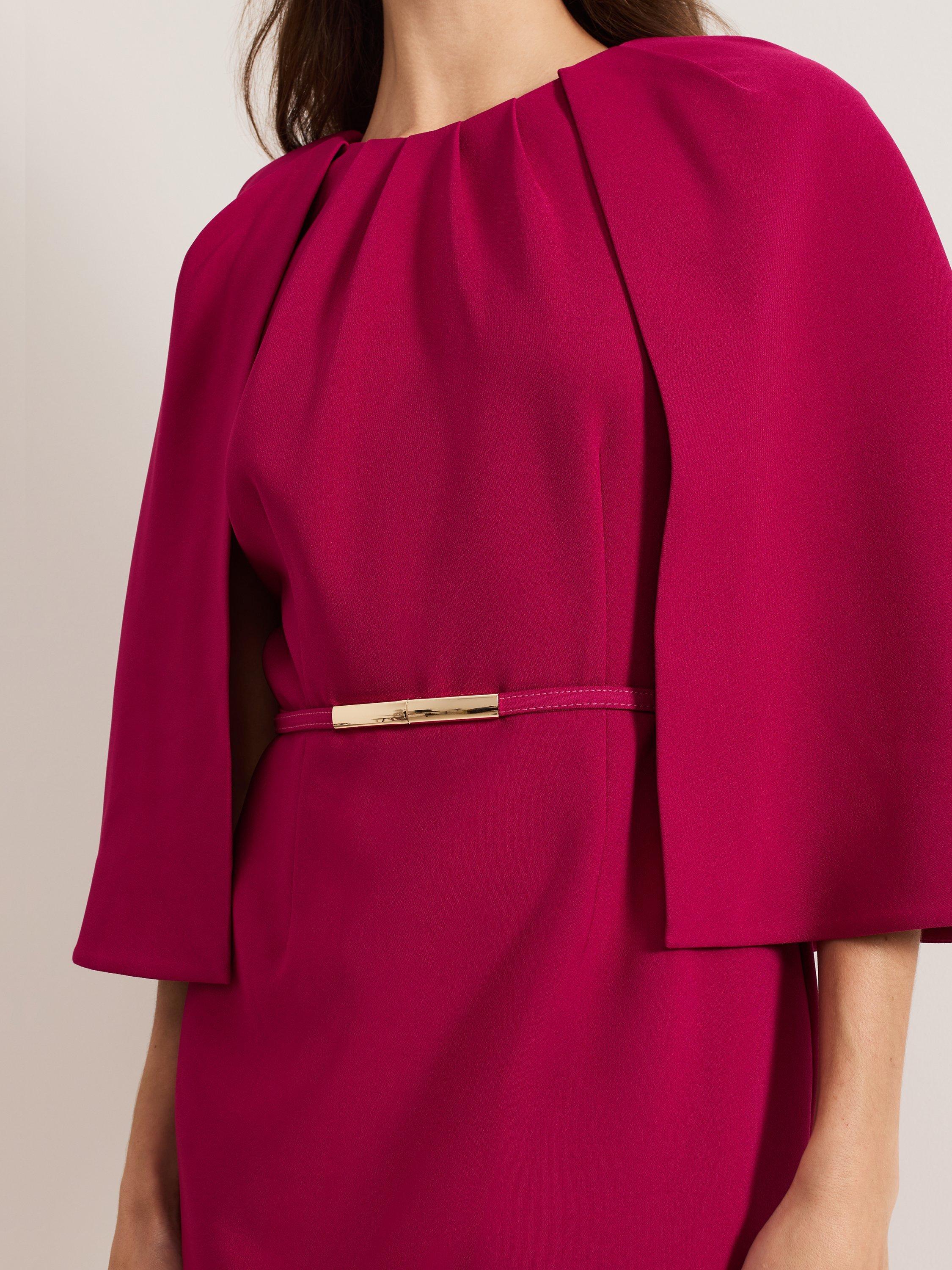 This classic occasion style will become a staple in your event wardrobe. In a vibrant shade, the Veronica dress features a belt detail finished with a gold accent to add a touch of definition to the mini silhouette. The elegant cape cascades down the back making it a sophisticated choice for all your future events.
