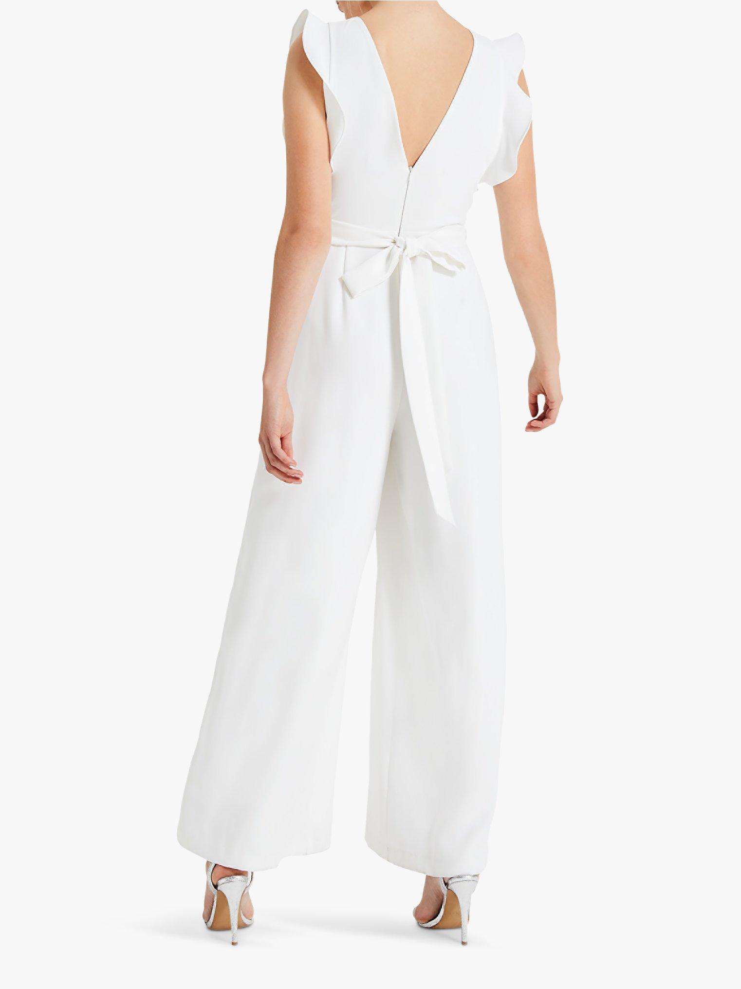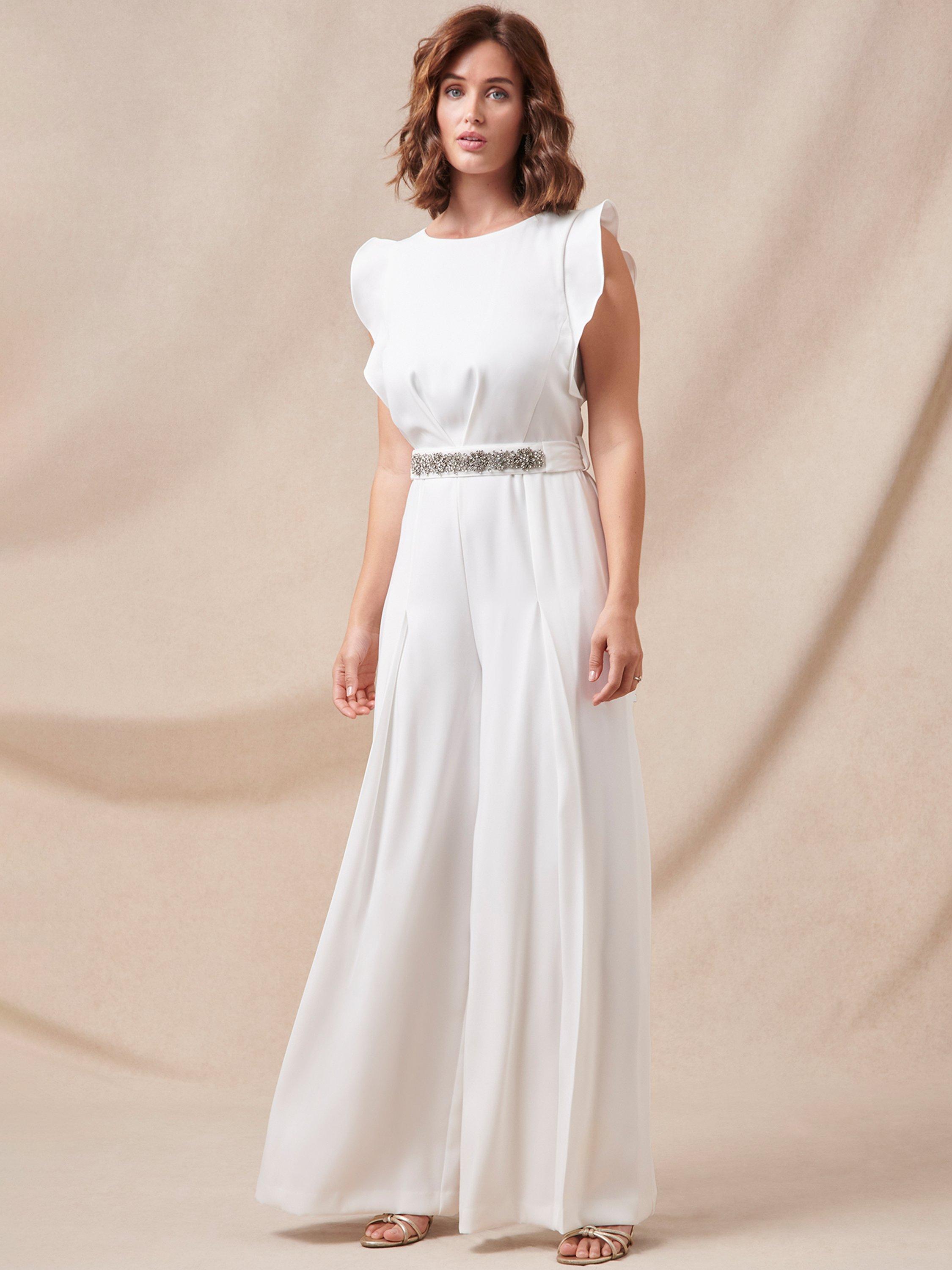 Featuring statement frilled sleeves and a flattering waist tie this smart jumpsuit is finished with a detachable belt intricately beaded with vintage-inspired embellishment. This style has an elegant V-back and is fastened with a concealed centre back zip.