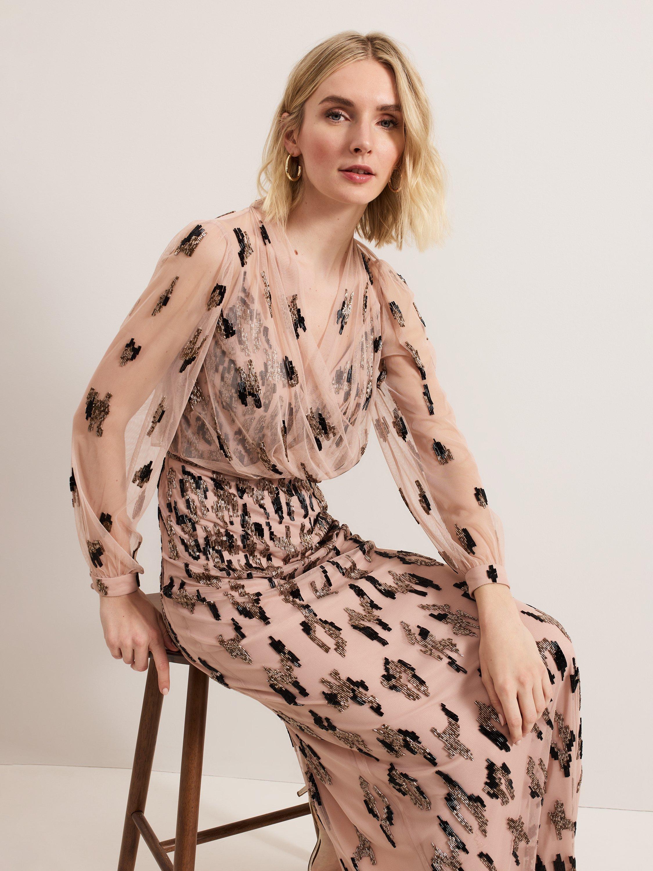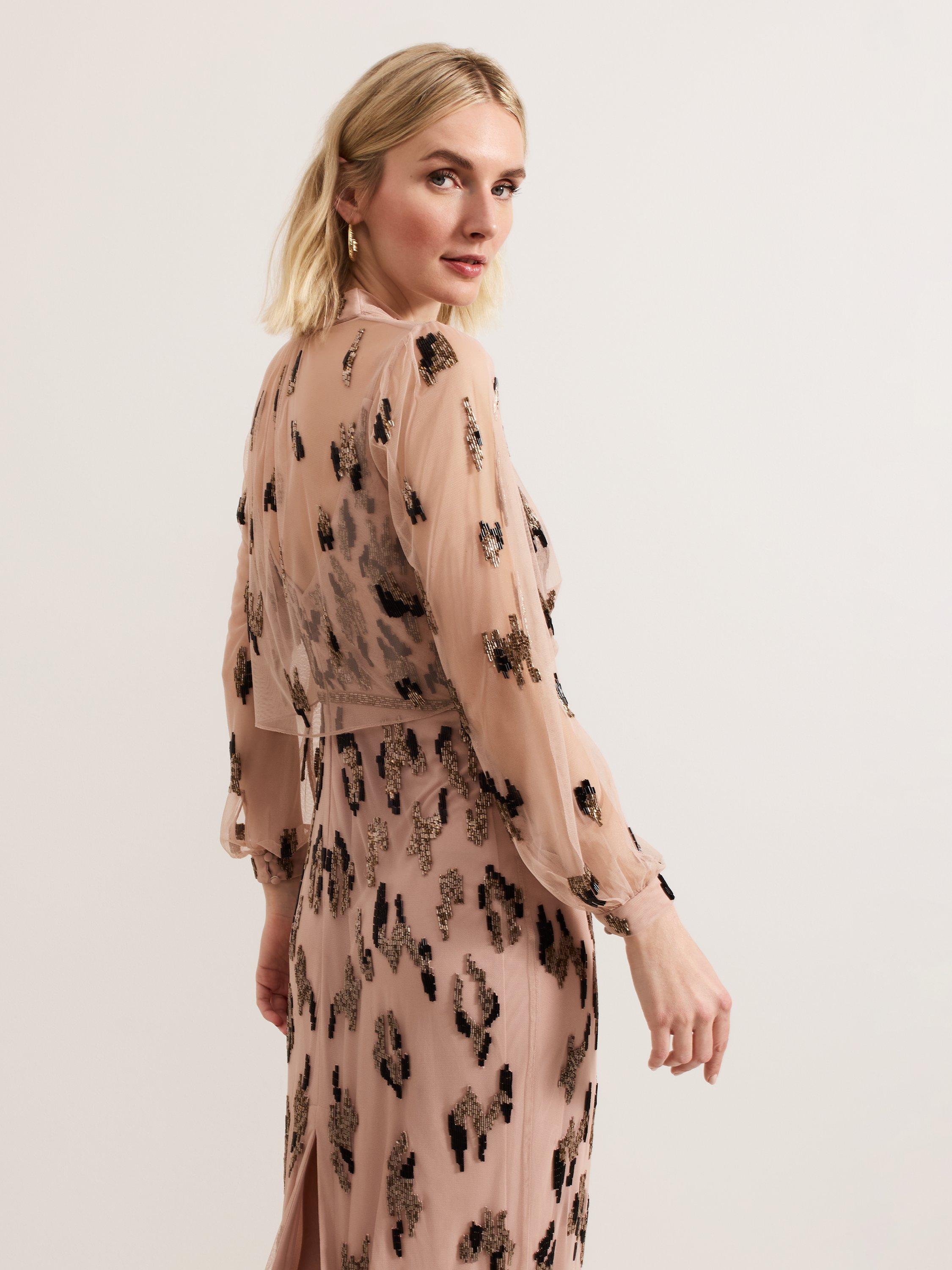 The Vienna cover-up is the perfect finishing touch for occasion styles. With beaded embellishment, this semi-sheer cover-up is designed in a cropped faux-wrap style to create beautiful draping.
