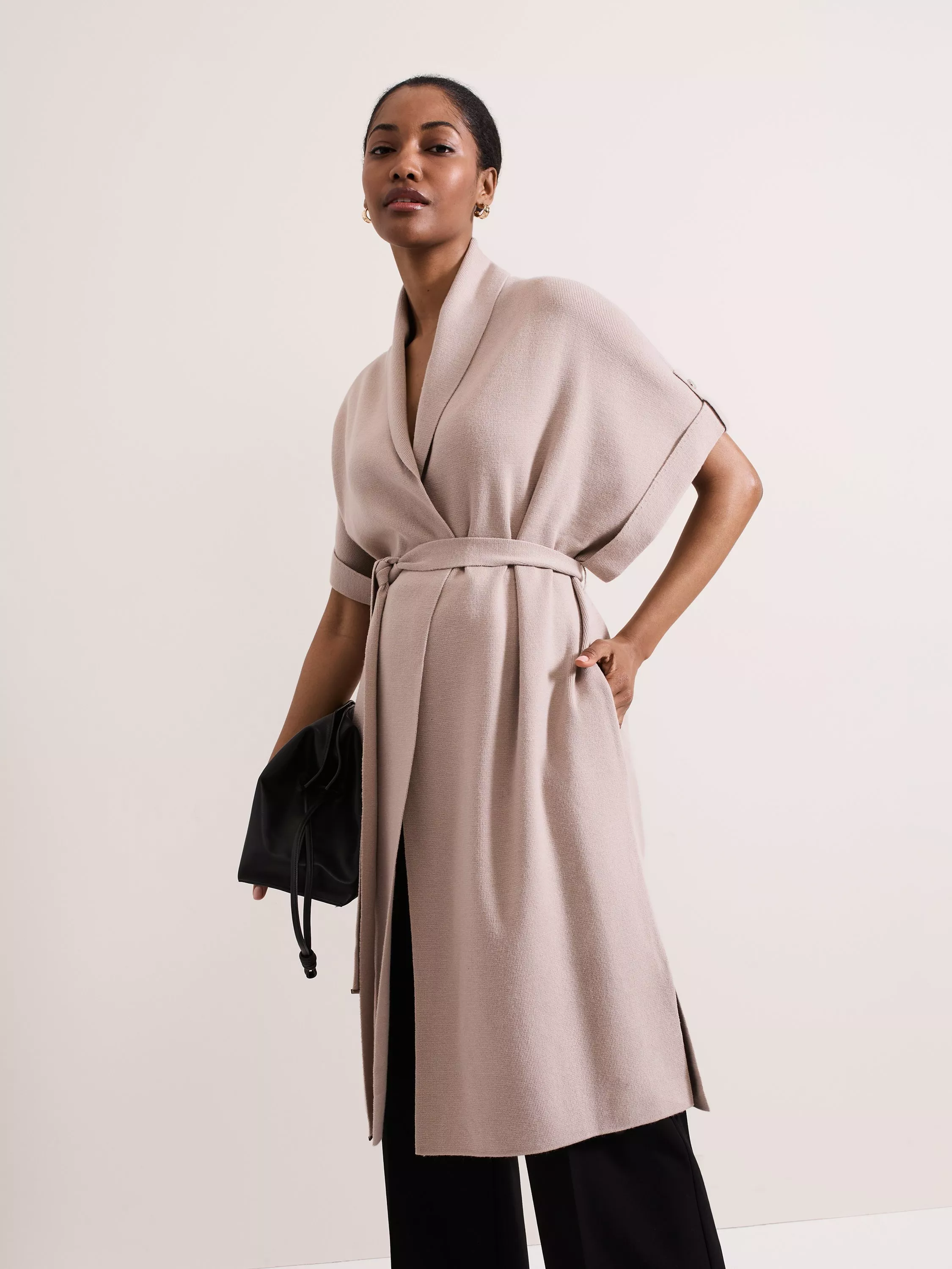 Meet your new soft layering essential. This longline Wendy gilet features a foldover collar, silver button detailing, and a tie waist to create a sophisticated style to take you from work-to-weekend.