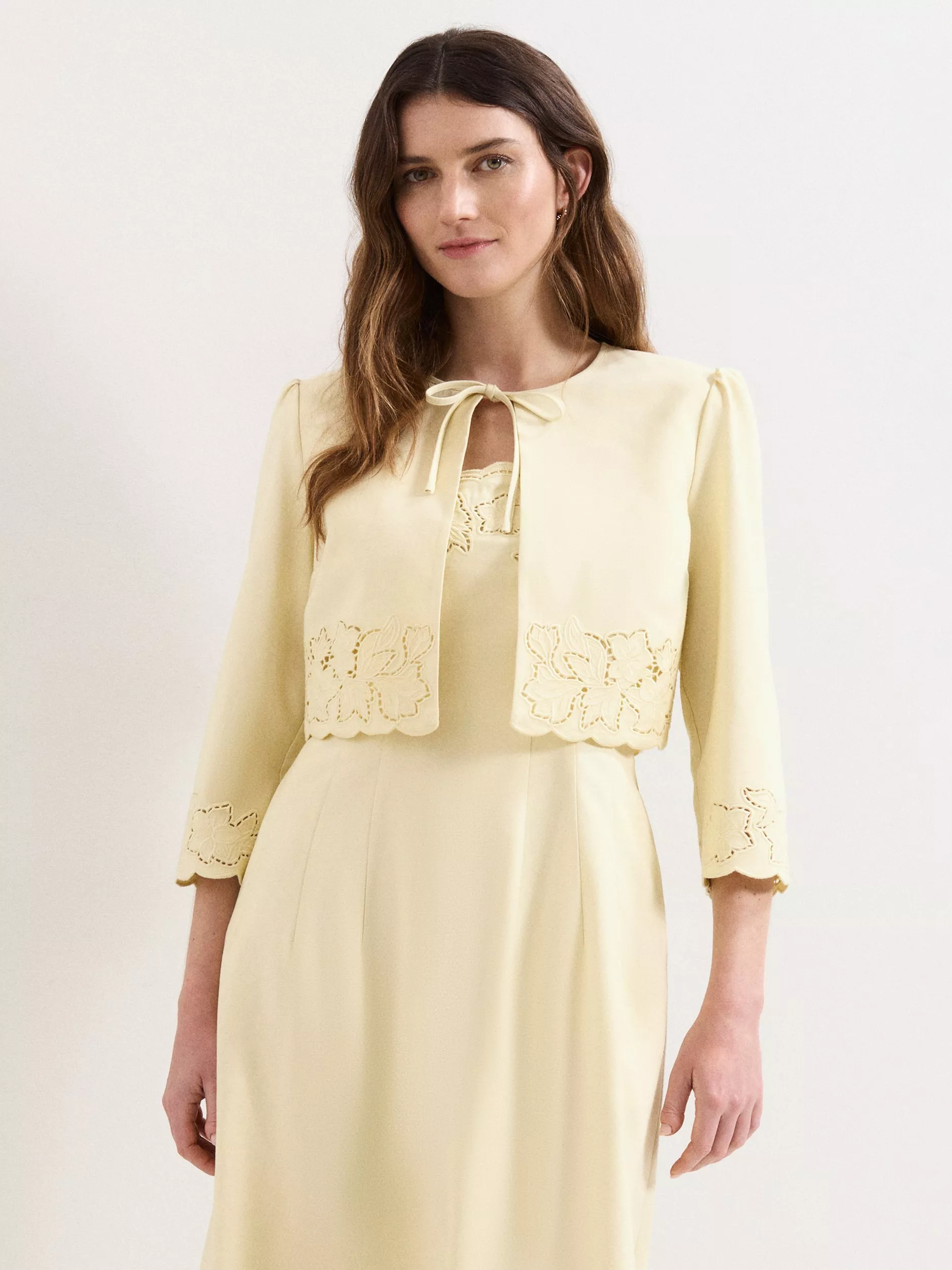 Phase EightWilda Tie Neck Embroidered Jacket, Pale Yellow