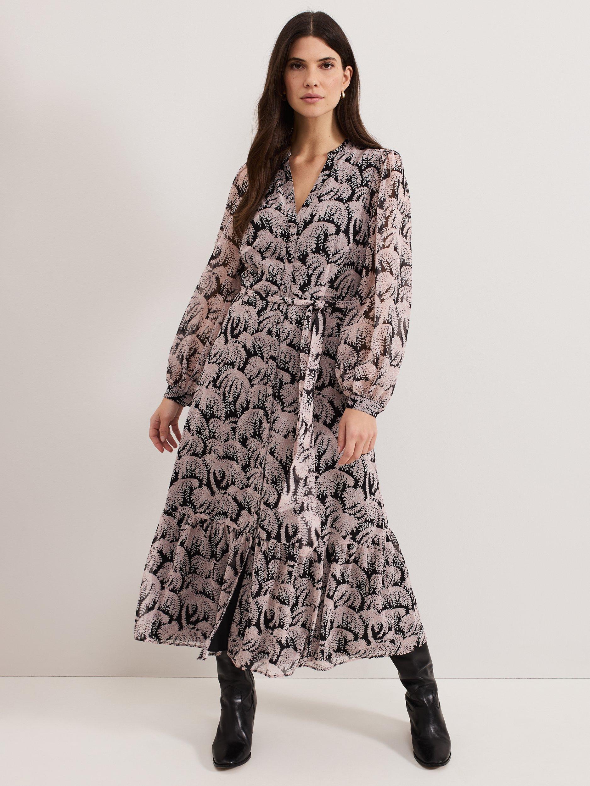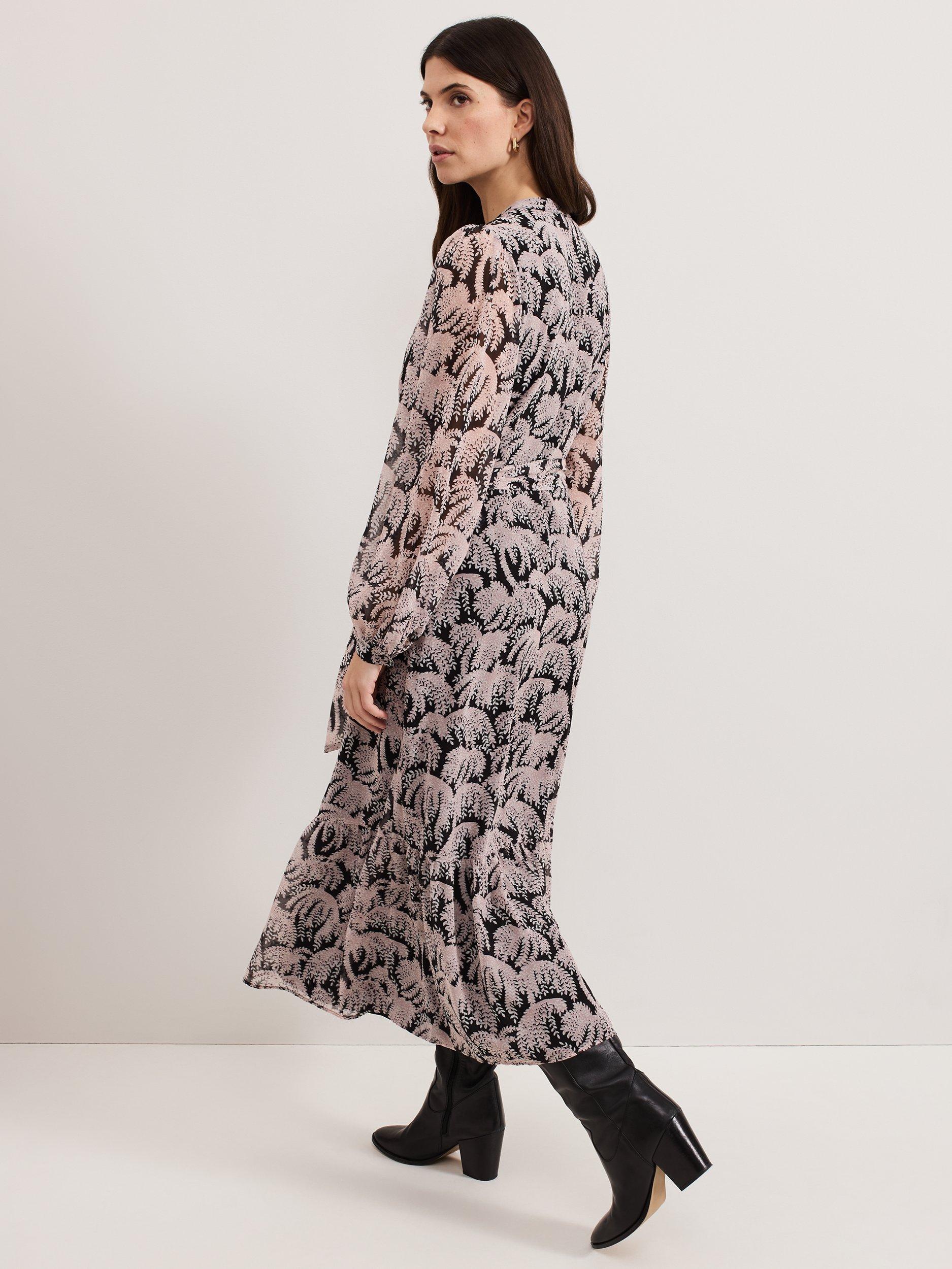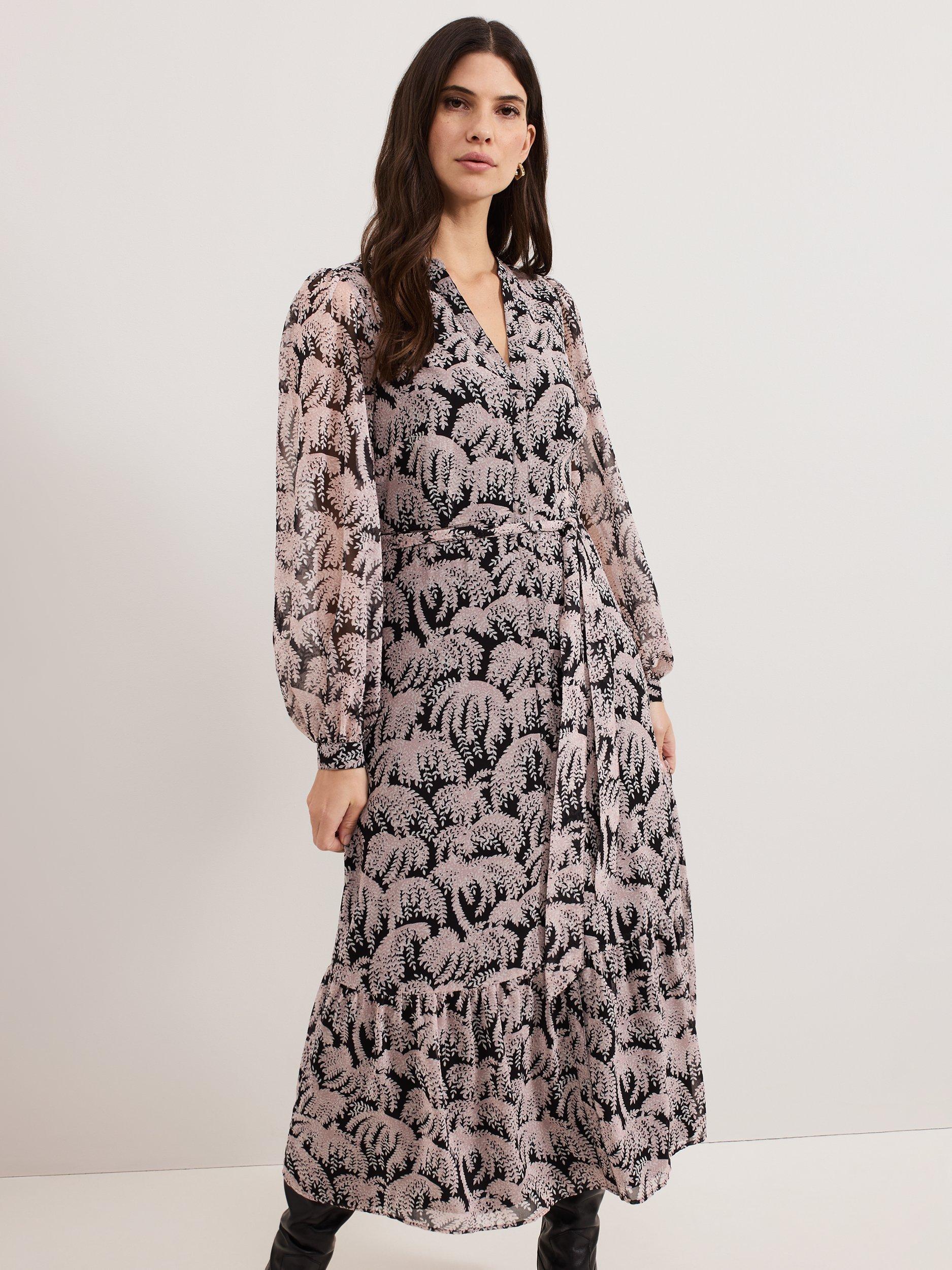 Contemporary and feminine, the Willow dress is perfect for work, drinks, and evenings out. In a beautiful trailing willow print, the shirt silhouette features cinched cuffs that create elegant blouson sleeves, flowing through to a tiered midi skirt for soft movement. We style ours with our favourite boots for an effortless look.