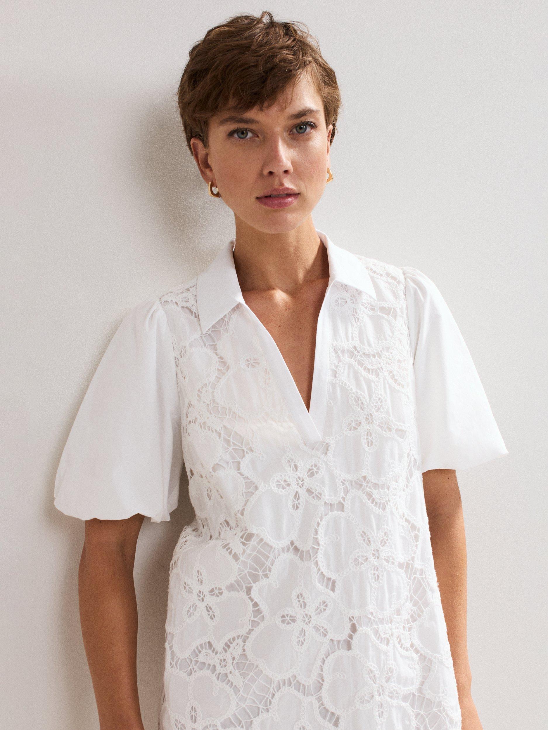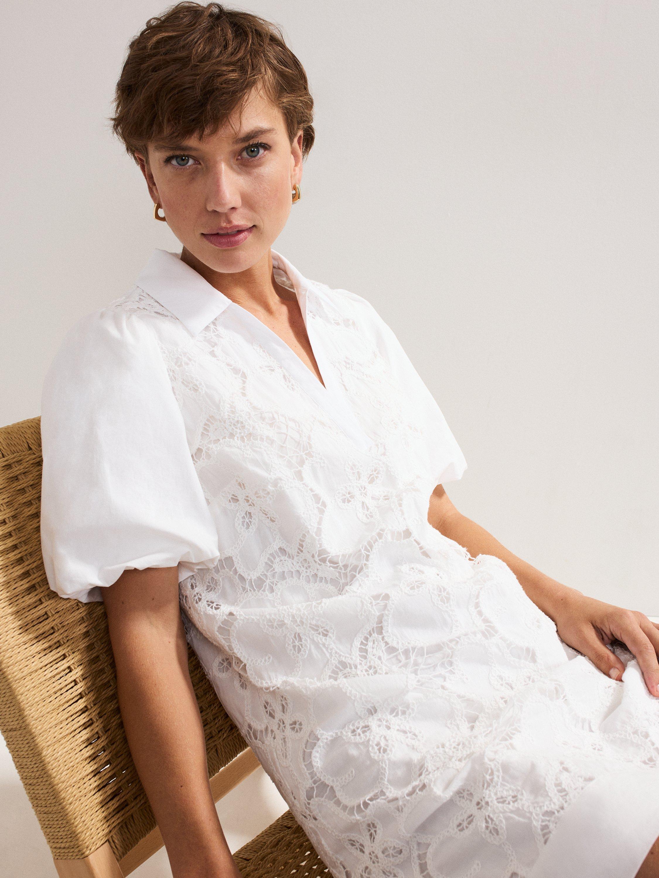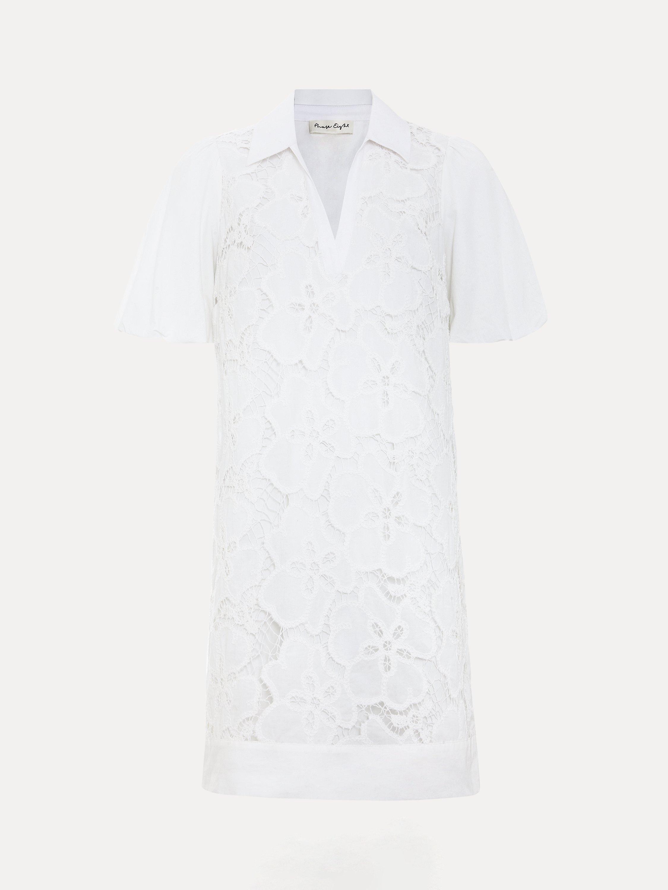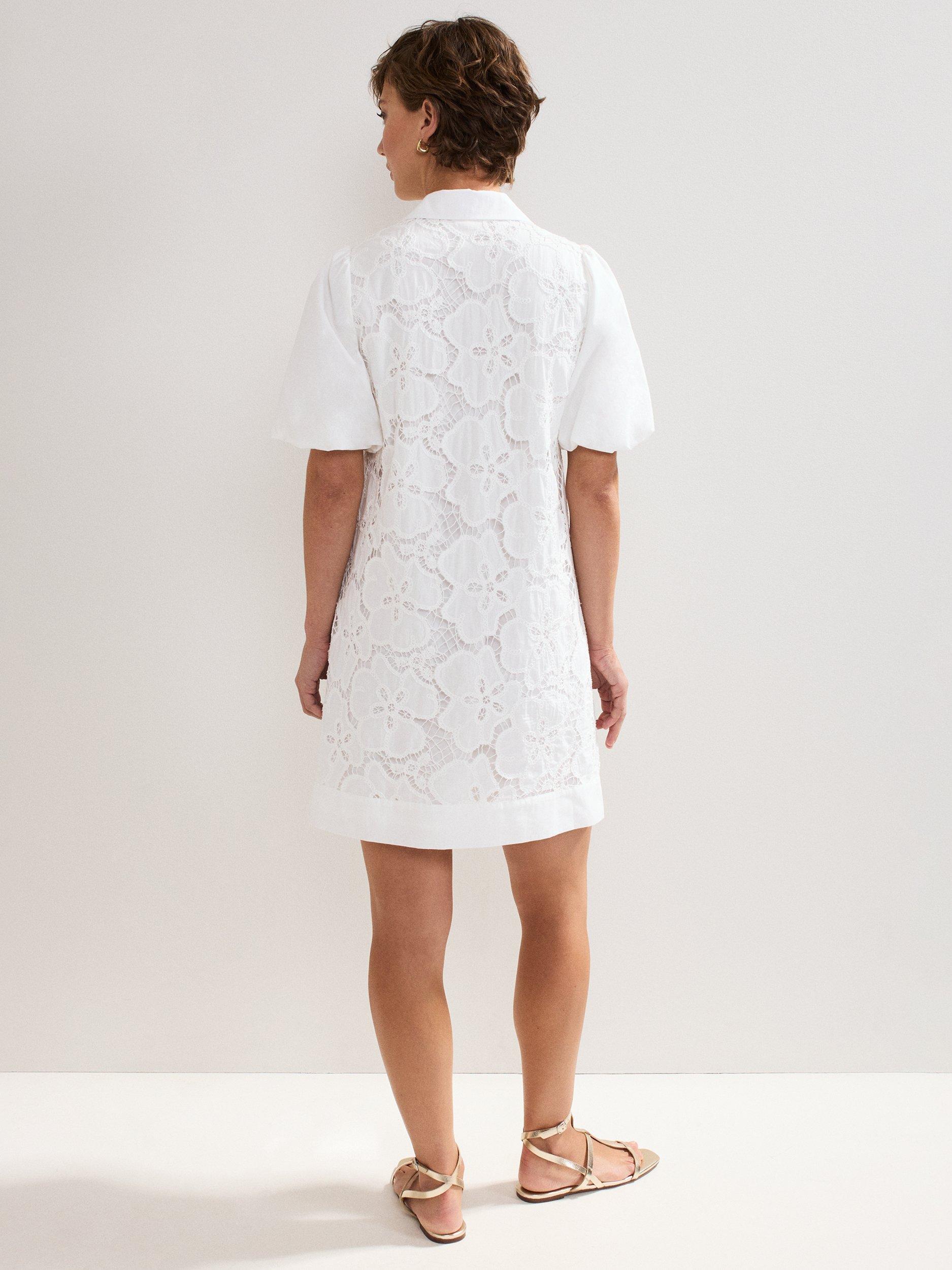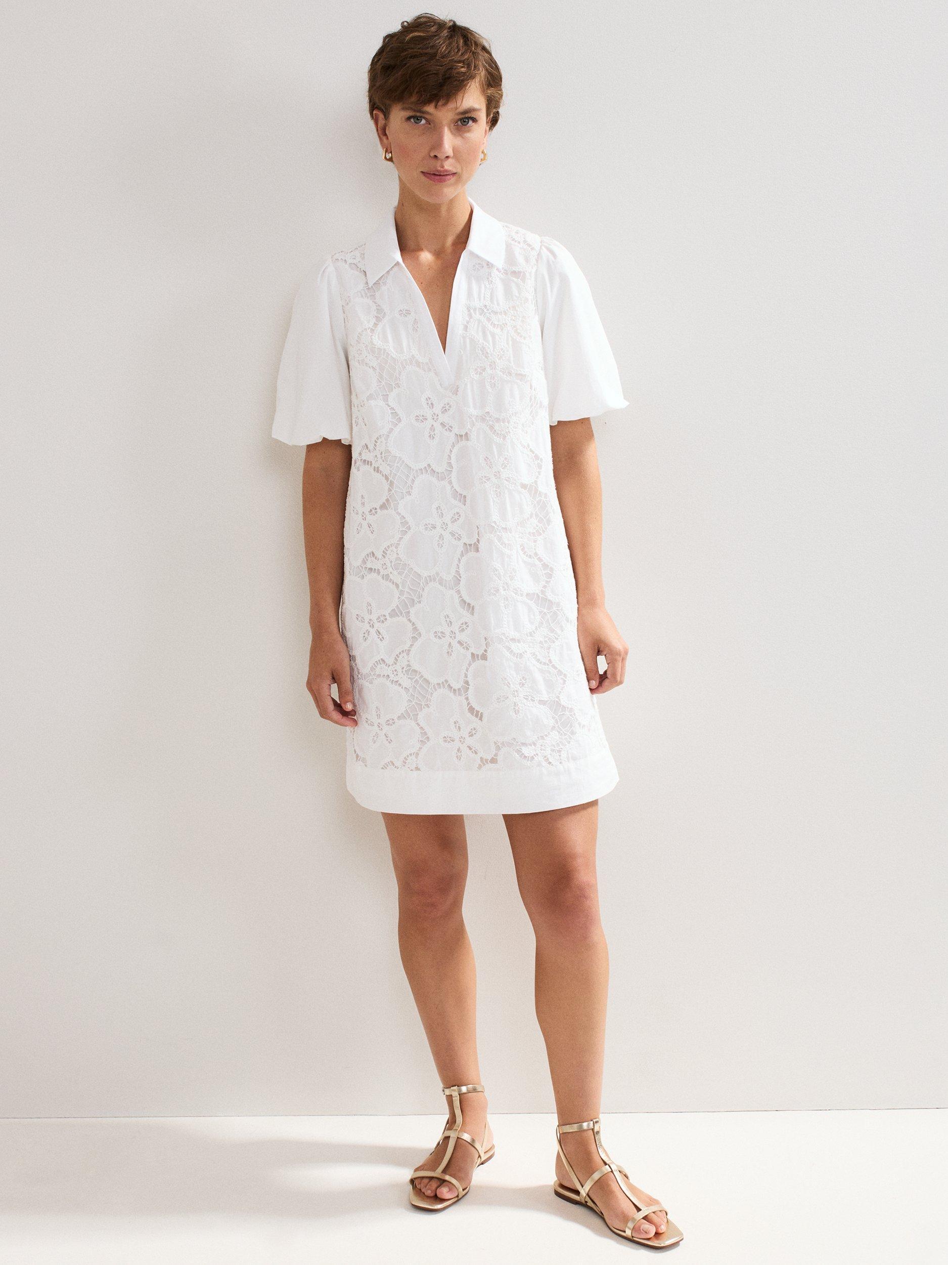The perfect summer dress. Crafted from 100% cotton for a lightweight feel, this mini dress features feminine puff sleeves to add subtle volume to the silhouette. Intricate embroidered detailing provides a contemporary, feminine edge, ideal for an everyday summer or holiday look.