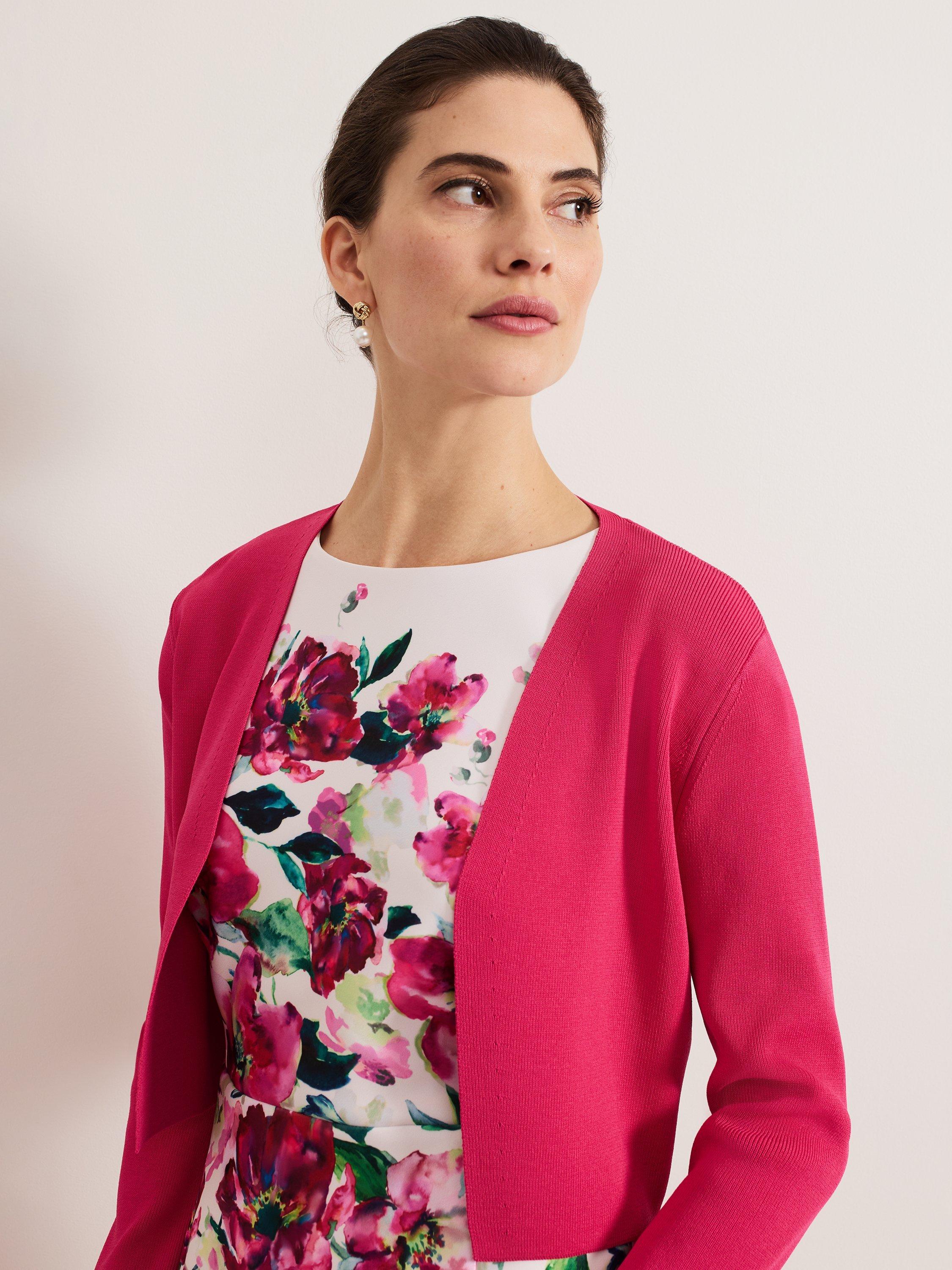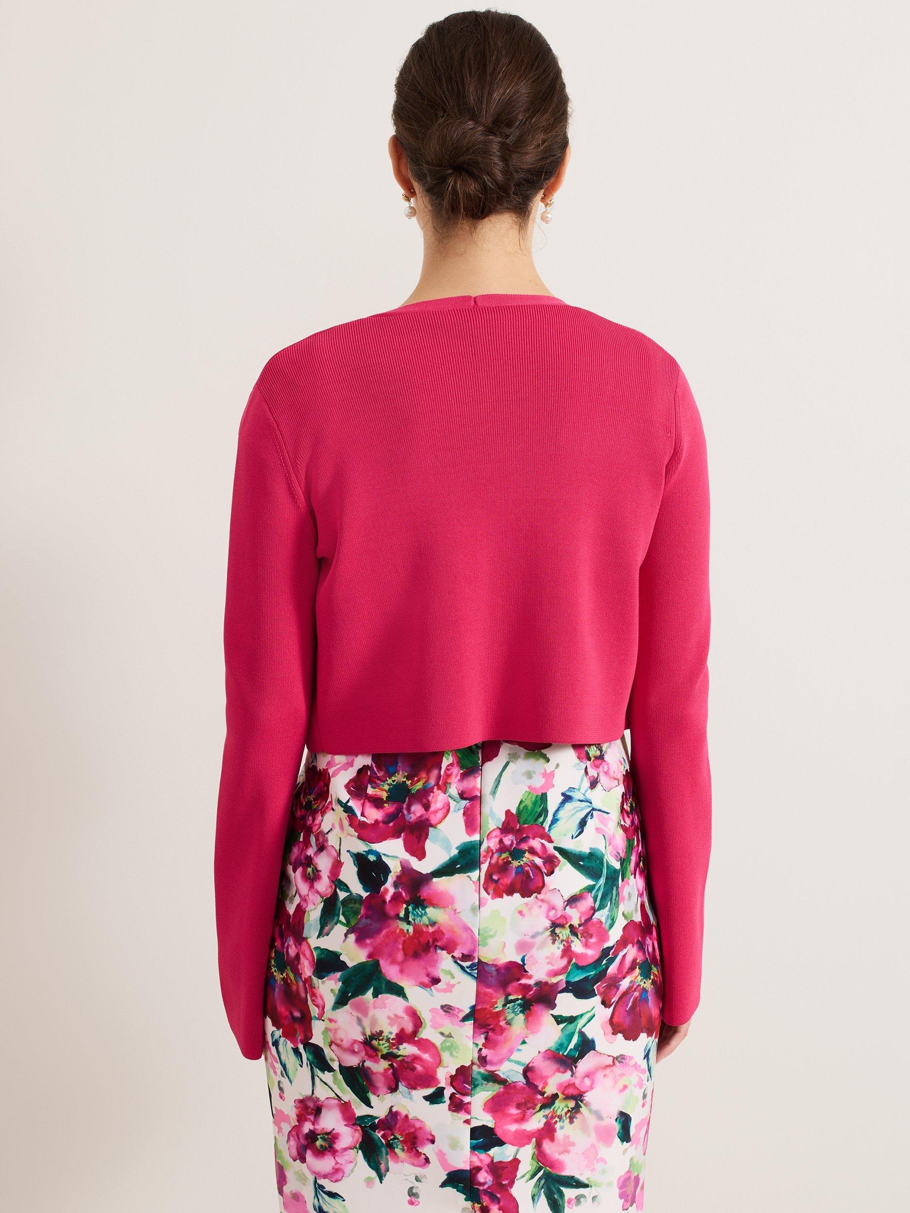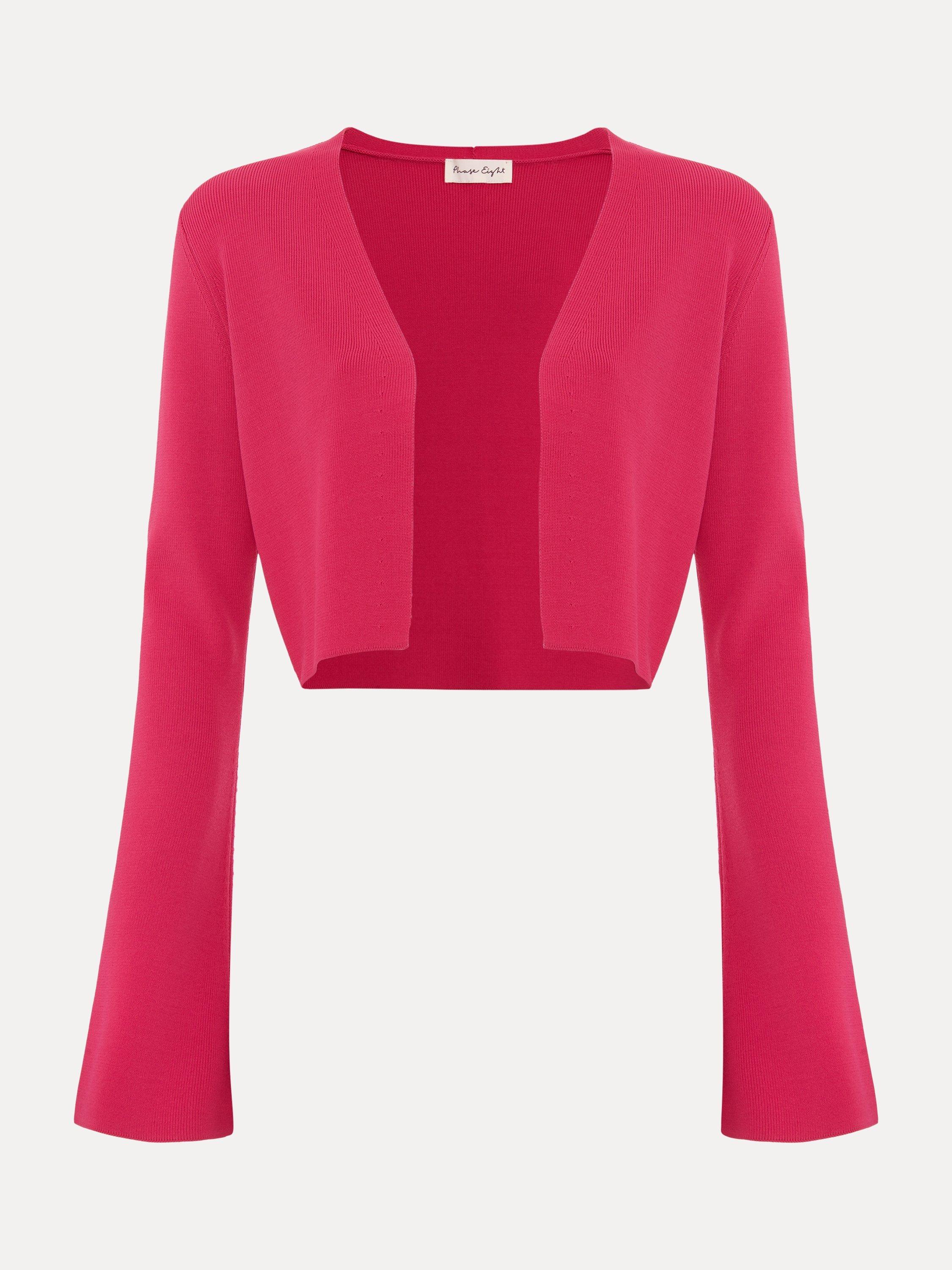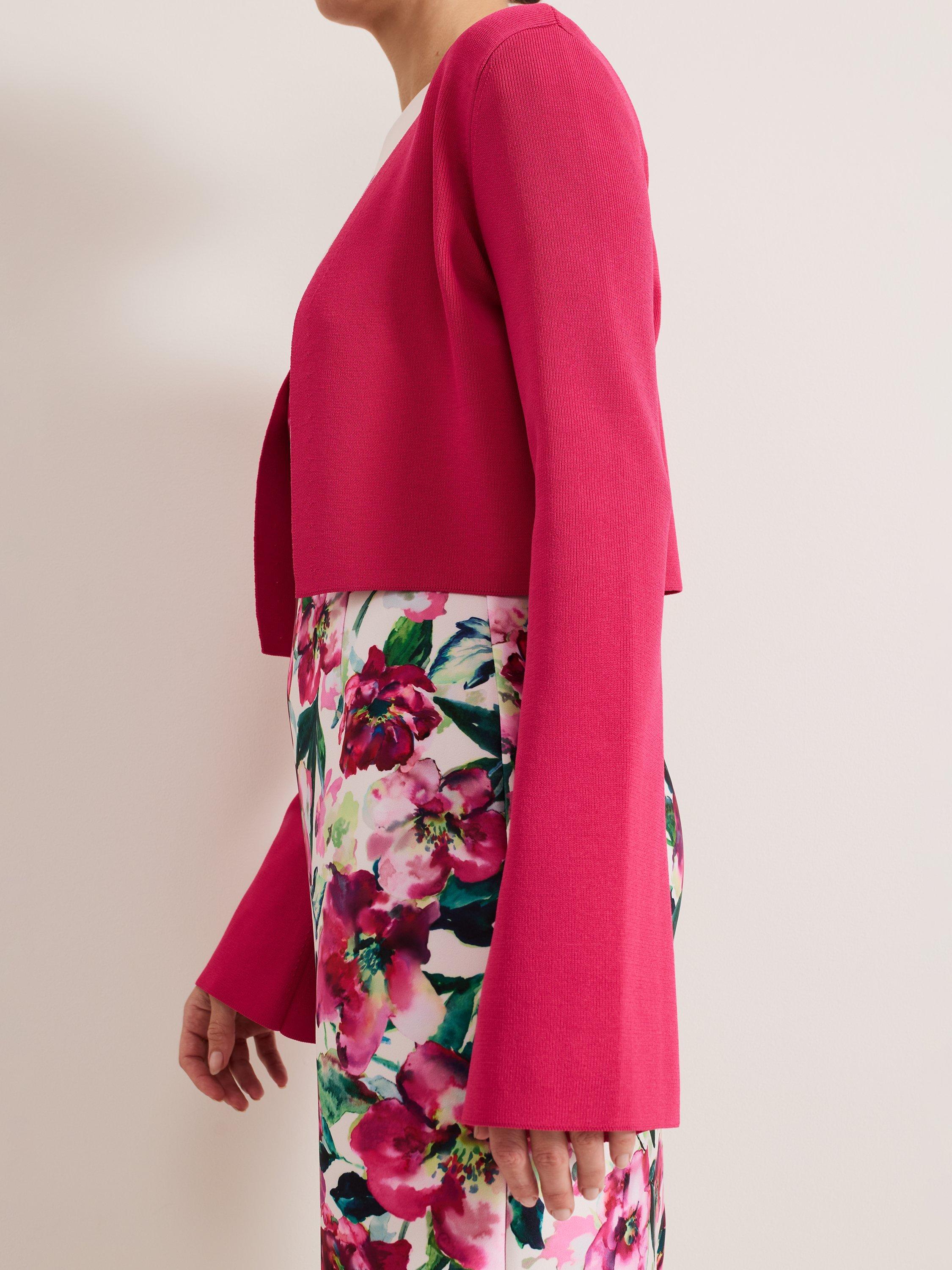 The Yasmin cardigan is a style that you can wear all year round. In a fine knit, this cropped cardigan is finished with fluted sleeves to create a feminine layering piece, perfect to pair over your favourite day and night styles.