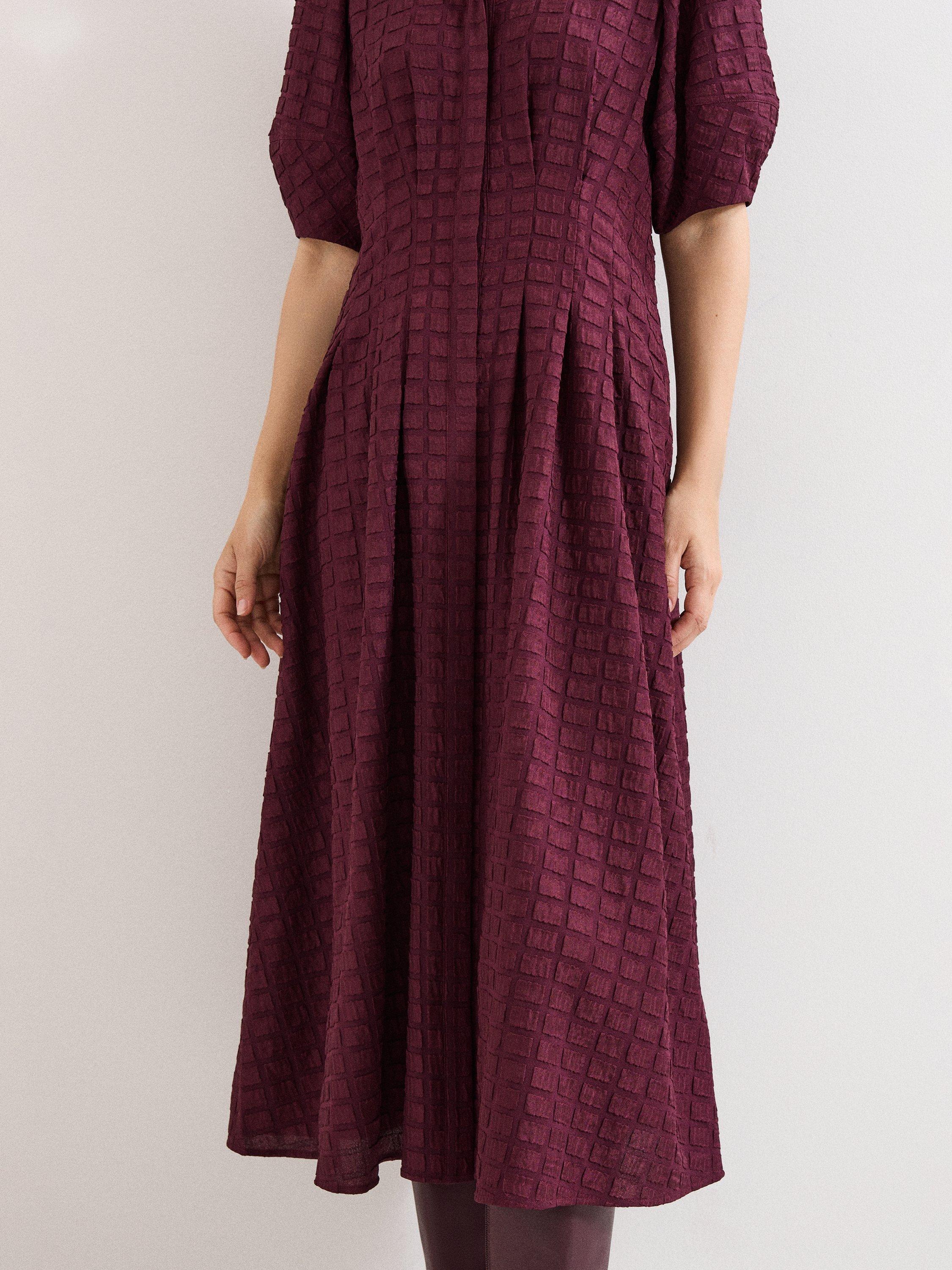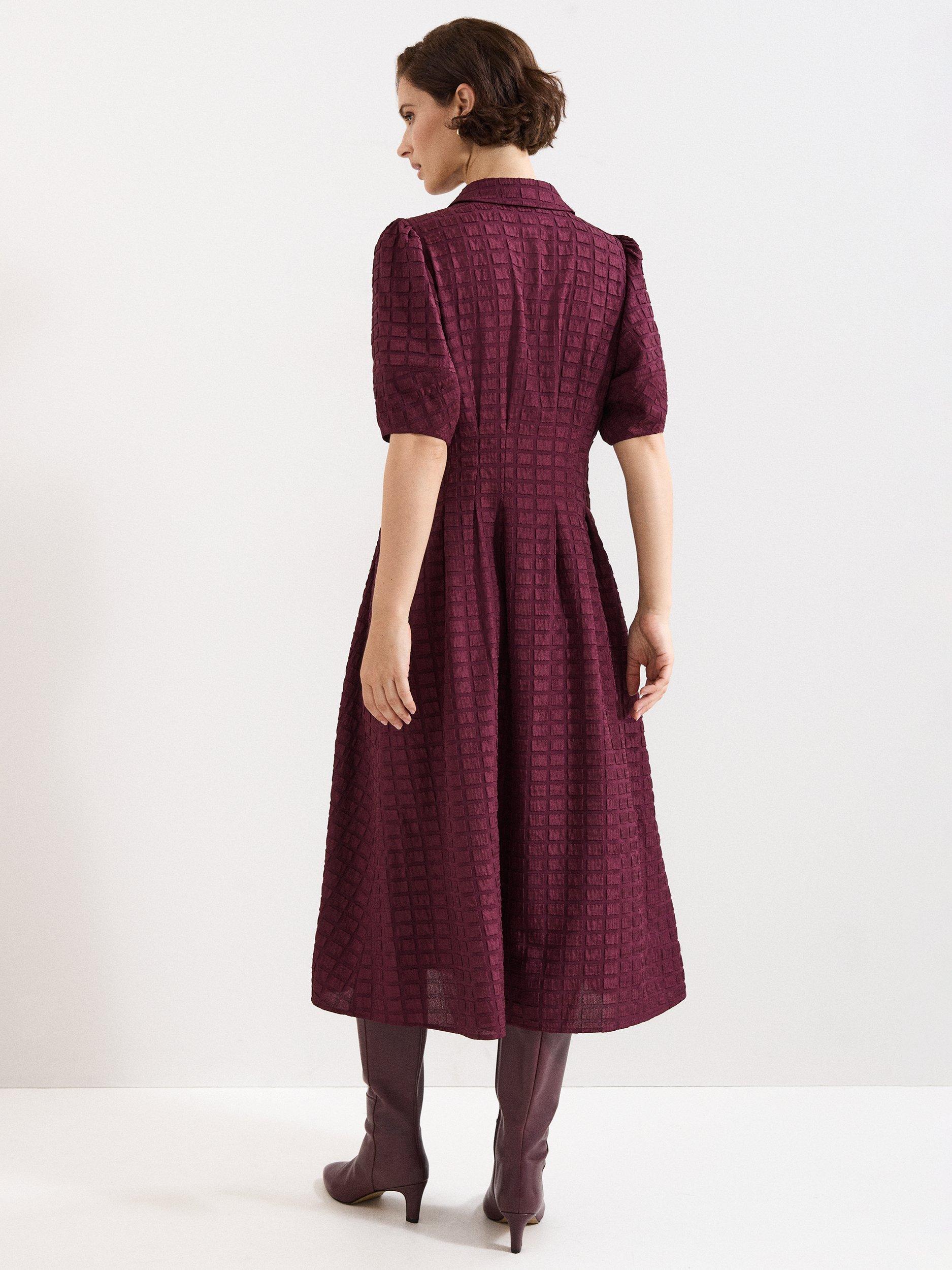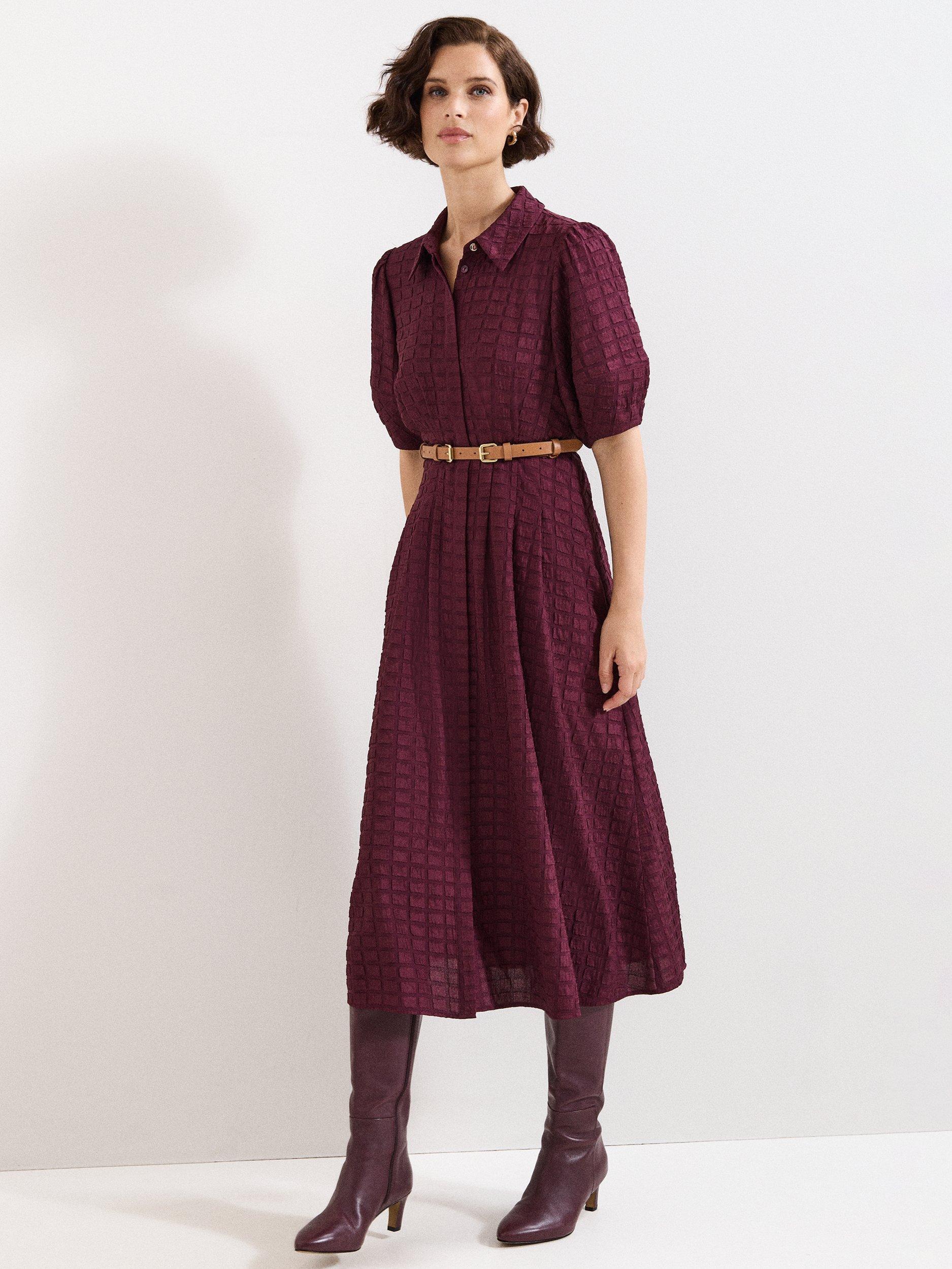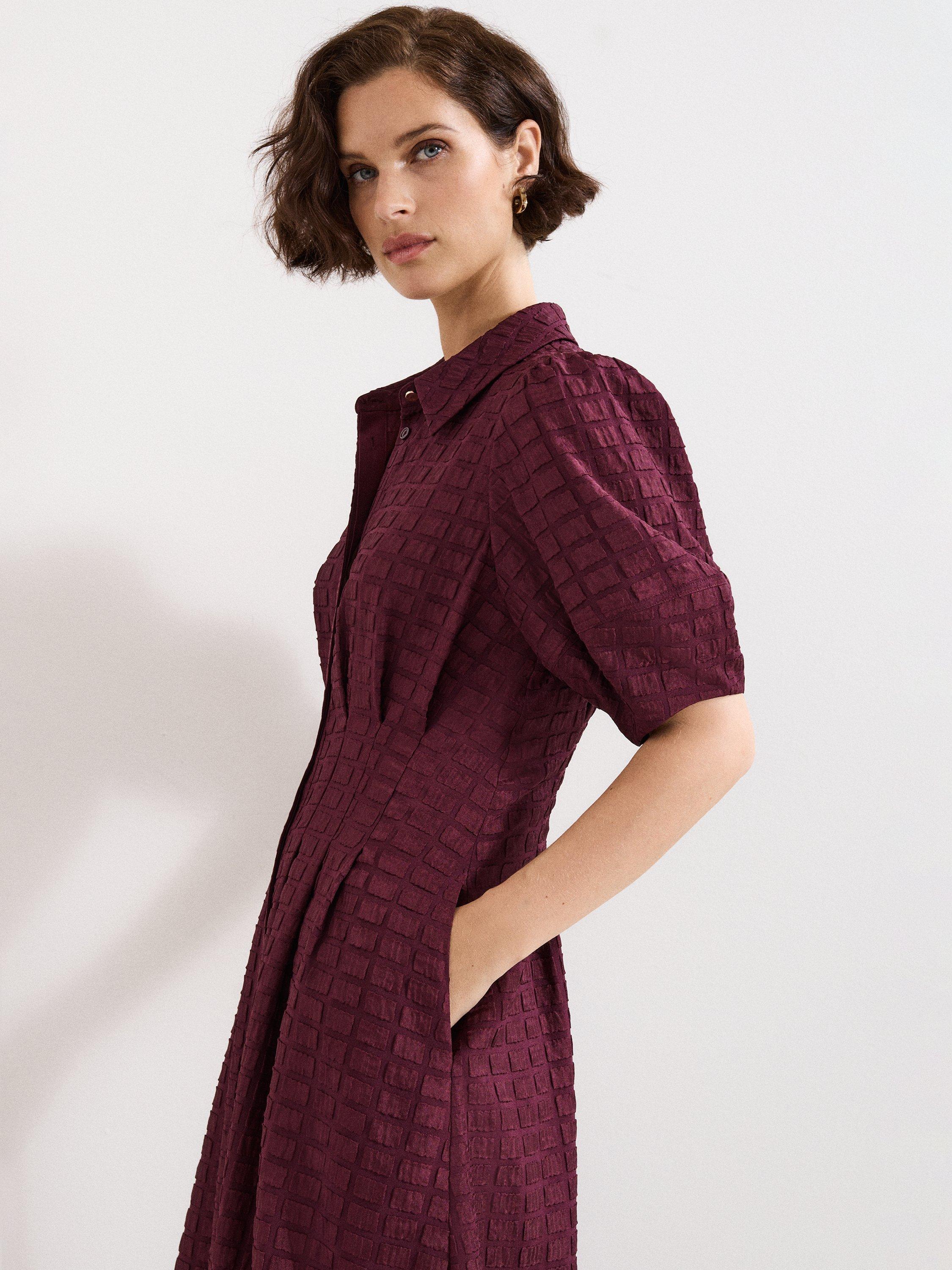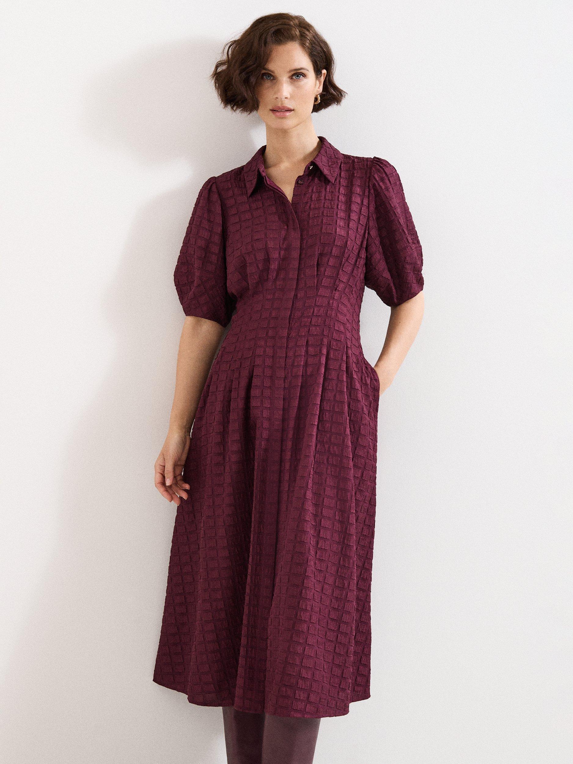 This midi shirt dress combines clever tailoring with an easy fit. Its textured design and puff sleeves invite interest, making you feel comfortable and noticed wherever your day takes you. Ideal for any occasion that calls for character.