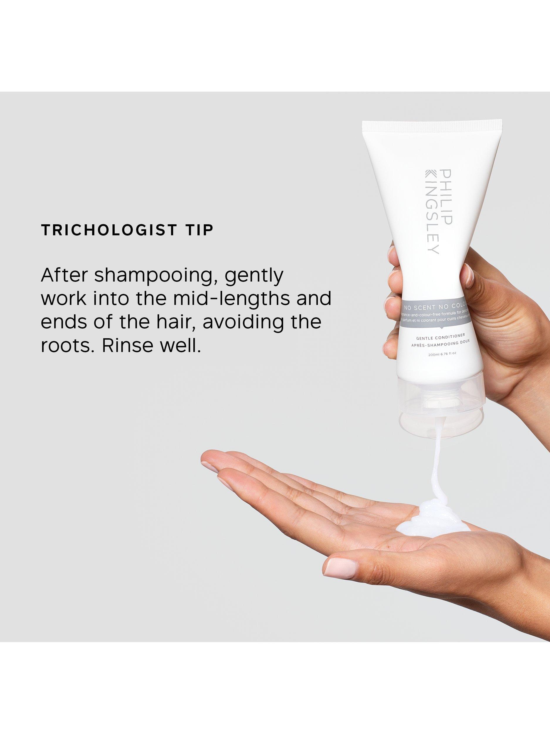 - After shampooing, gently work into mid-lengths and ends of hair. Rinse well and follow with the appropriate Philip Kingsley Scalp Toner.