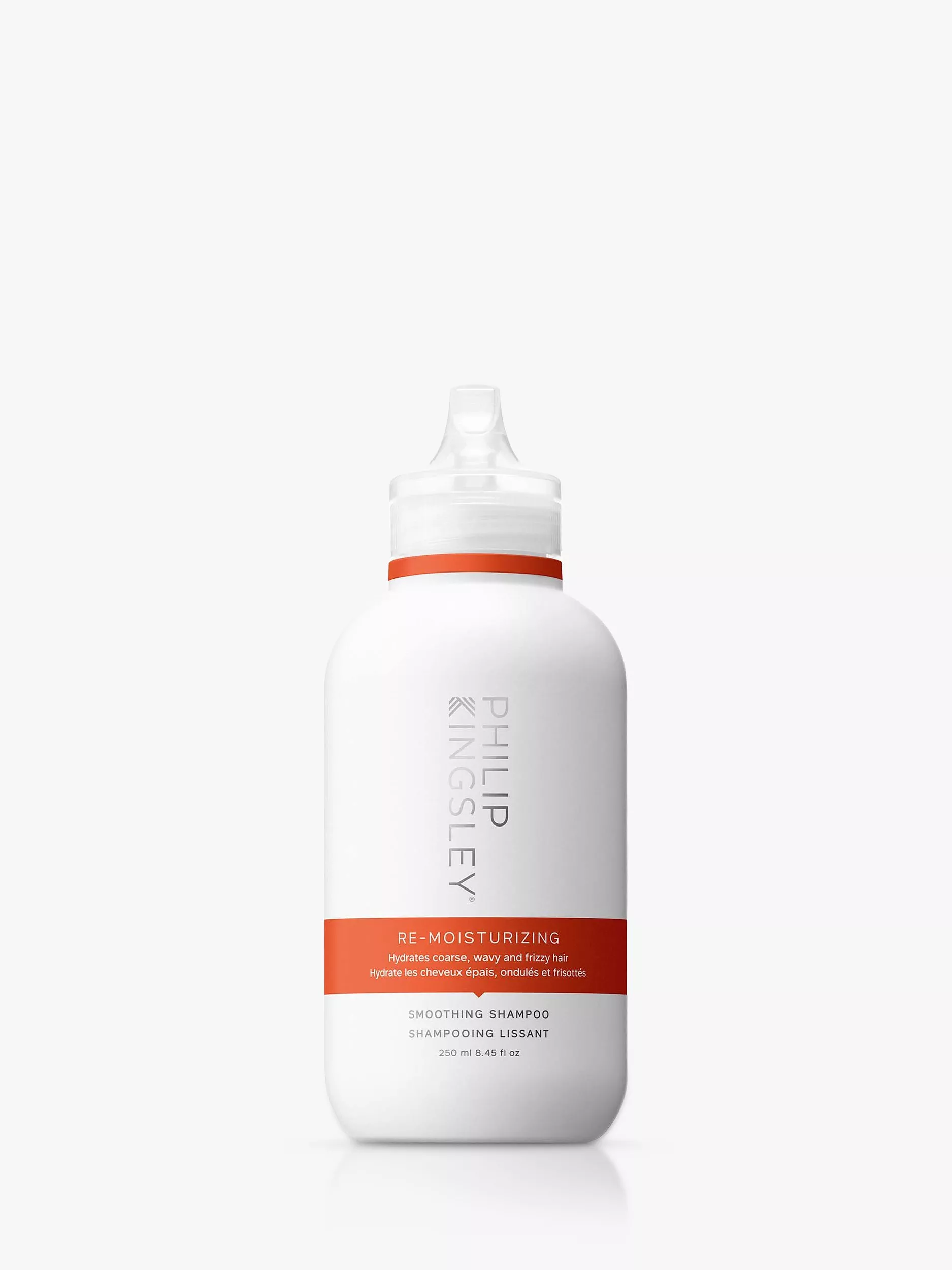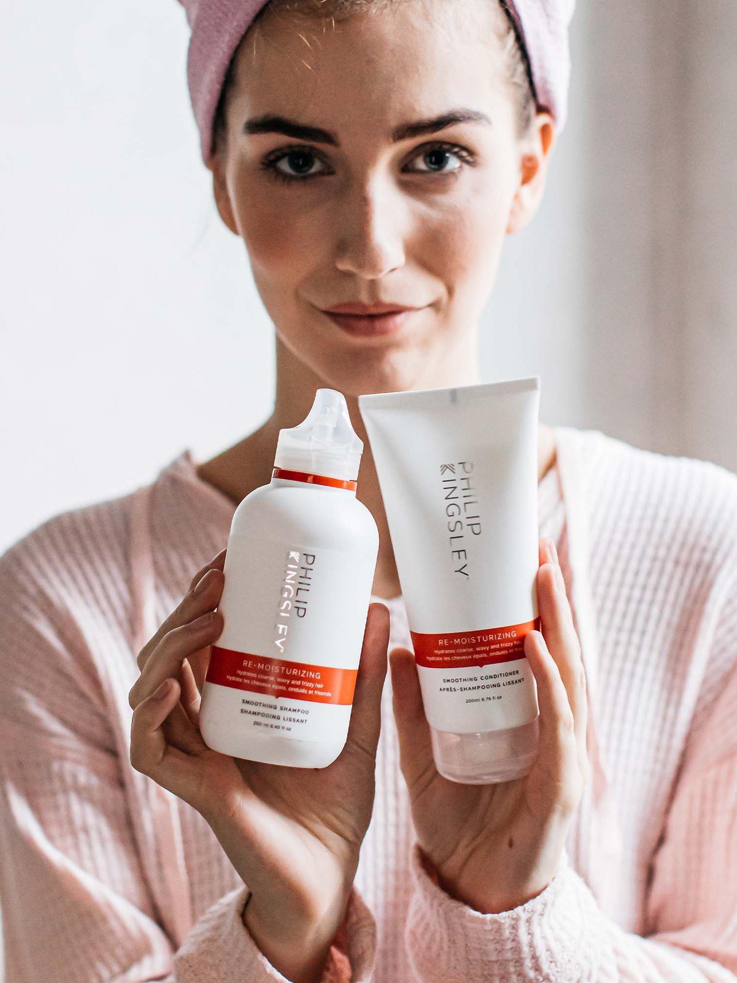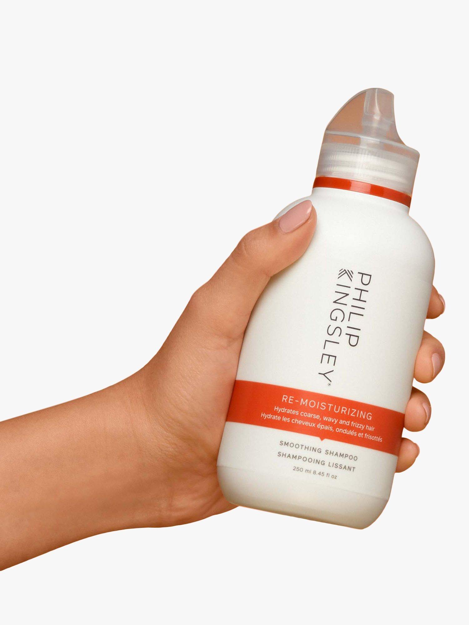 Re-Moisturising Shampoo cleanses while boosting your hair's hydration, to help control frizz and add weight to unruly strands.
