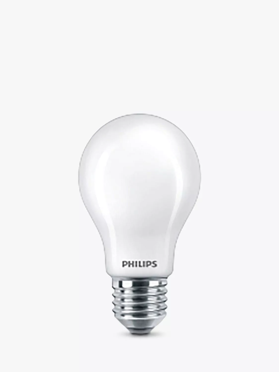 With a simple edison screw (ES) fitting, this classic LED light bulb from Philips offers a warm white glow of light. Its powerful 10.5W is fully dimmable and energy efficient.
