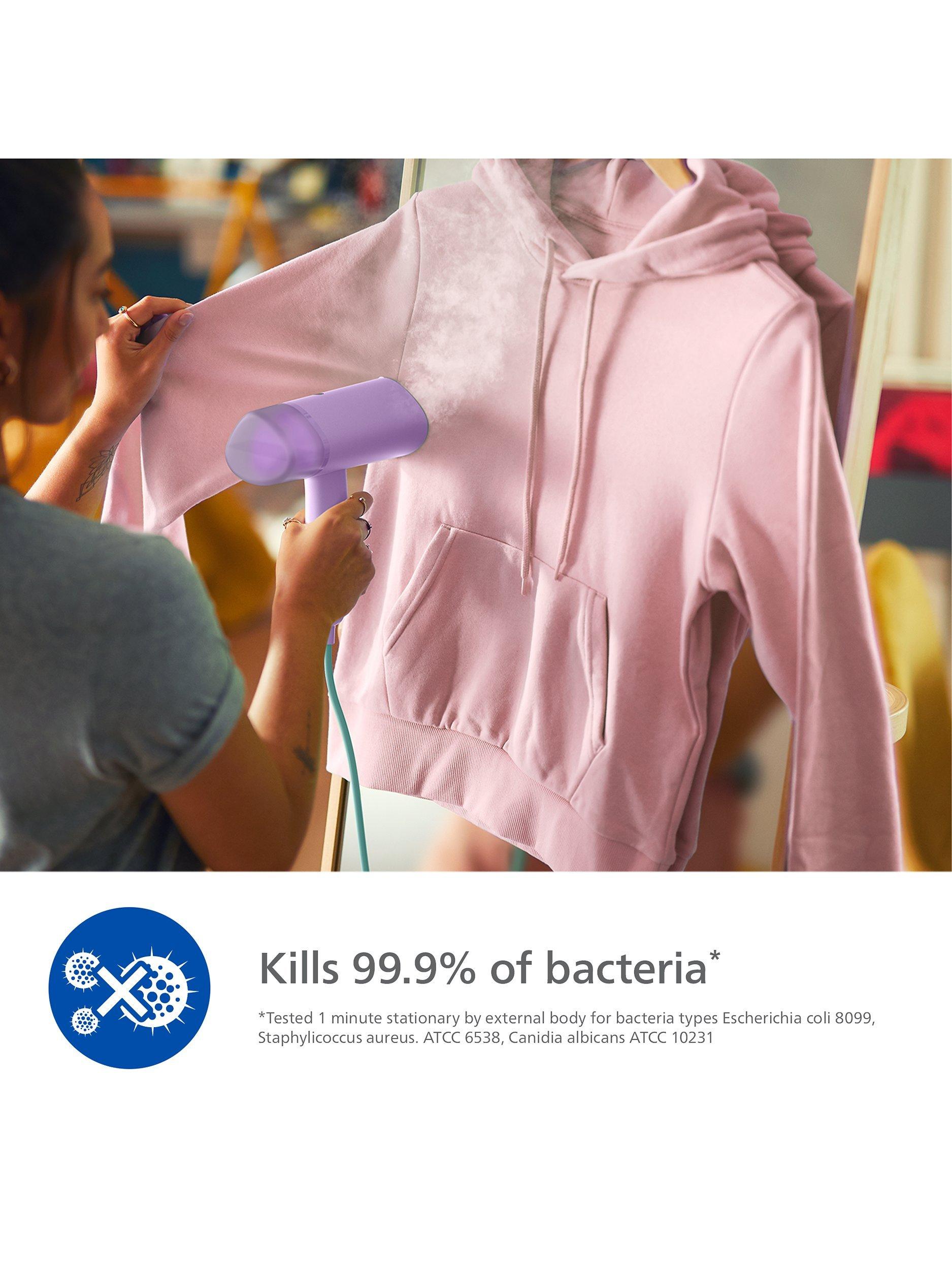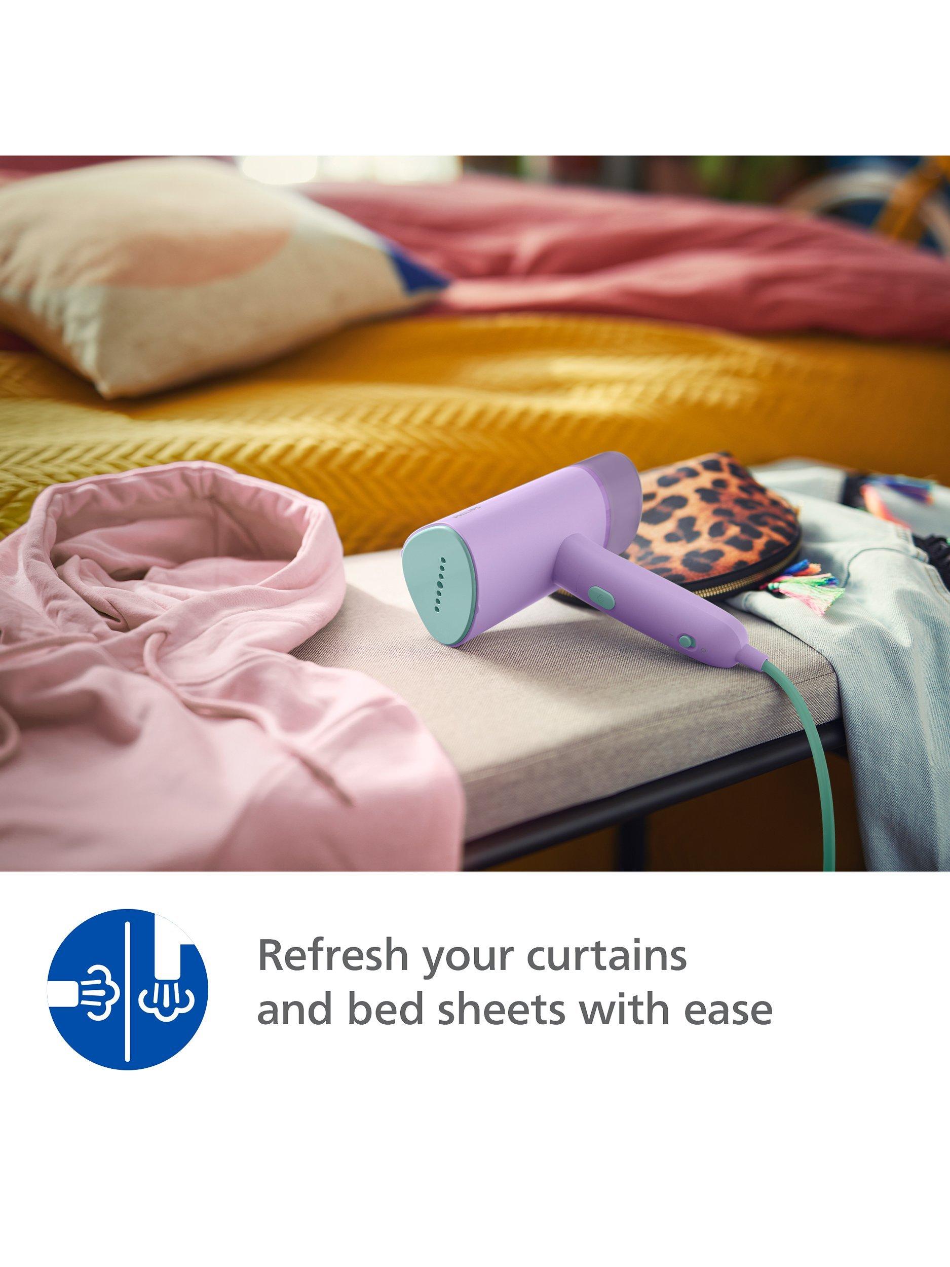 This handheld steamer kills 99.9% of bacteria*. You can even steam your curtains and bed sheets.