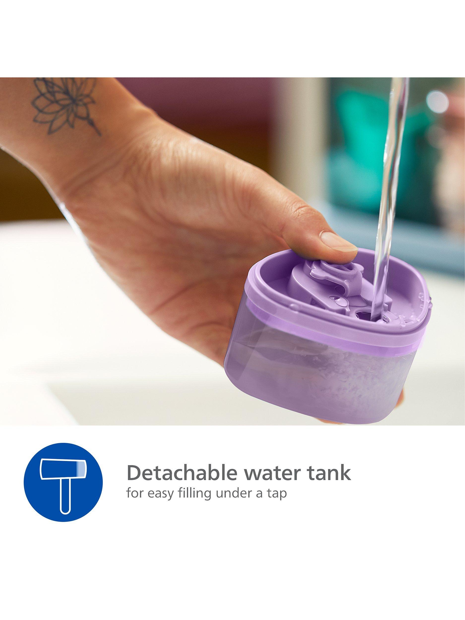 Handheld steamer 3000 Series comes with a 100 ml detachable water tank to steam up to a full outfit without the need to refill. You can easily detach the water tank of your steamer and refill it under the sink.