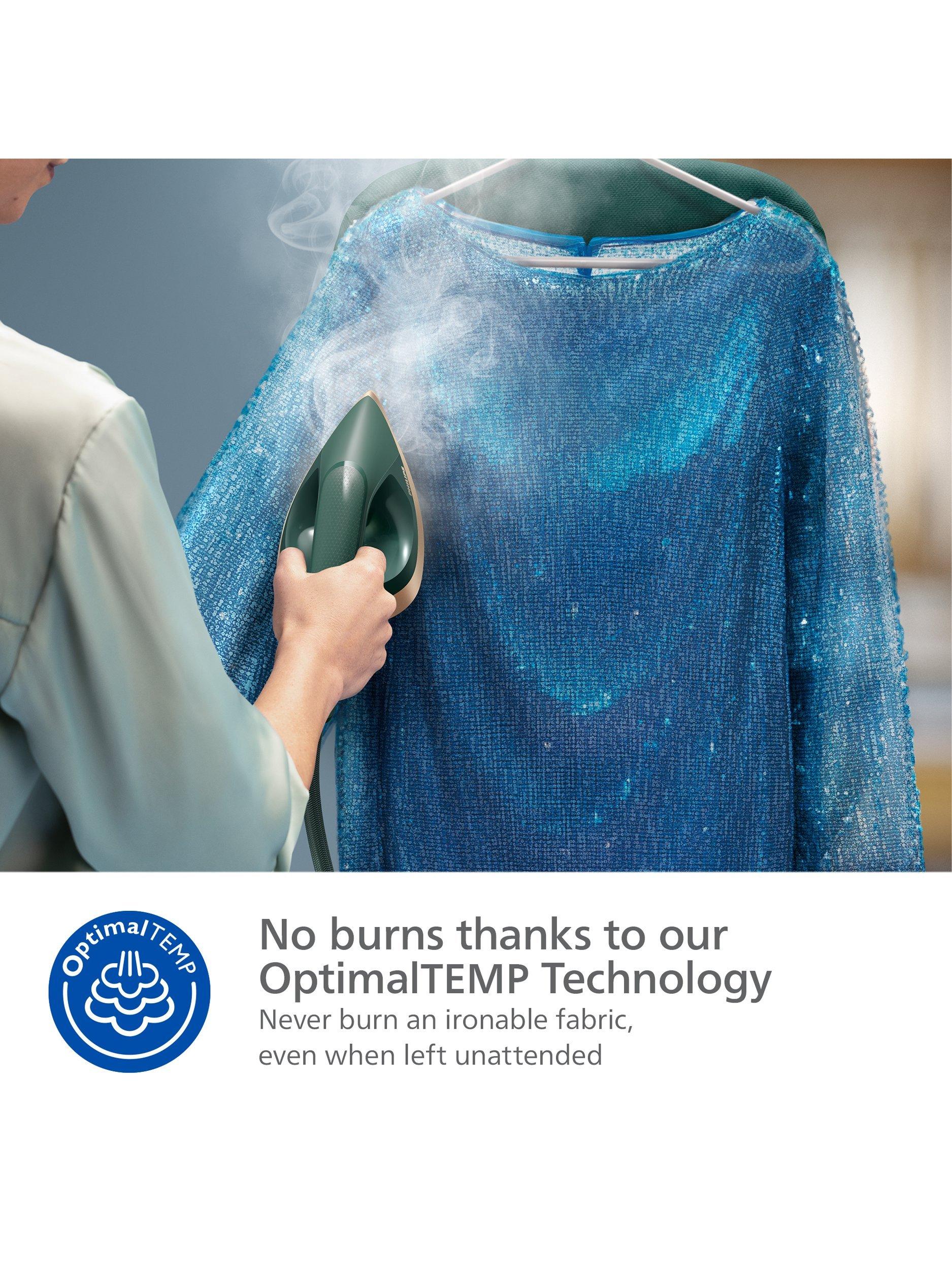 No burns guaranteed - OptimalTEMP technology prevents burns on ironable fabrics, so you can iron everything from jeans to silk without any problems.