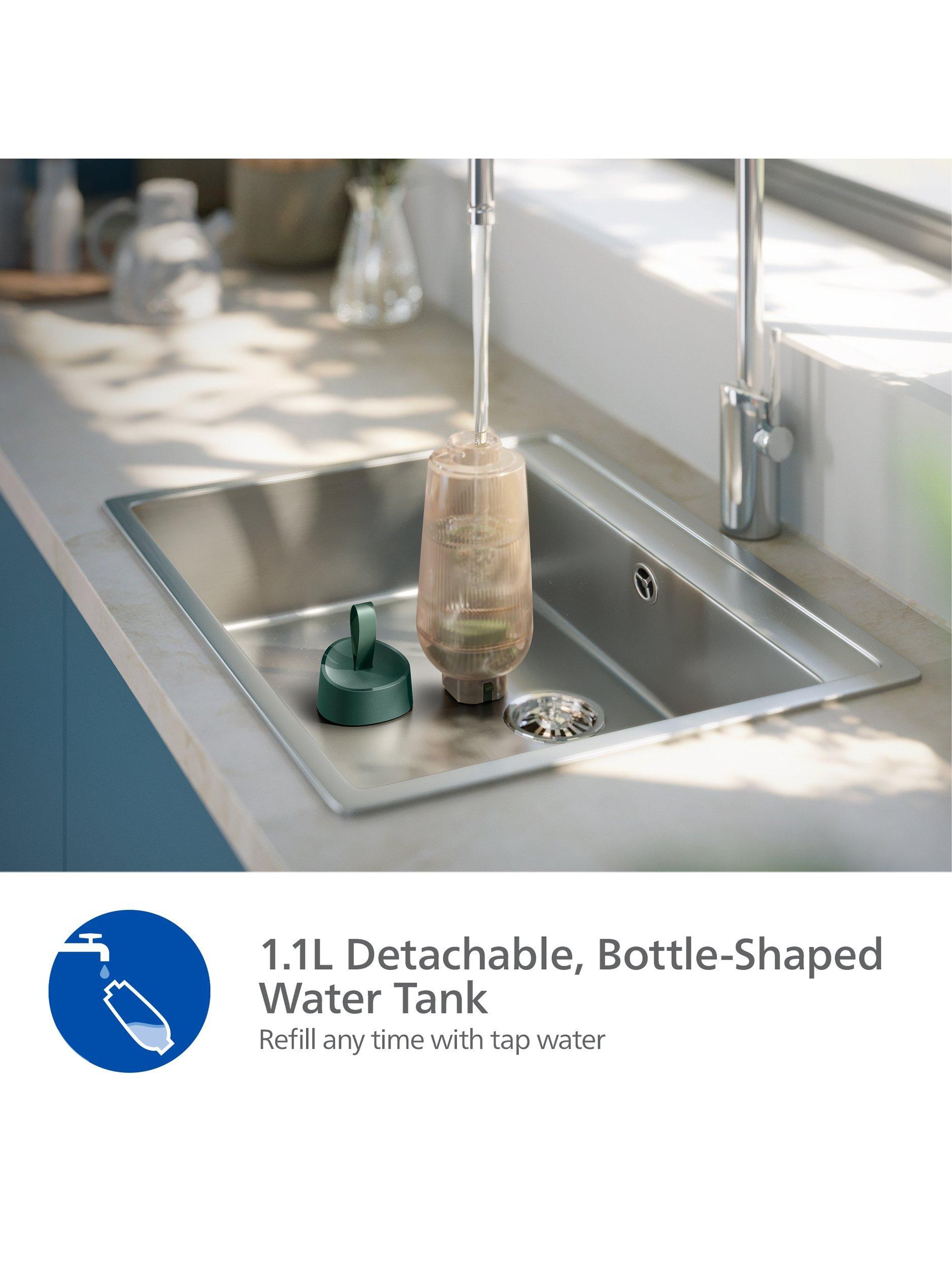 User-friendly base - The user-friendly base includes two practical foot operated buttons to conveniently switch your device on/off and activate decalc mode; and a bottle shaped detachable 1.1L water tank.