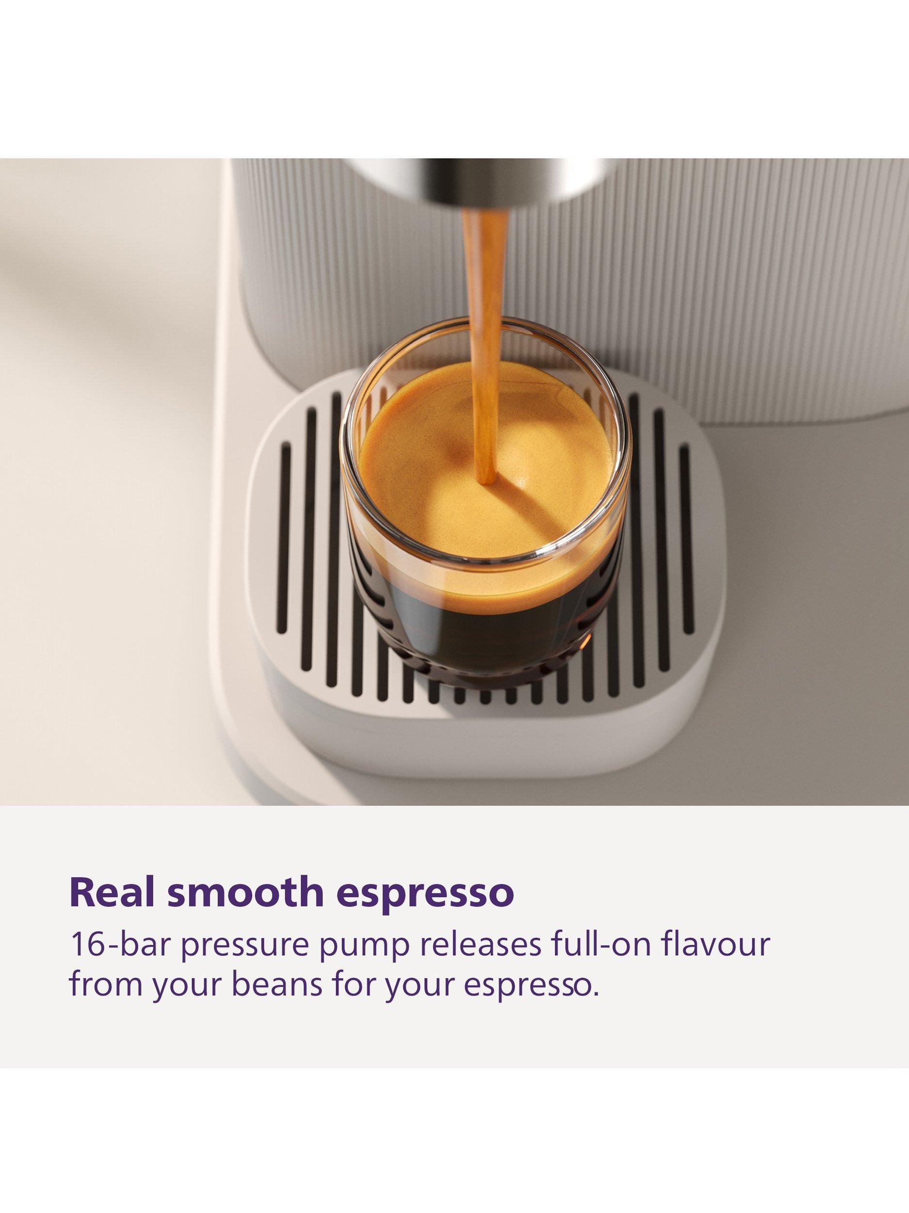 The 16-bar pressure pump releases full-on flavor from your beans for your espresso, creating a rich, creamy crema and a balanced flavor we all love.