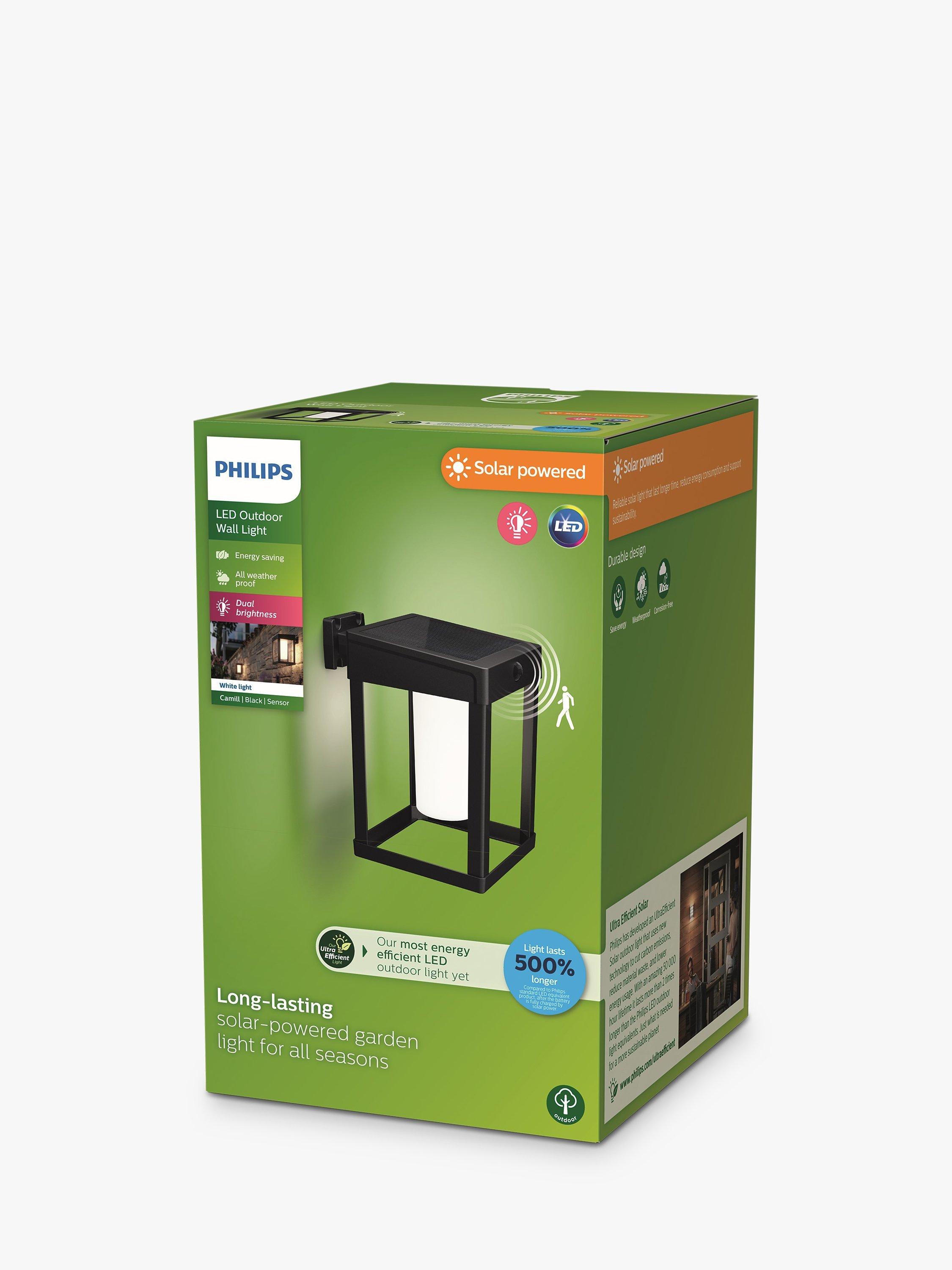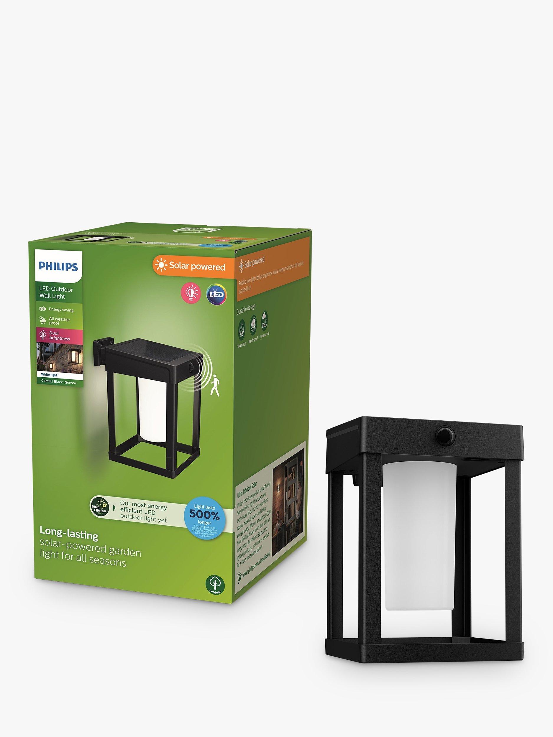 Choose a heritage look with the Philips Camill LED outdoor wall light. Its diffused, bright, long lasting light is ideal for lighting up a front entrance-way.