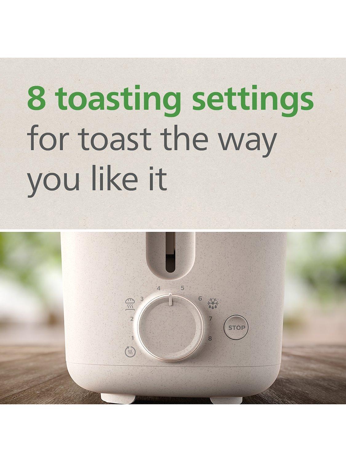 Make your toast exactly how you like it every morning, with elegant style and impeccable performance. Designed with 100% Bio-based plastics*, to reduce its CO2 footprint by 14%**, for a small step to a greener future.