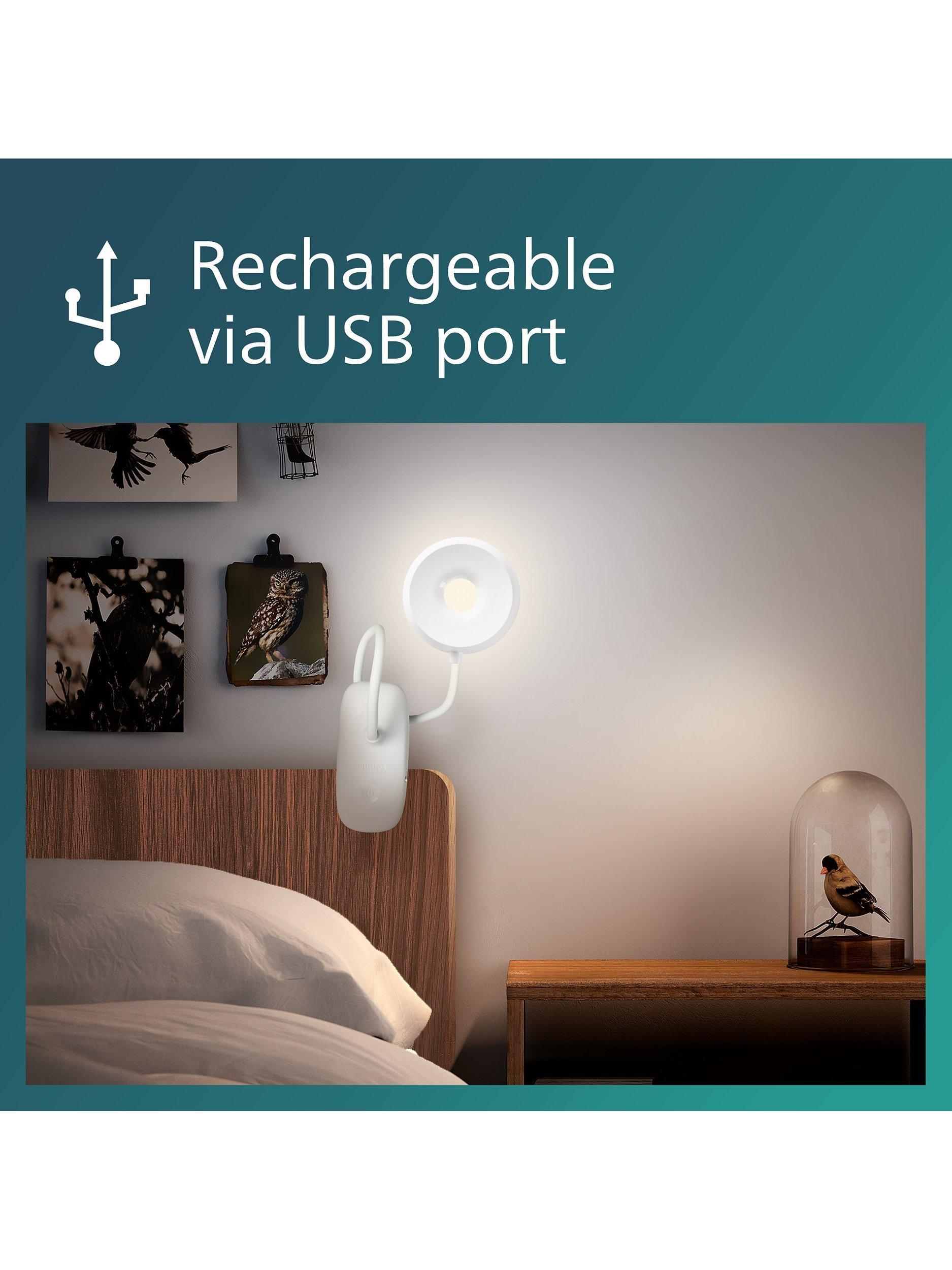 A clip reading light with integrated li-battery for convenience.
