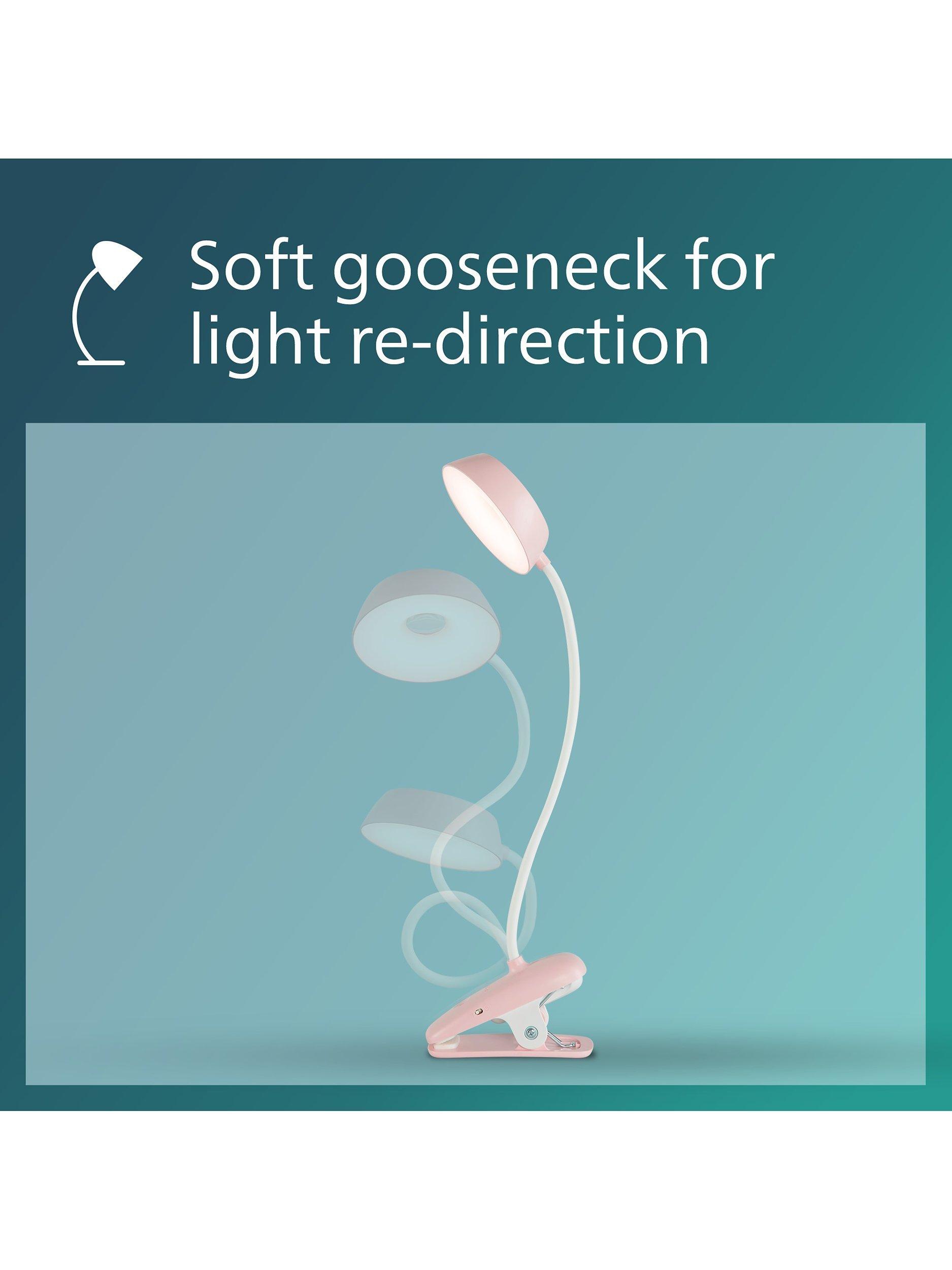 A clip reading light with integrated li-battery for convenience.