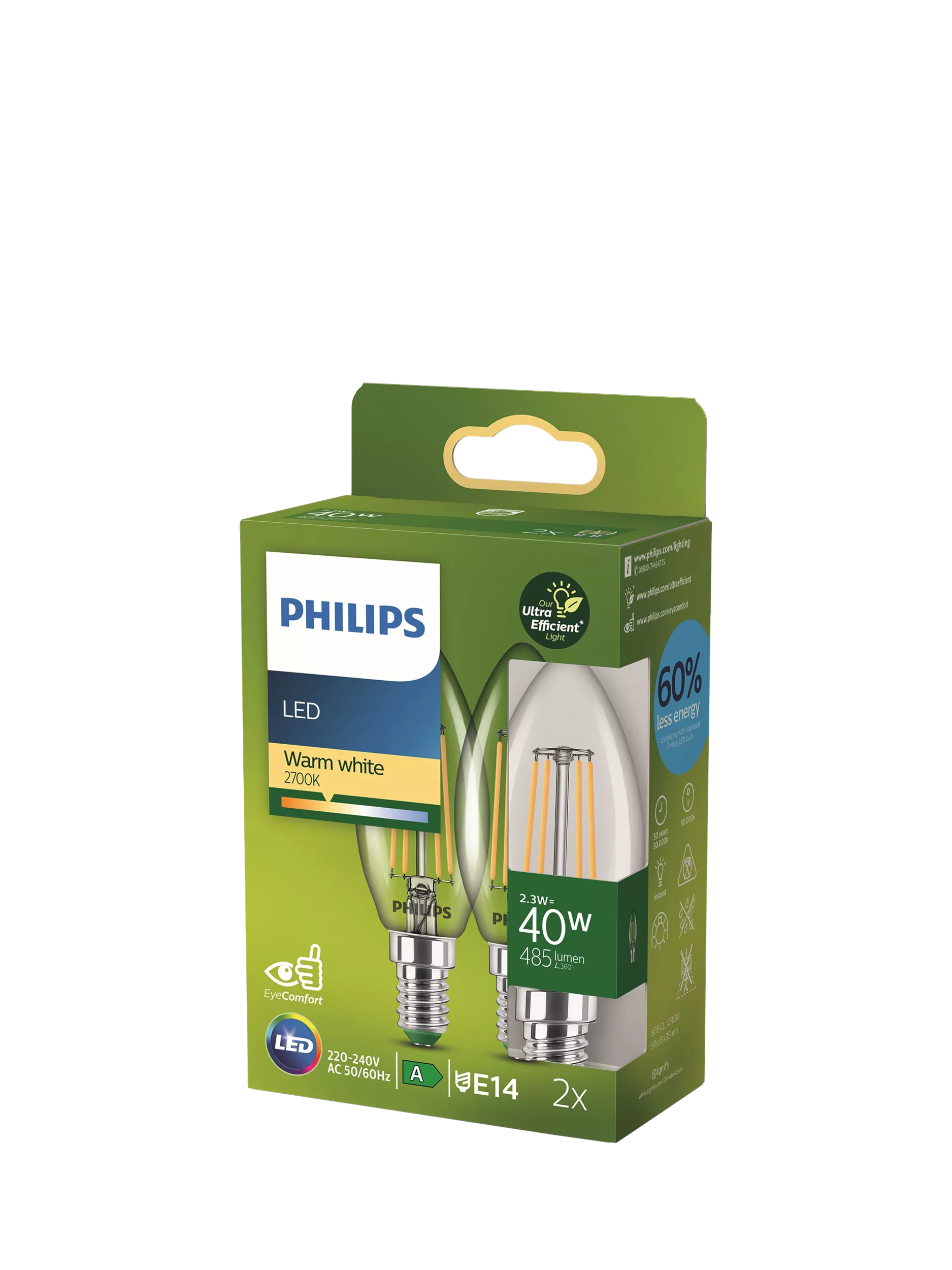 Part of Philip's Ultra Efficient range of LED bulbs, this bulb is a pure and elegant design and a brilliant replacement for your old incandescent bulbs. It uses 60% less energy when compared with a standard Philips LED bulb. Provides a beautiful, warm white light. Pack of 2.