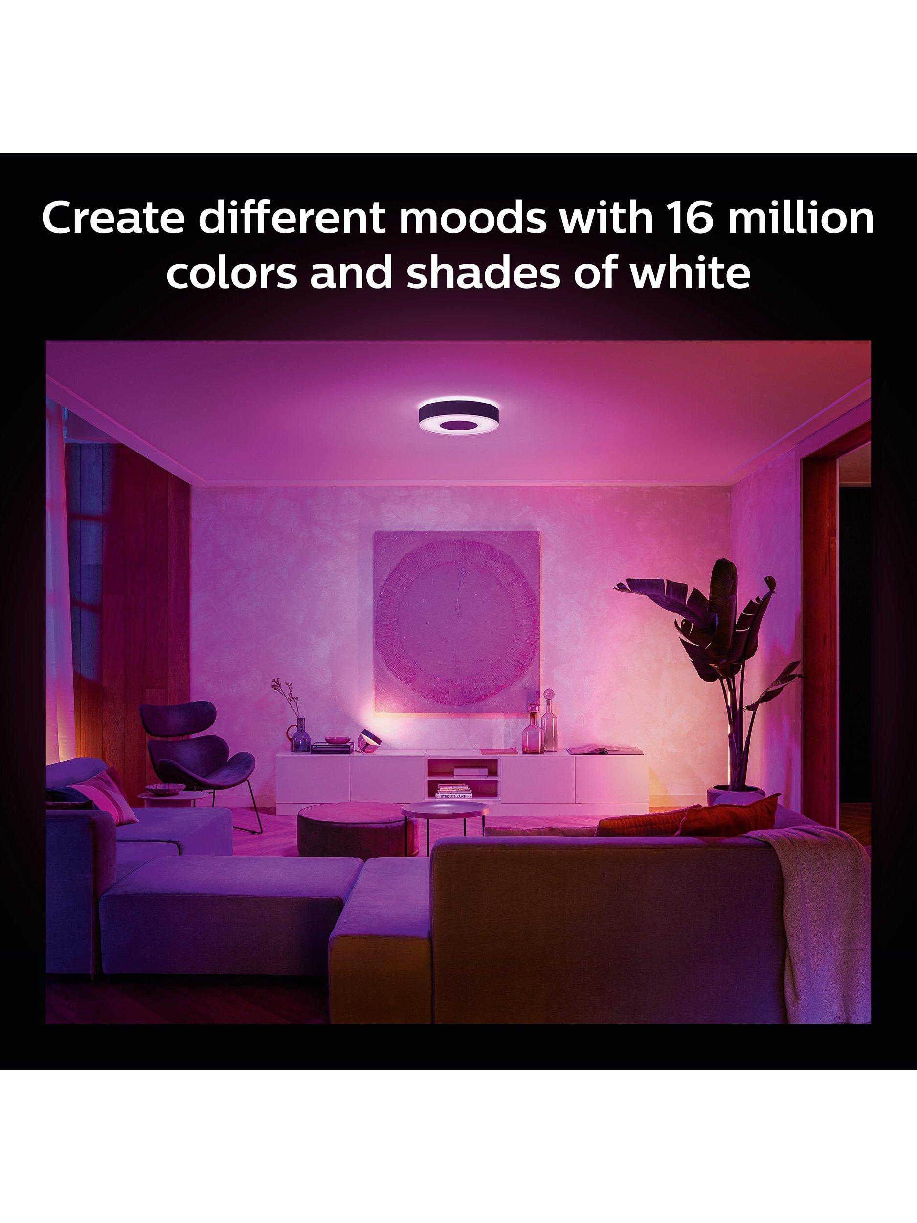 Choose from over 50,000 shades of warm-to-cool white light to create the perfect ambience in your space for each activity and time of day, or use millions of light colours to transform your space with the touch of a button.
