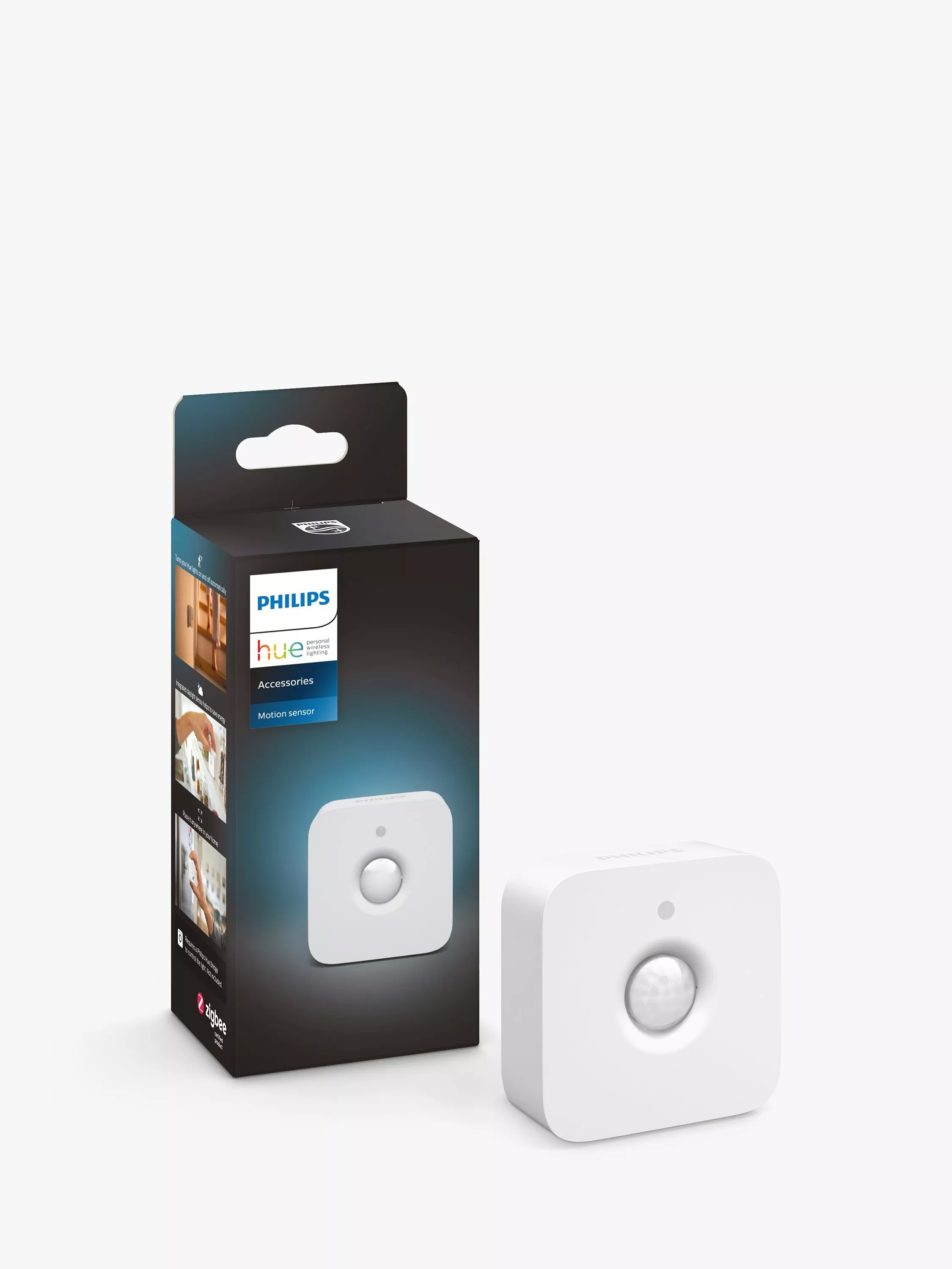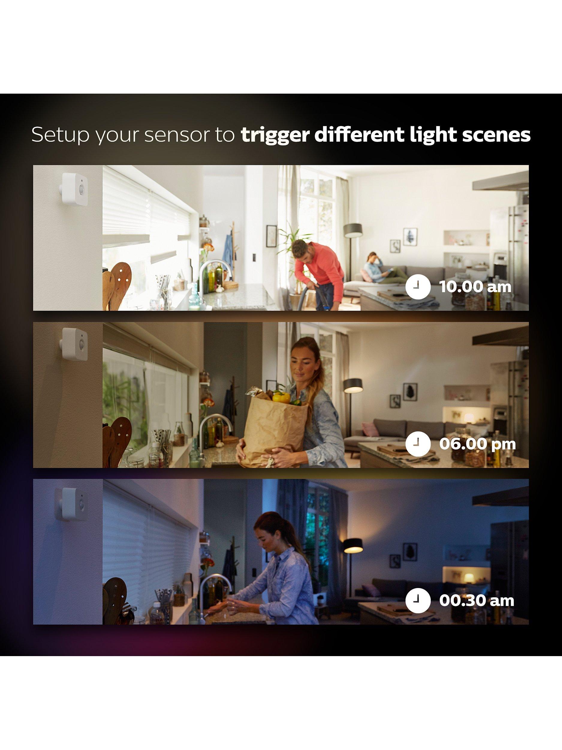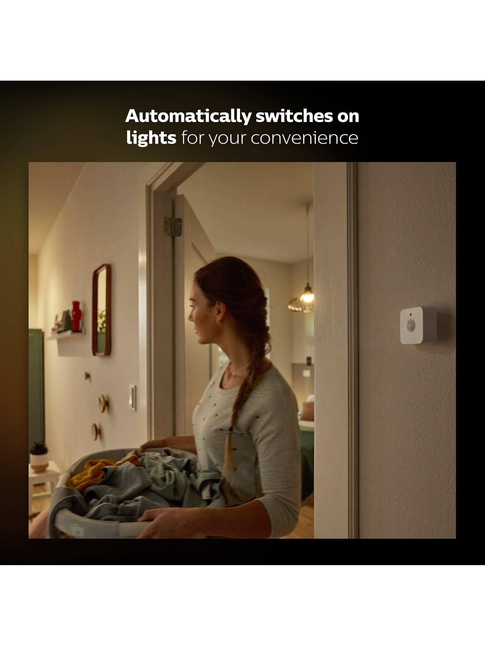 This motion sensor is for use with the Philips Hue range of wireless lighting