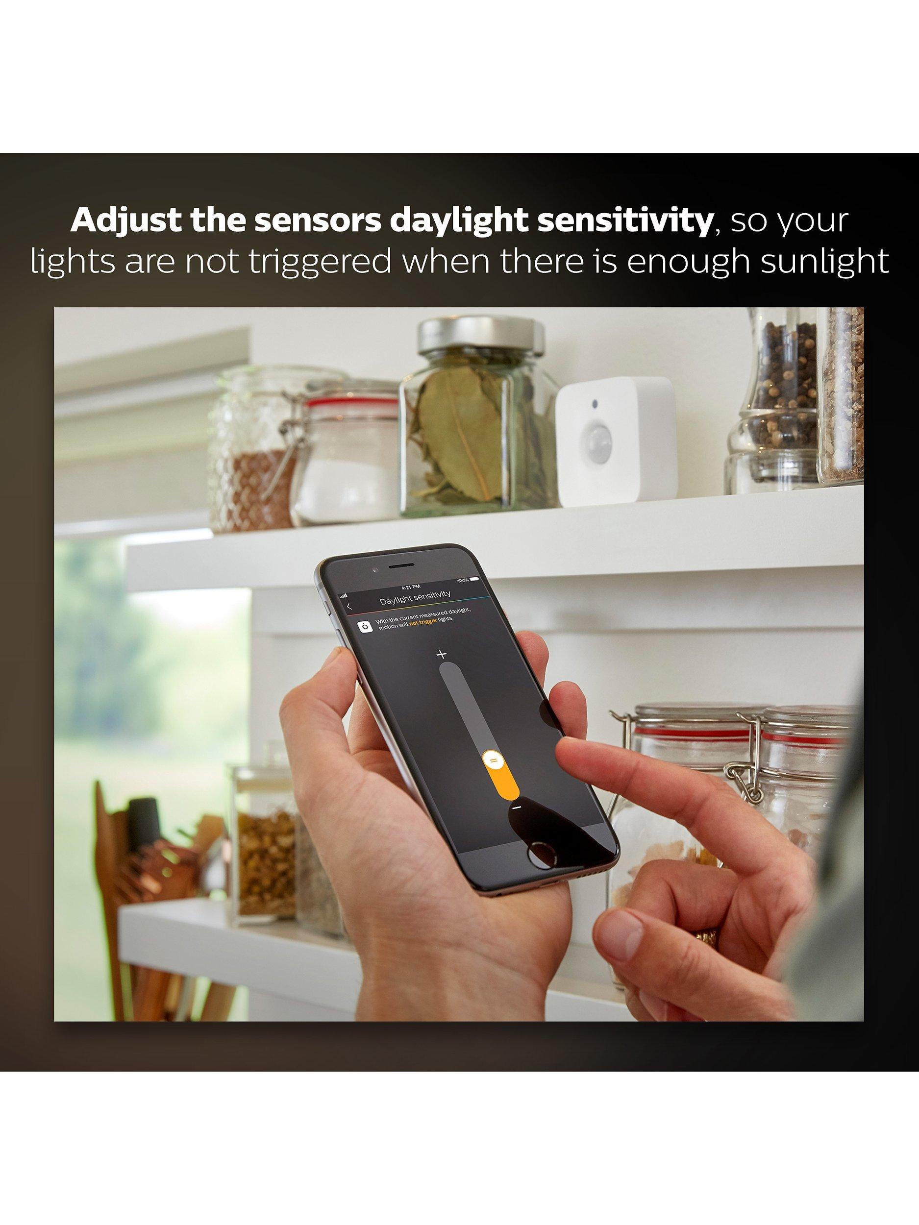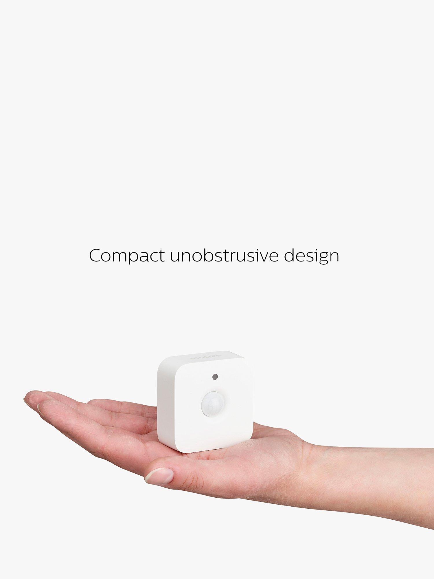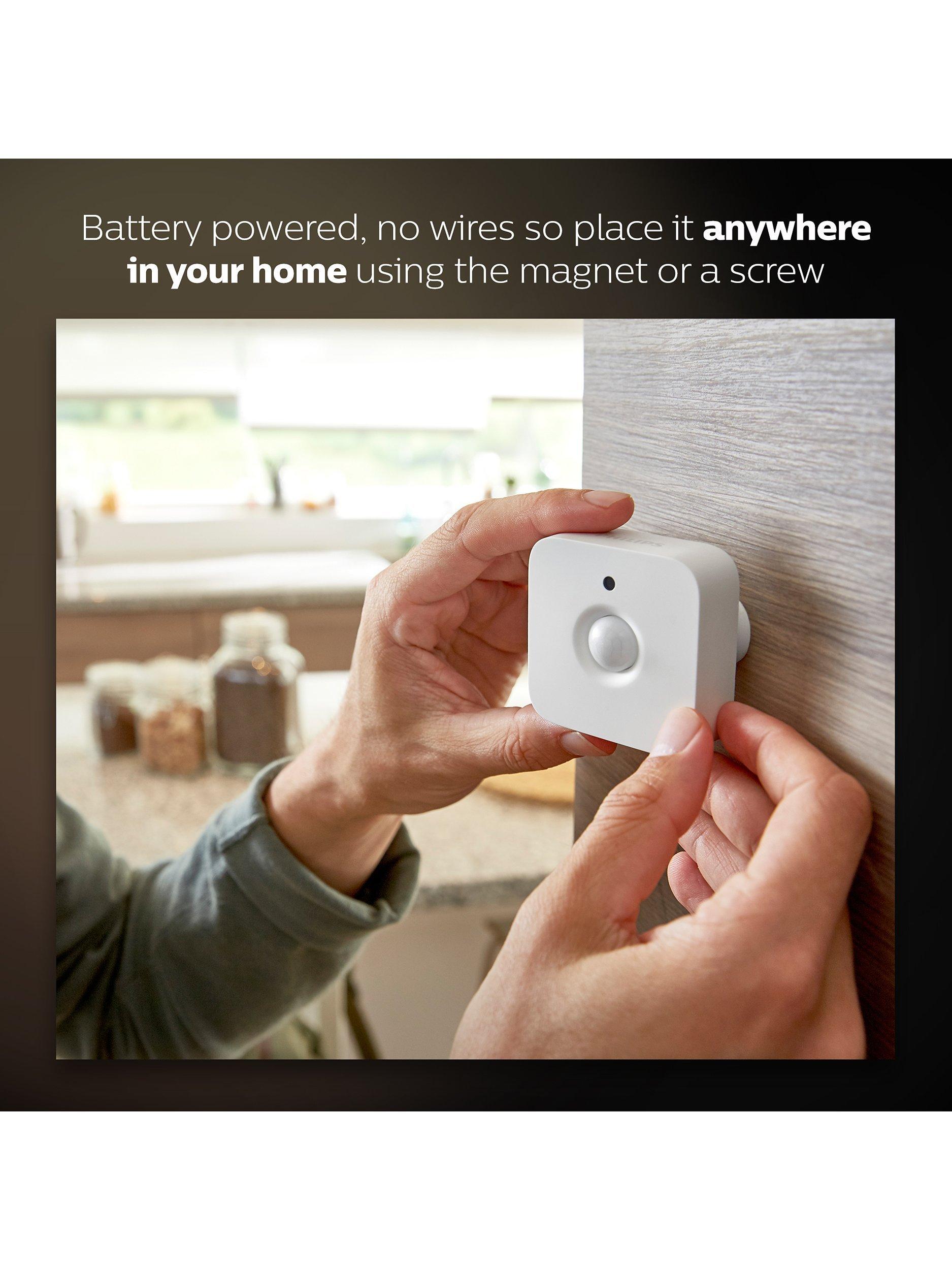 Using the app you can select which setting is most appropriate for the time of day (e.g. a gentle glow at night), and easily adjust the light sensitivity setting. Fully wireless, you can place the motion sensor anywhere in the home. Simply place it where desired, mount it using the screw included, or attach it magnetically to metal surfaces. Up to 50 lights and various accessories may be connected to the Philips Hue bridge.