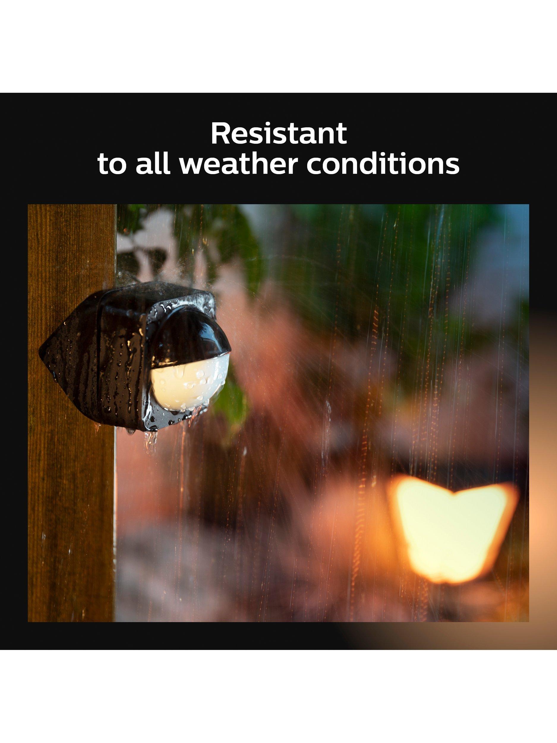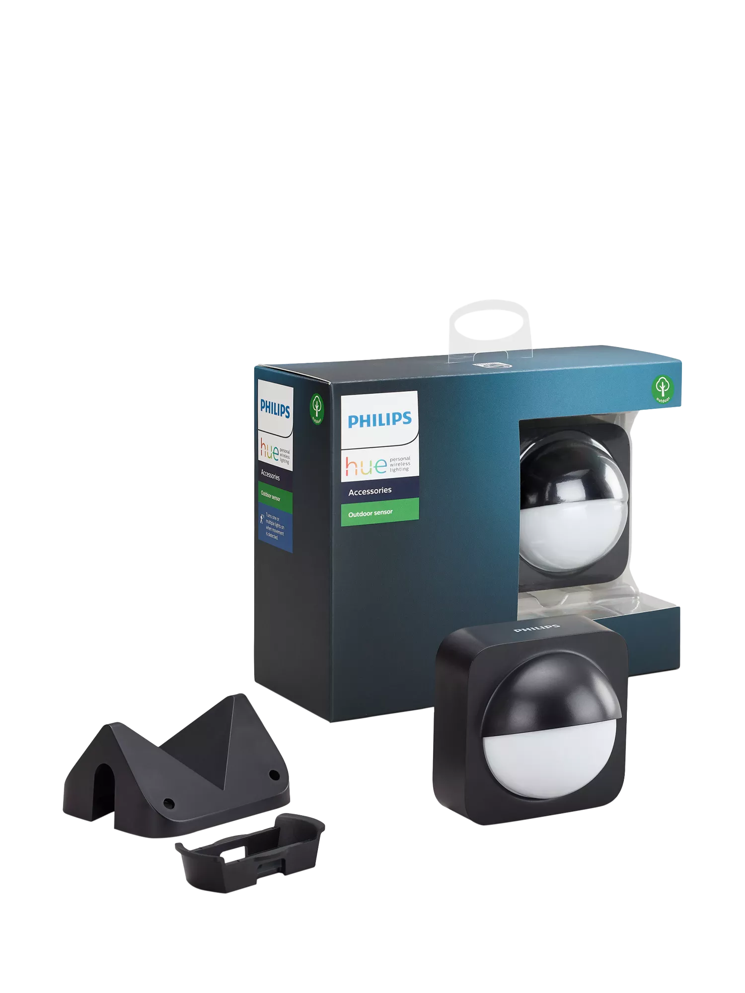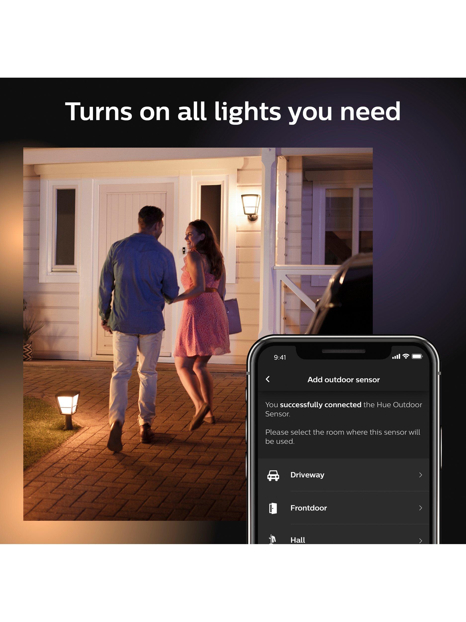 Control your outdoor and indoor lights automatically by adding this Philips Hue Outdoor Sensor to your system. Battery powered and completely wireless, it will trigger your Philips Hue lights to turn on automatically when someone passes by, thanks to a 12m PIR detection range. Thanks to its large view angle and range, the sensor will spot any movement near your home. By connecting the Hue Bridge with the Philips Hue app, pick which lights you want to turn on and when. The integrated dusk-to-dawn sensor ensures your lights only switch on when it detects darkness, helping you to conserve energy.