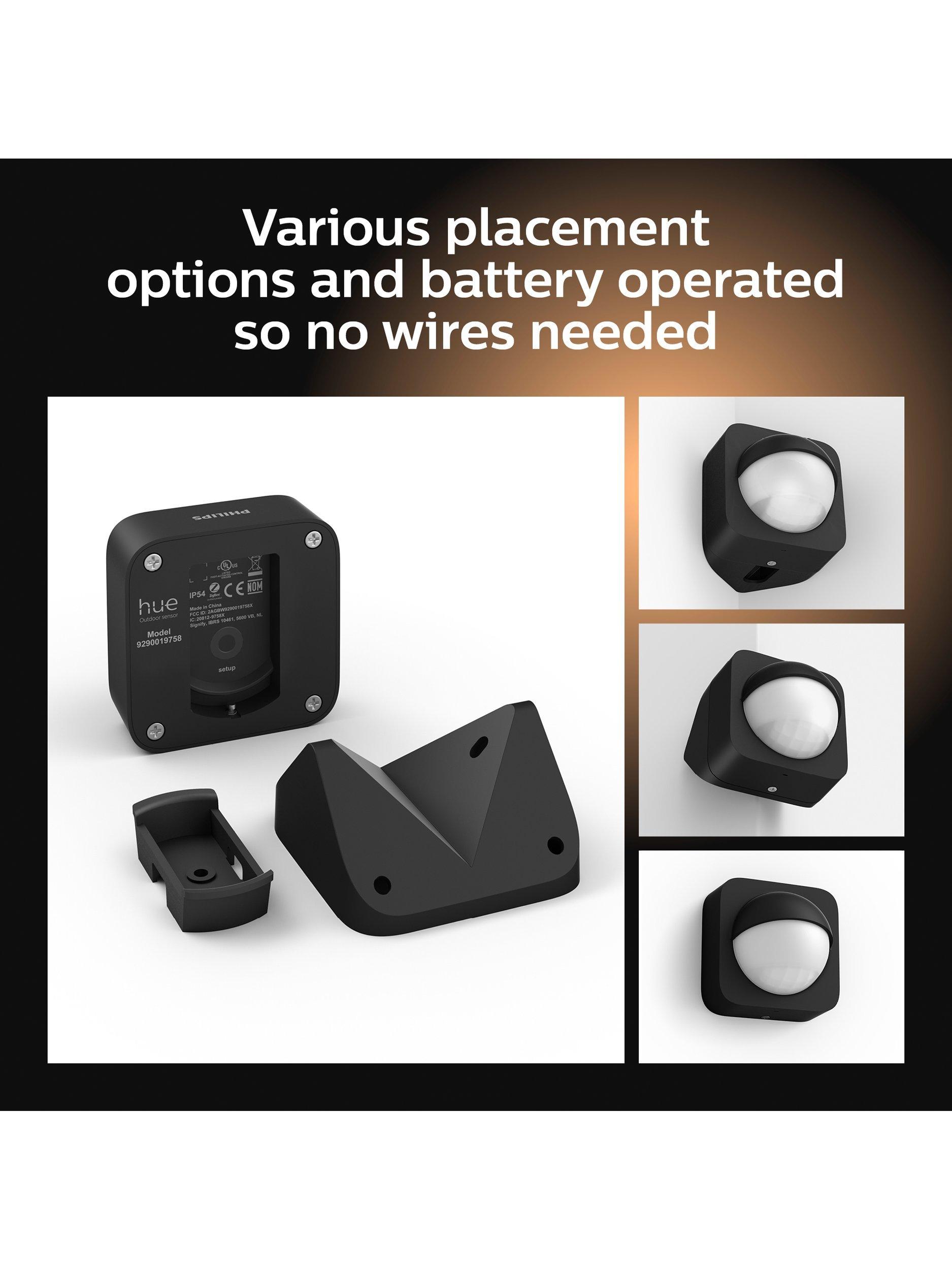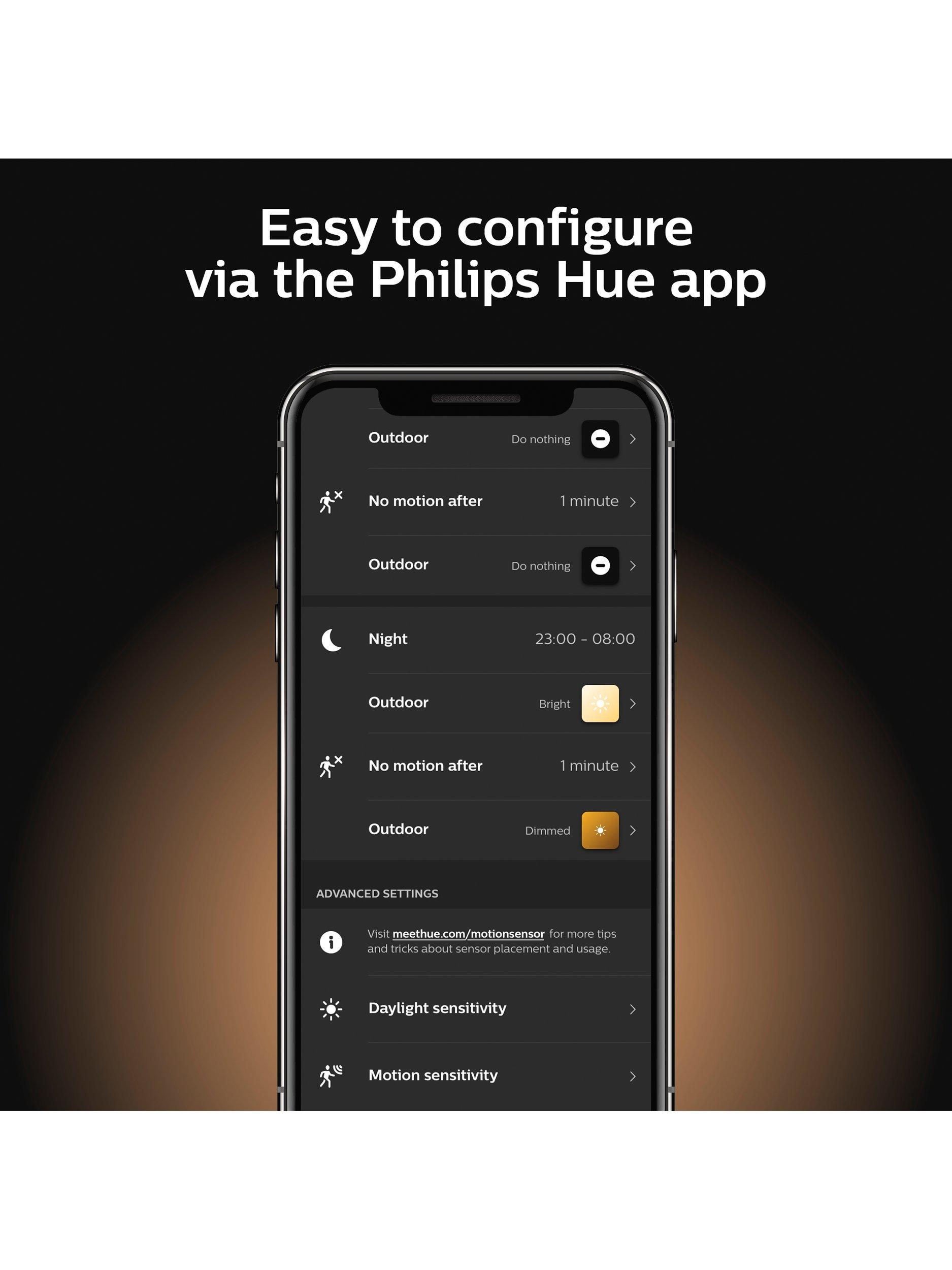 Wireless and easy to mount, you don't need an electrician for installation. Set the sensor up and configure its daylight and motion sensitivity through the Philips Hue app.