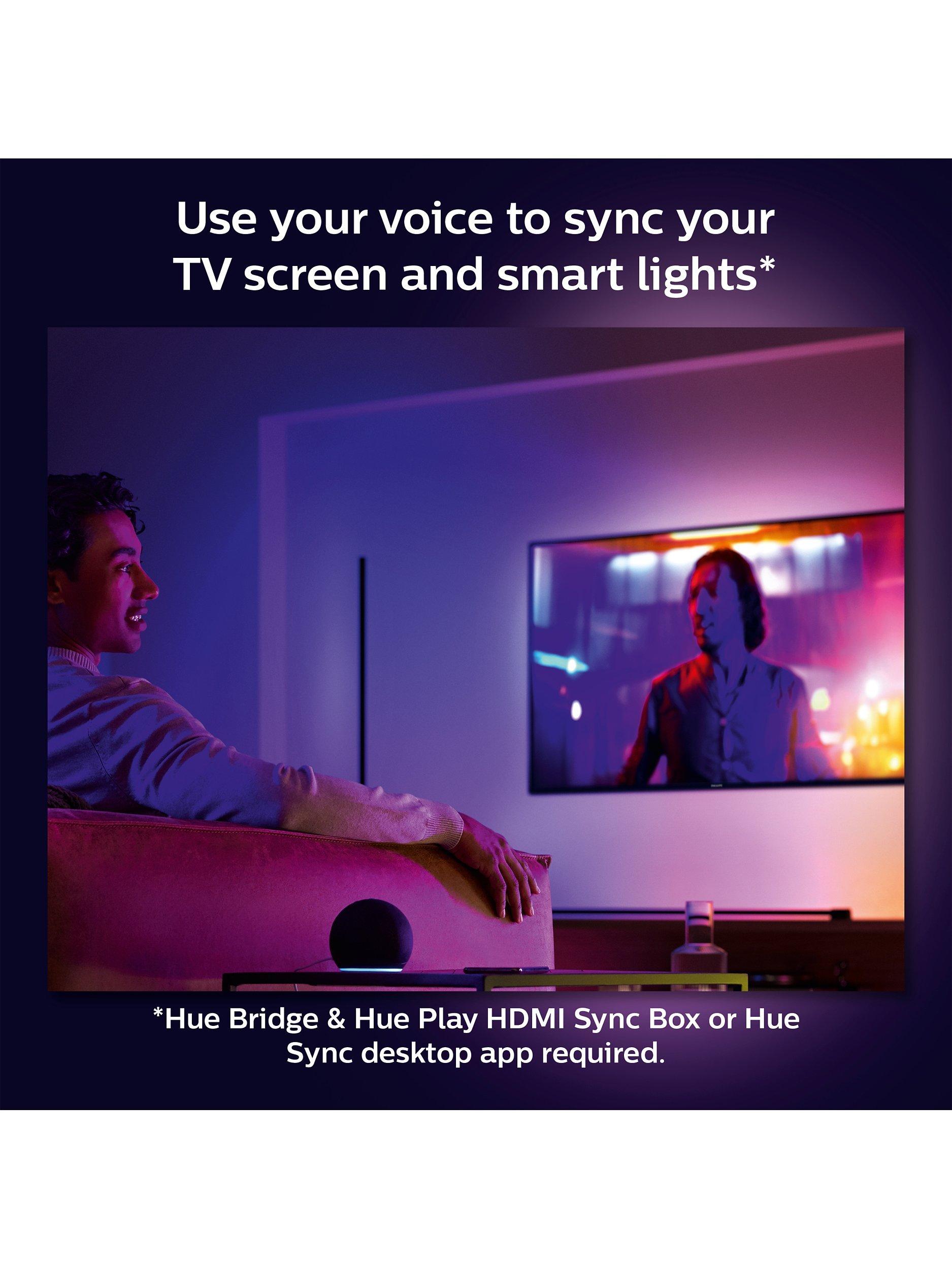 on your smart device. The Bridge allows you to add up to 50 lights and accessories throughout the home, create timers and routines, and control your lights from anywhere with the Hue app. The Philips Hue Play HDMI sync box and Hue Bridge are sold separately.