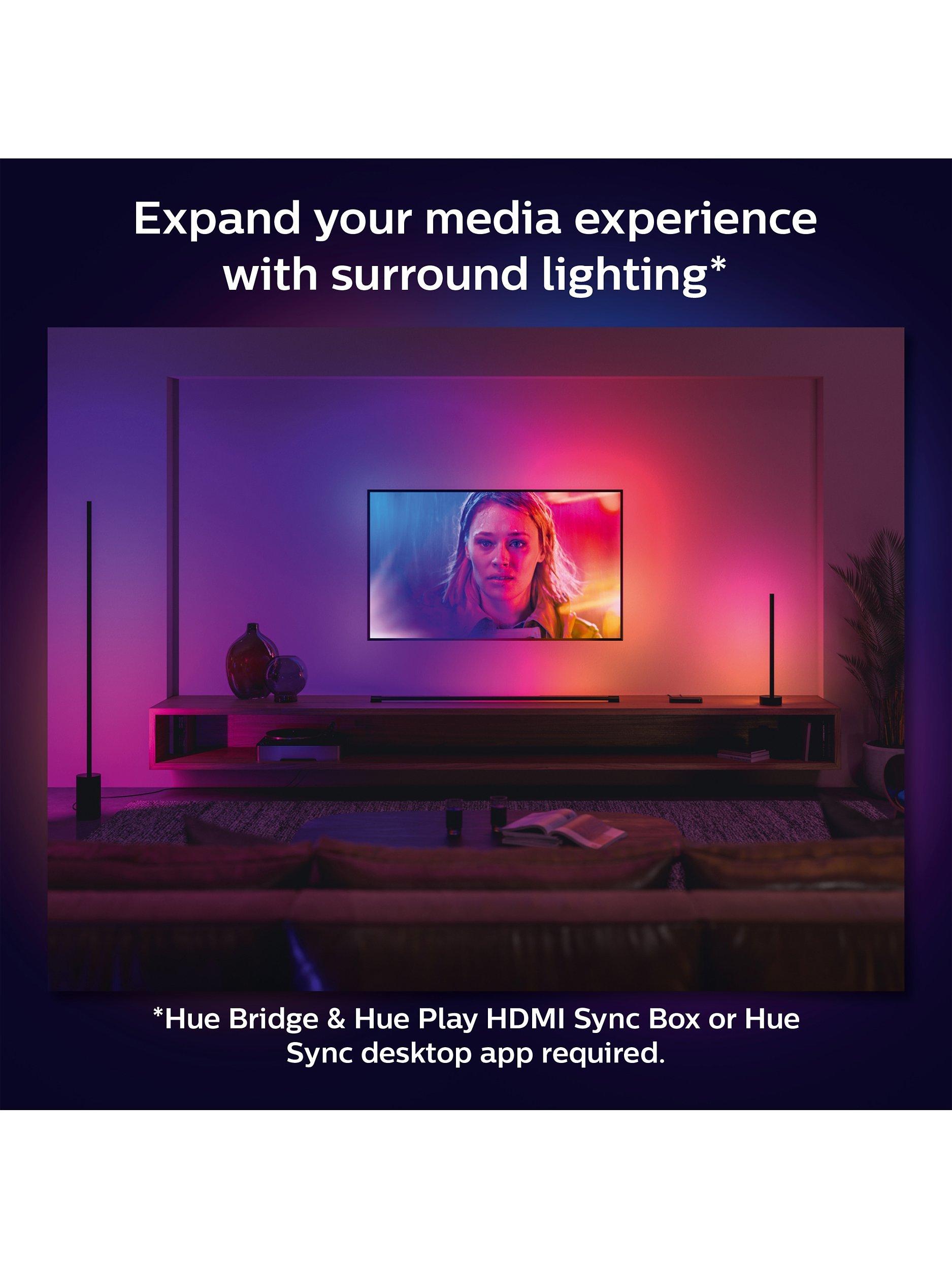 Enhance the home viewing and gaming experience with next-gen surround lighting, with the Philips Hue Play Gradient Light Tube. It flawlessly blends multiple colours of light that react to the contents of the TV screen, for immersive, full-room entertainment. It can be placed freely around your entertainment system to upgrade the experience, and add a whole new dimension of lighting.