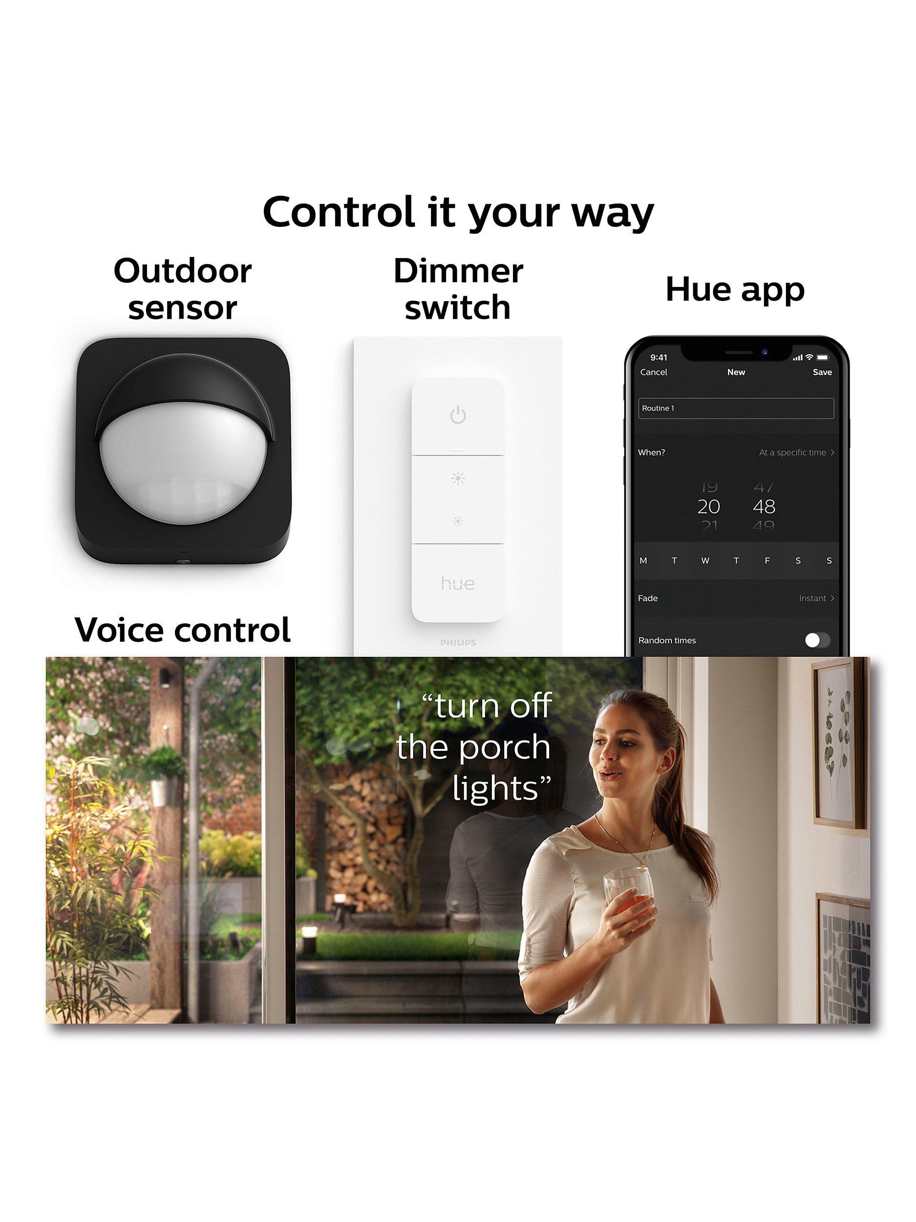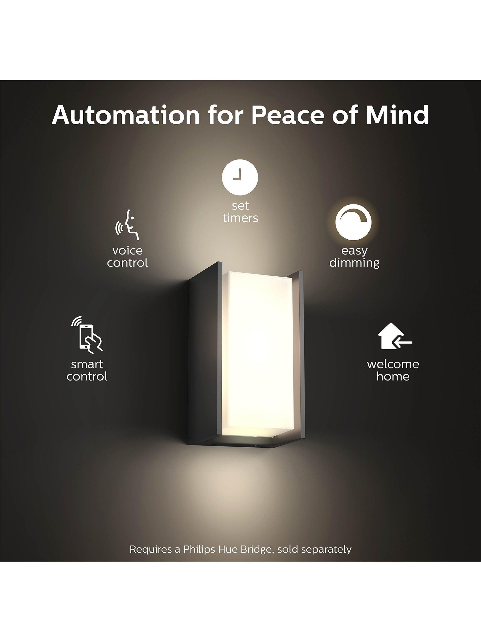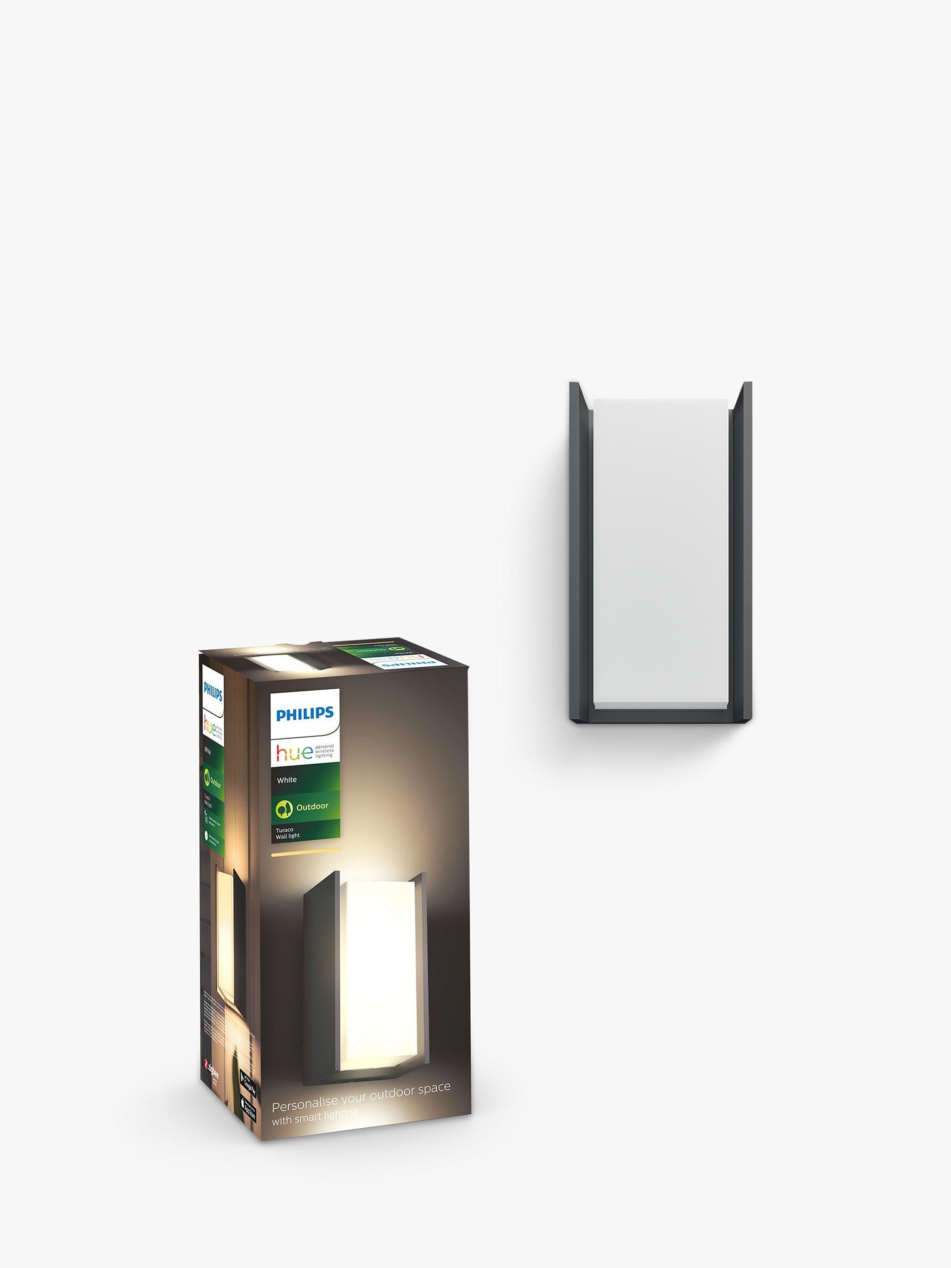Illuminate your outdoor spaces with the Turaco LED wall light from Philips. Complete with Hue technology and supplied with a warm white bulb, it's equipped with a range of smart features that bring ease to outdoor lighting at home, while its simple profile will lend a bright wash of light up and down your wall.