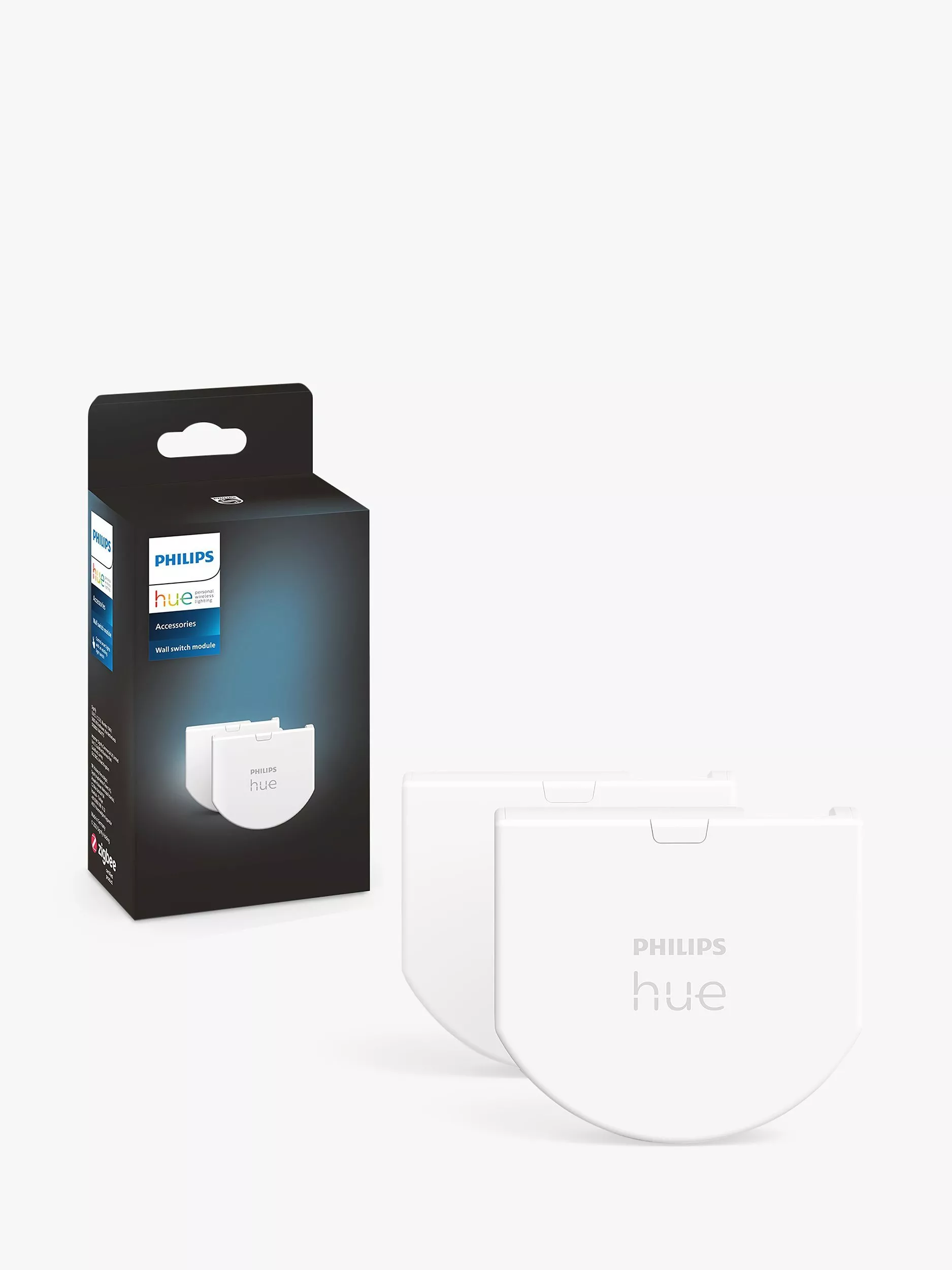 Installed behind light switches, the Philips Hue wall switch module lets you use existing switches with your Philips Hue smart lights. Your lights always stay powered on and reachable and you can even use the switch to set multiple scenes on an individual light or in a room or zone