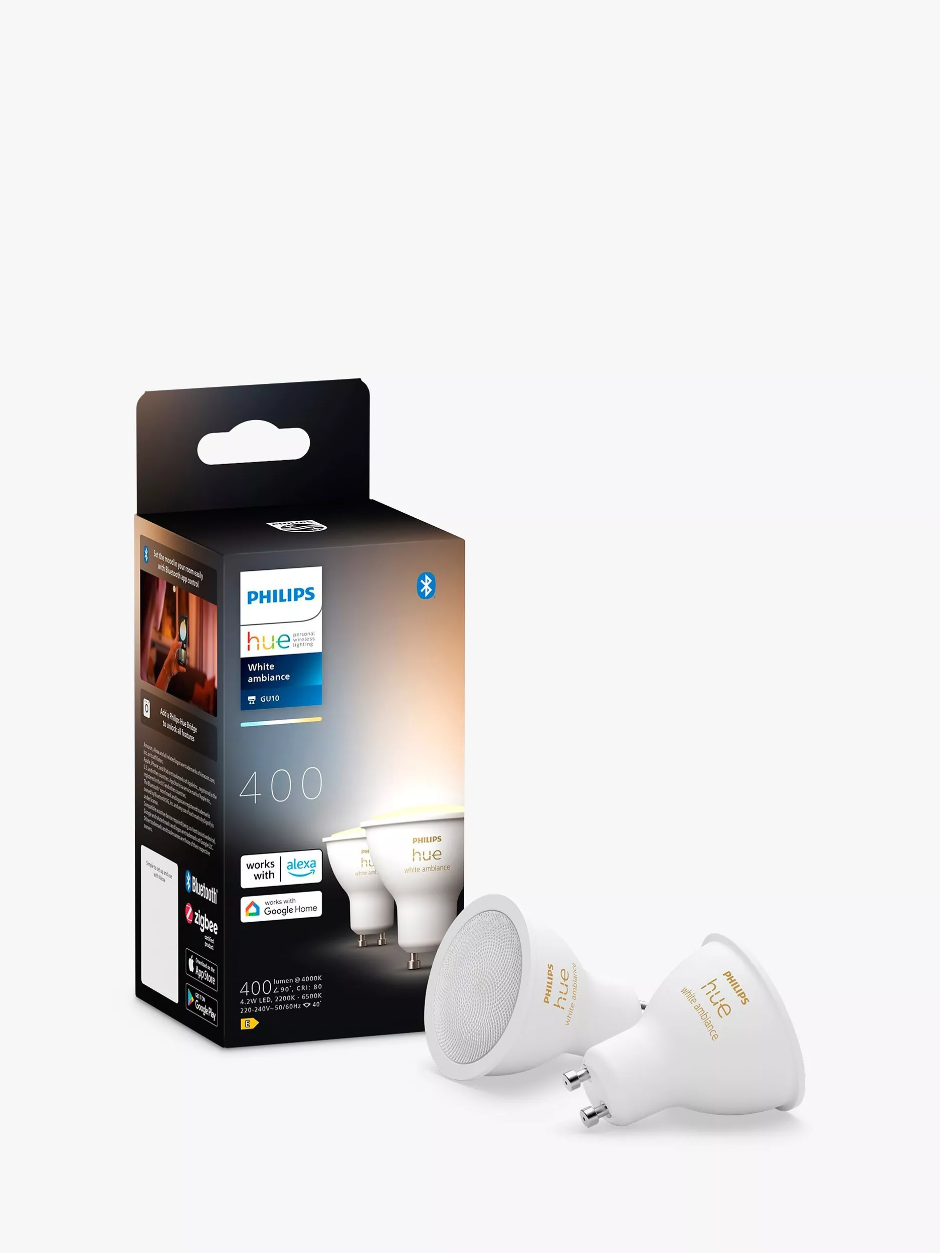 Philips HueWhite Ambiance Wireless Lighting Smart LED Light Bulb with Bluetooth, 4.2W GU10 Bulb, Pack of 2