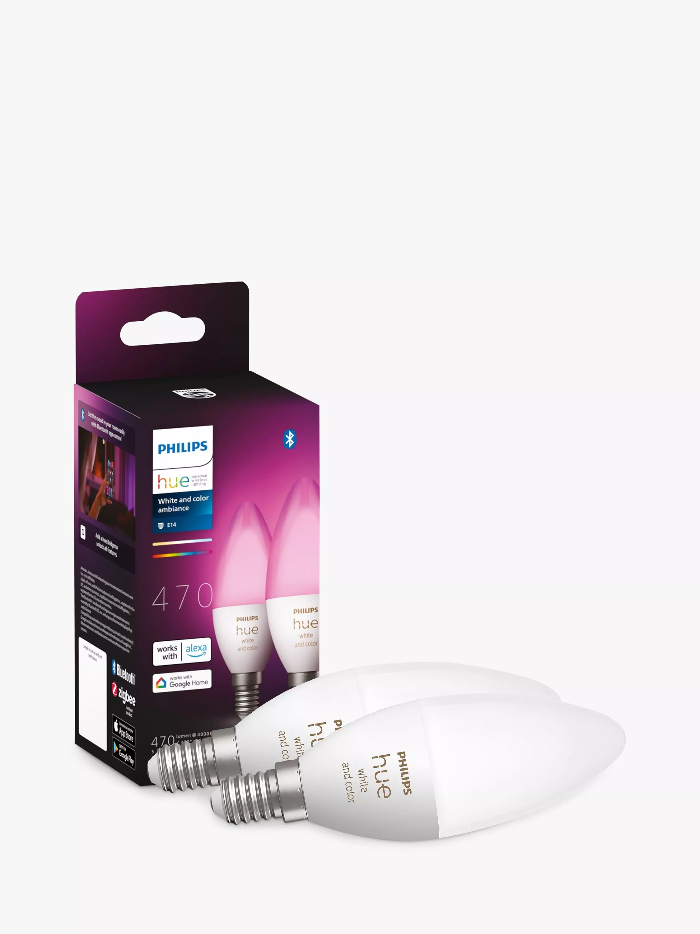 Philips HueWhite and Colour Ambiance Wireless Lighting LED Colour Changing Light Bulb with Bluetooth, 5.3W B39 E14 Small Edison Screw Bulb, Pack of 2