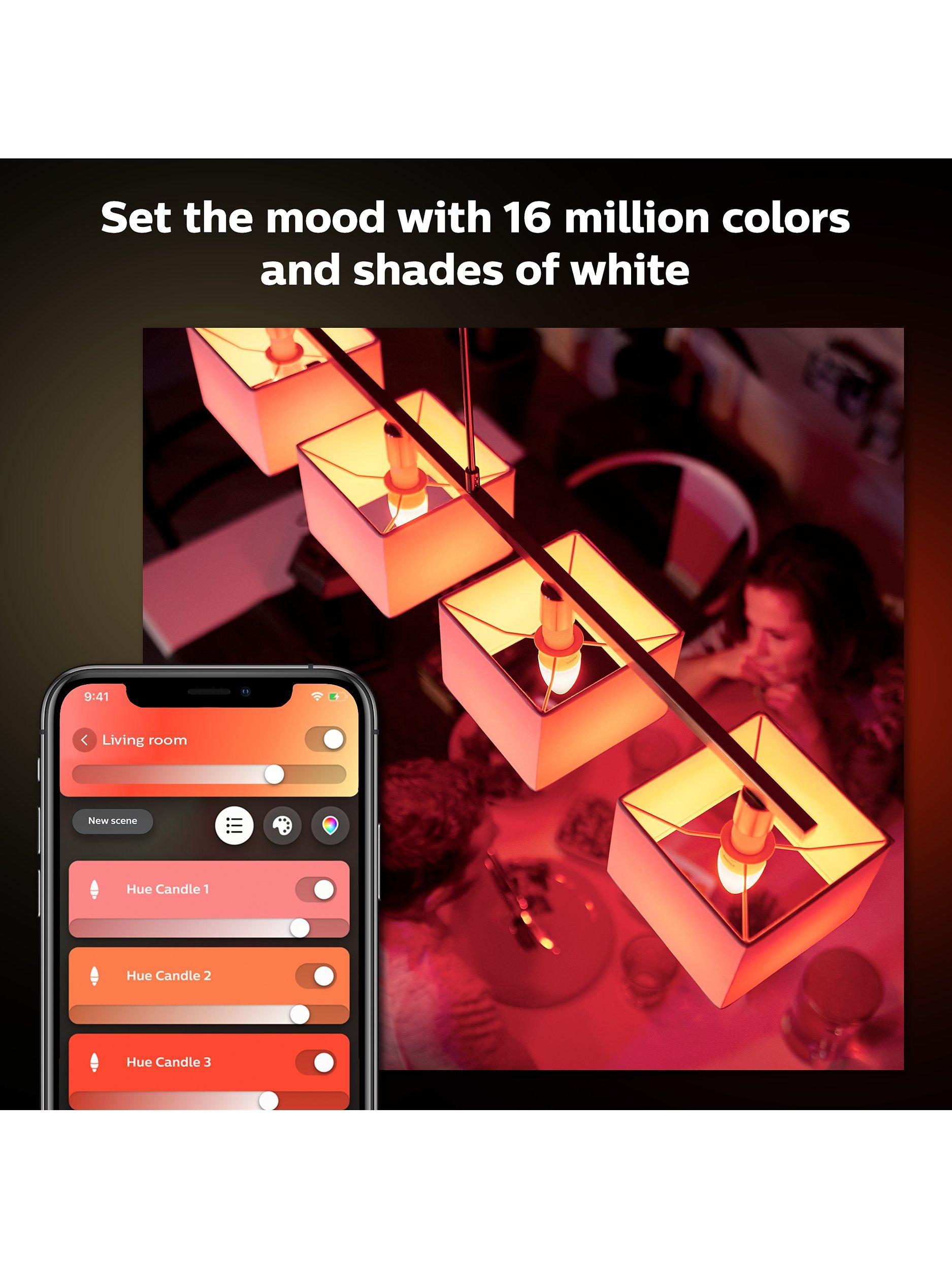 With 16 million colour variations to choose from, you can set Hue to the mood that suits you. Colours can be saved as 'Scenes', so you can revisit your favourites, or you can choose from the available presets. These 'light recipes' have been proven to create the perfect atmosphere for your needs. The 'Reading' recipe is ideal for curling up with a book, while 'Relax' provides a soothing glow. 'Concentrate' will help you stay alert when working, while 'Energise' bathes you in vibrant lights to revitalise you. This bulb is part of the 'richer colours' range for an even more vivid illumination experience.