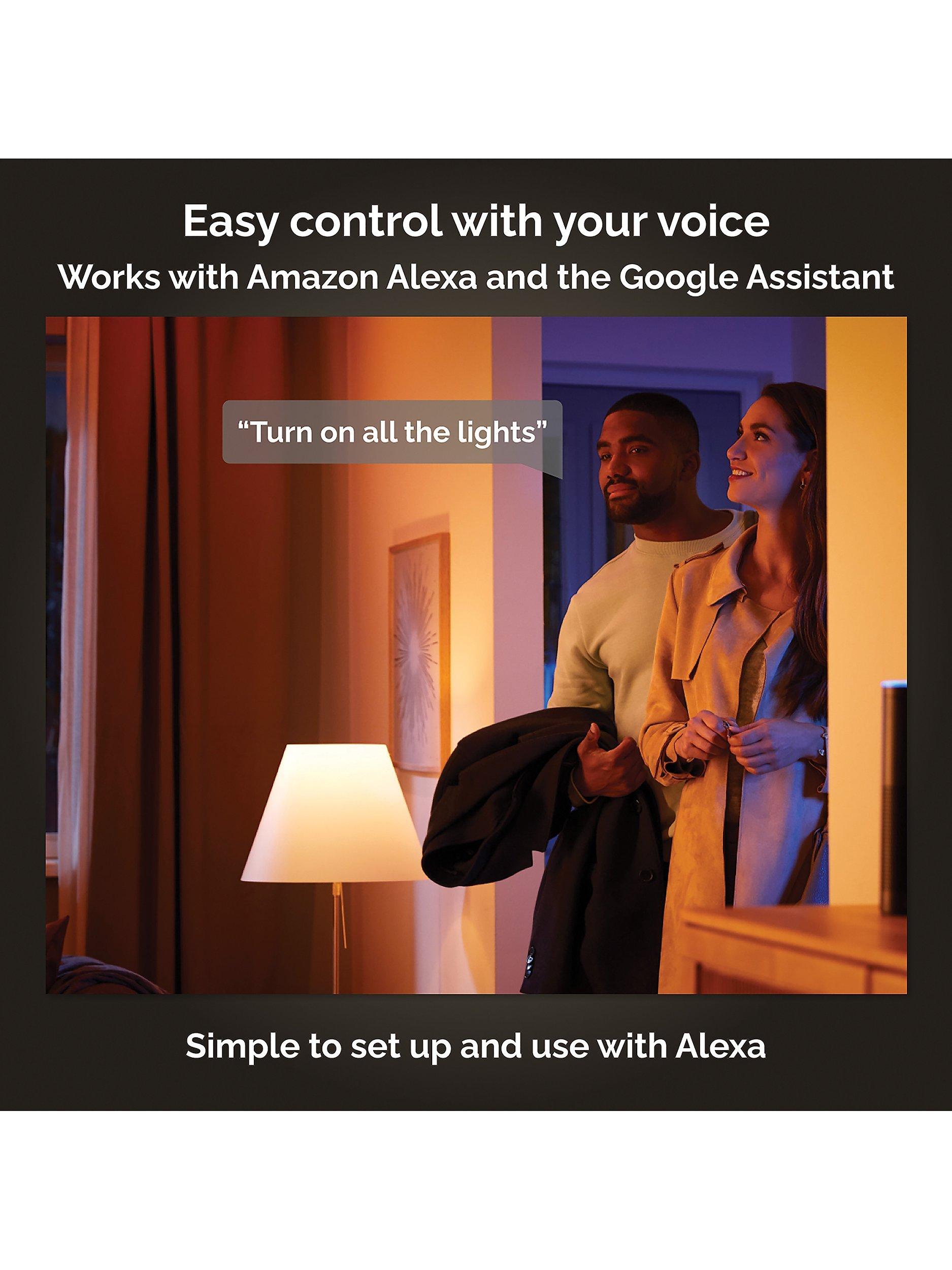 The Hue app gives you instant control over your smart light from anywhere in your home. Pair your smart light with Amazon Alexa or Google Assistant to control the light using simple voice commands.