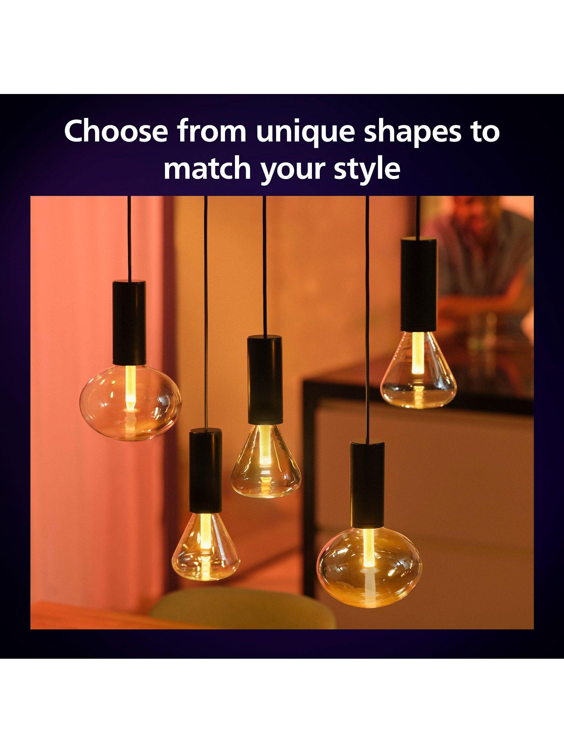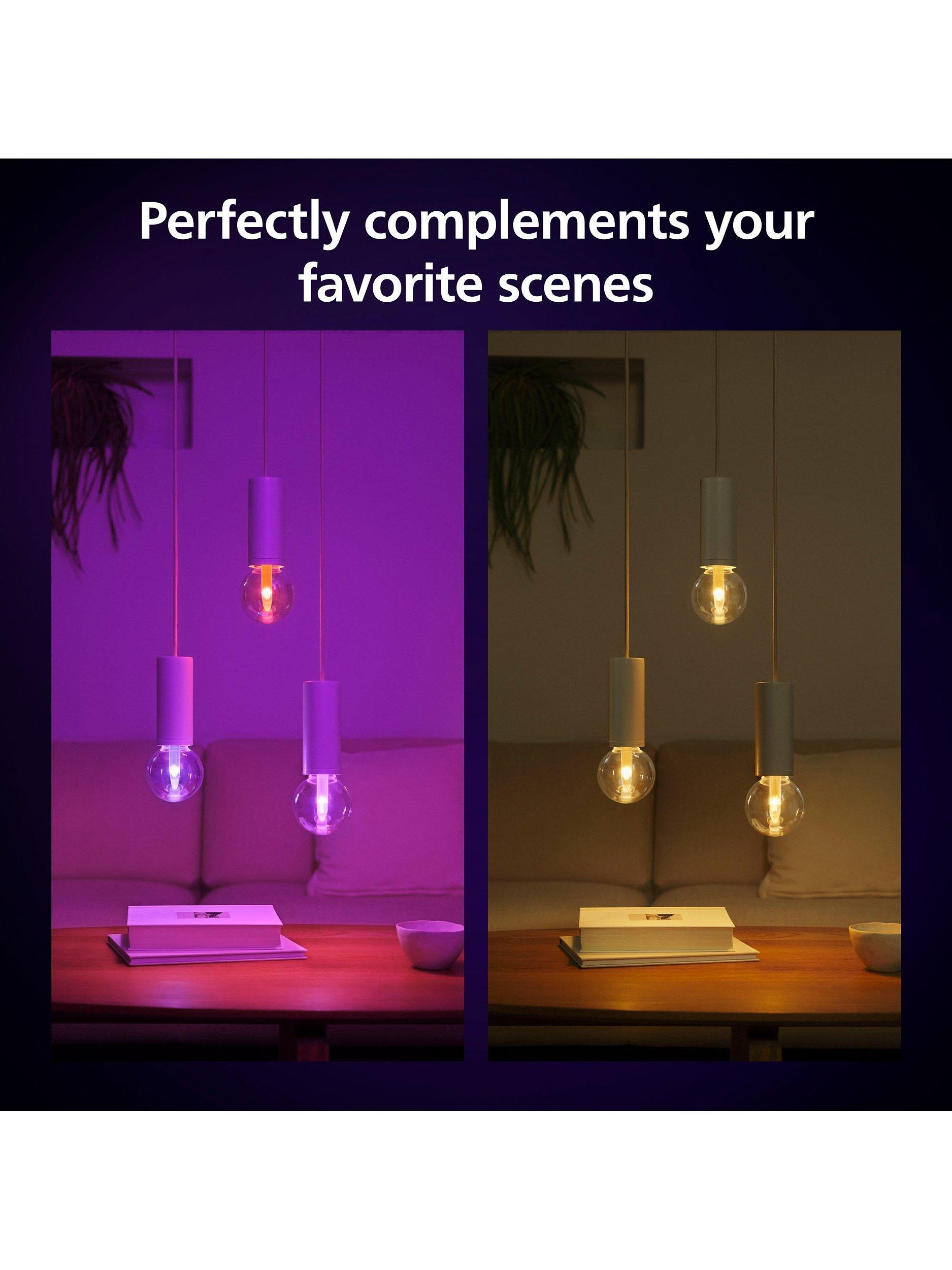 With 16 million colour variations to choose from, you can set Hue to the mood that suits you. Colours can be saved as 'Scenes', so you can revisit your favourites, or you can choose from the available presets. These 'light recipes' have been proven to create the perfect atmosphere for your needs. The 'Reading' recipe is ideal for curling up with a book, while 'Relax' provides a soothing glow. 'Concentrate' will help you stay alert when working, while 'Energise' bathes you in vibrant lights to revitalise you. This bulb is part of the 'richer colours' range for an even more vivid illumination experience.